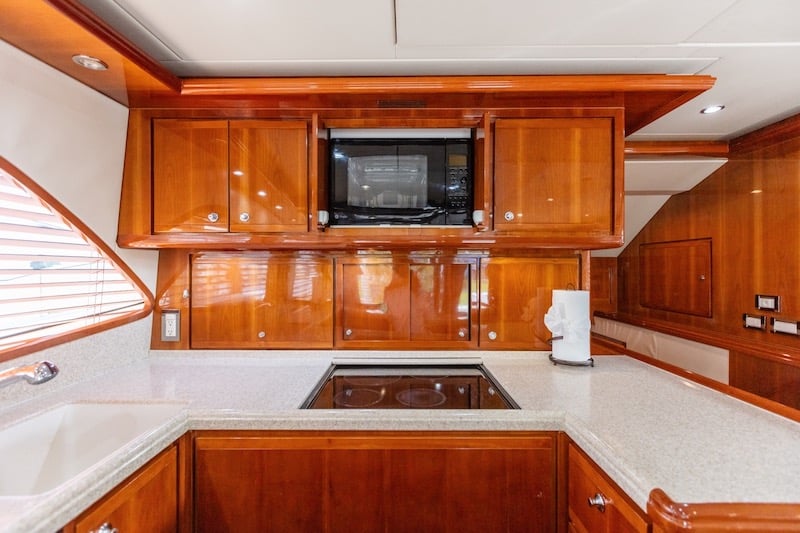 This 63’ Sport Fish Bertram, measuring 66,9’ in length with an 18’1” beam, offers luxurious accommodation with 3 staterooms, sleeping 6 guests and featuring 3 heads. This vessel comes with a spacious cockpit equipped for serious fishing, including ample storage and cutting-edge fish-finding technology, this yacht ensures an exhilarating and successful fishing experience. Indulge in the luxurious mezzanine interior featuring a fully furnished galley, and a spacious salon perfect for relaxation.