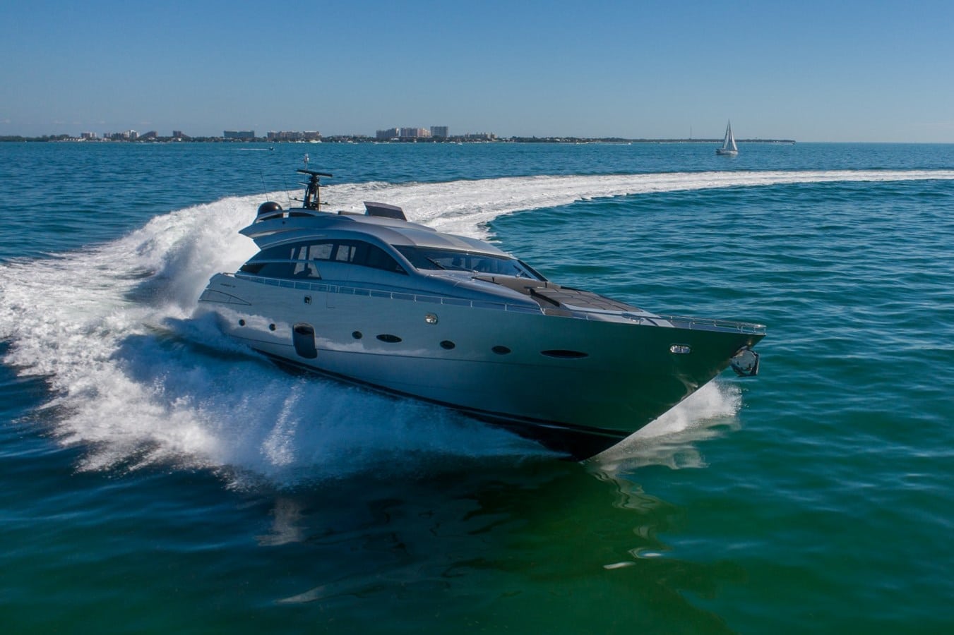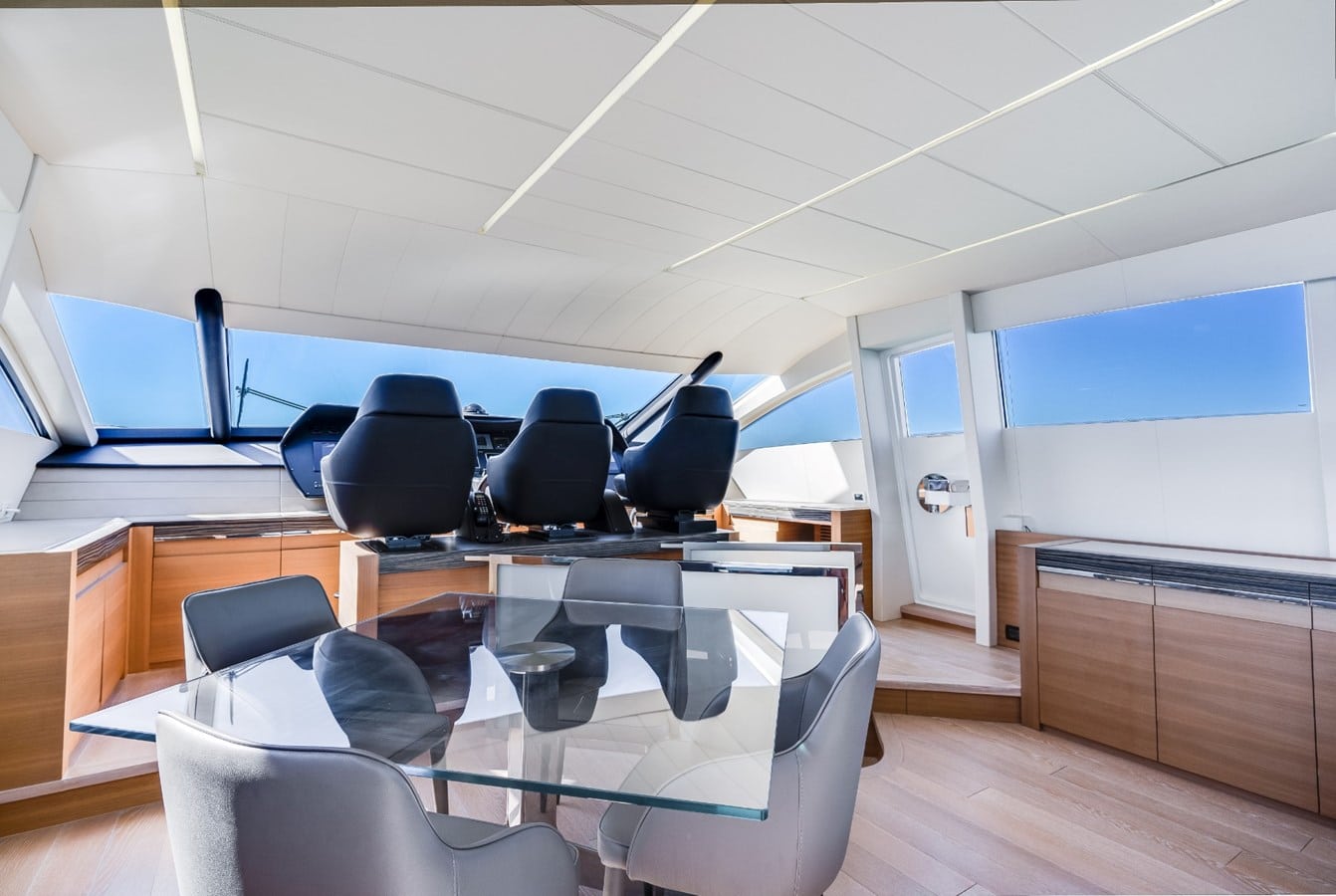 This 2013 92’ Pershing, Arena, has a beautiful nautical design. It is the prodigious mix of speed, comfort and performance. It perfectly combines functional advanced technology, aesthetics, and powerful engines.