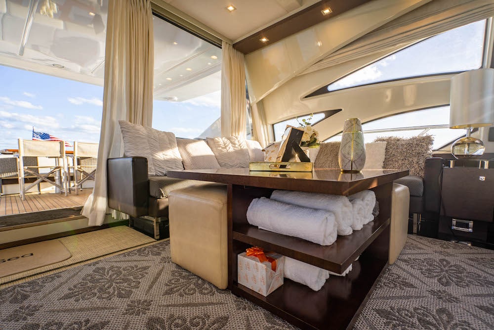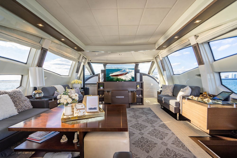 Step aboard this a sleek, modern yacht — perfect setting for an unforgettable Miami experience.