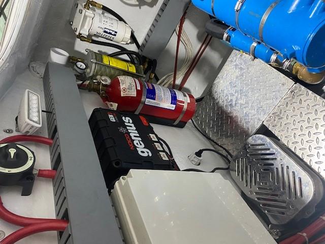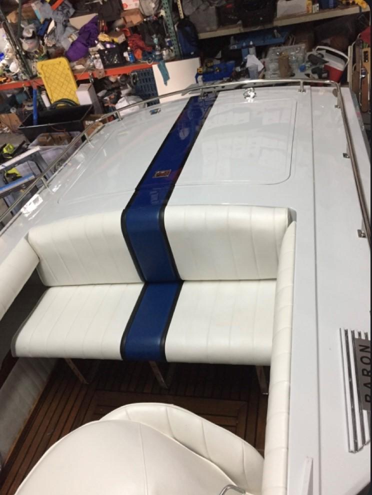 Top of the line hardware, all 316 stainless steel nuts and bolts, custom exhaust by Stainless Marine painted with Awl grip paint and coats of clear. Tea deck stripped and refurnished.