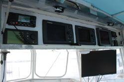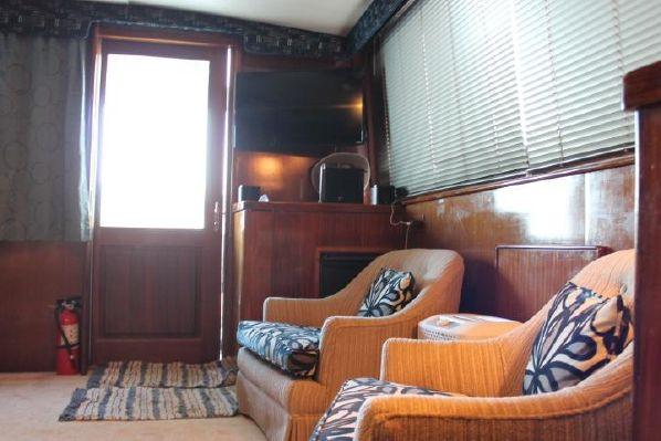 Lisa’s Gem features the standard 45C layout of two staterooms, large single head and shower with the galley down. The salon features a large L-shaped sofa to starboard with twin cocktail chairs and the entertainment center and cocktail ice machine and wet bar to port. Wall to wall carpeting makes the salon warm and inviting!