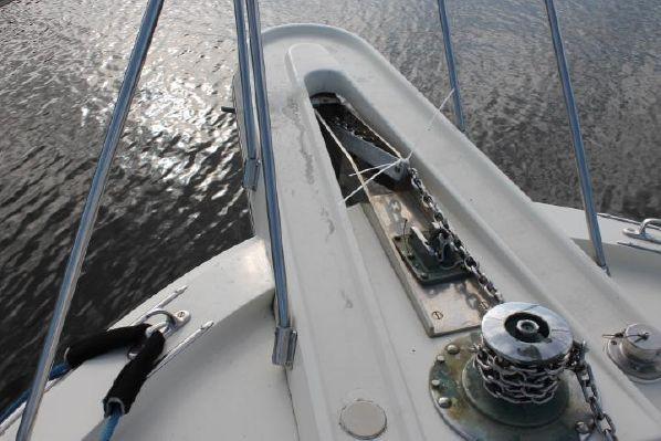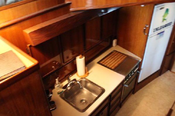 Forward of the salon and down three steps is the galley to port with ample counter and cabinet space, stainless steel sink, cook-top, microwave and apartment sized refrigerator / freezer.