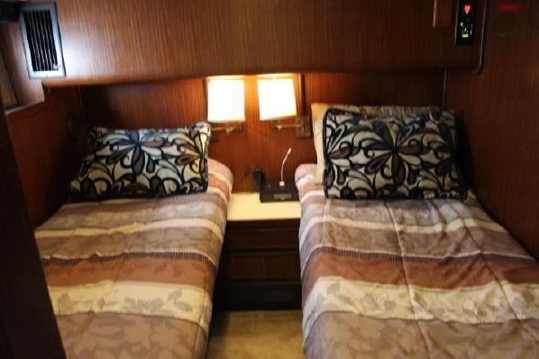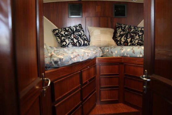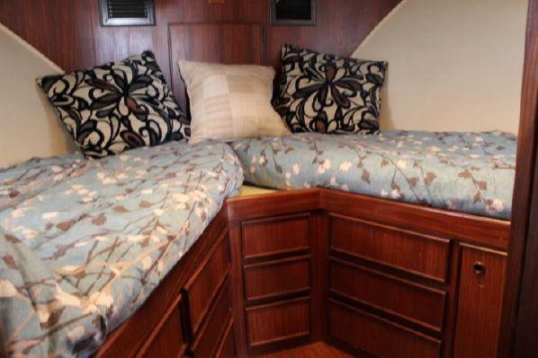 Master stateroom is to starboard with side by side berths and private access to the oversized private head and shower. Guest stateroom is forward with V-berths, starboard berth is a double, port berth is a single.