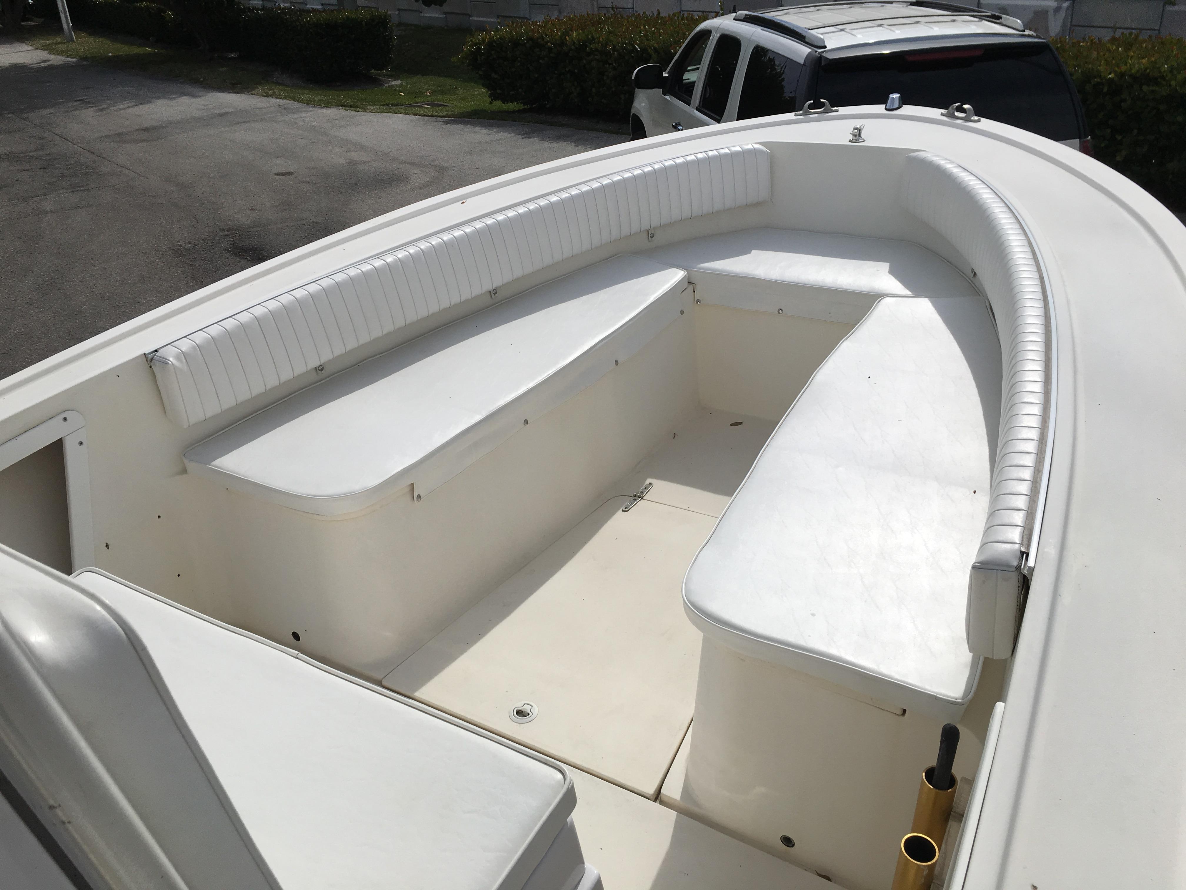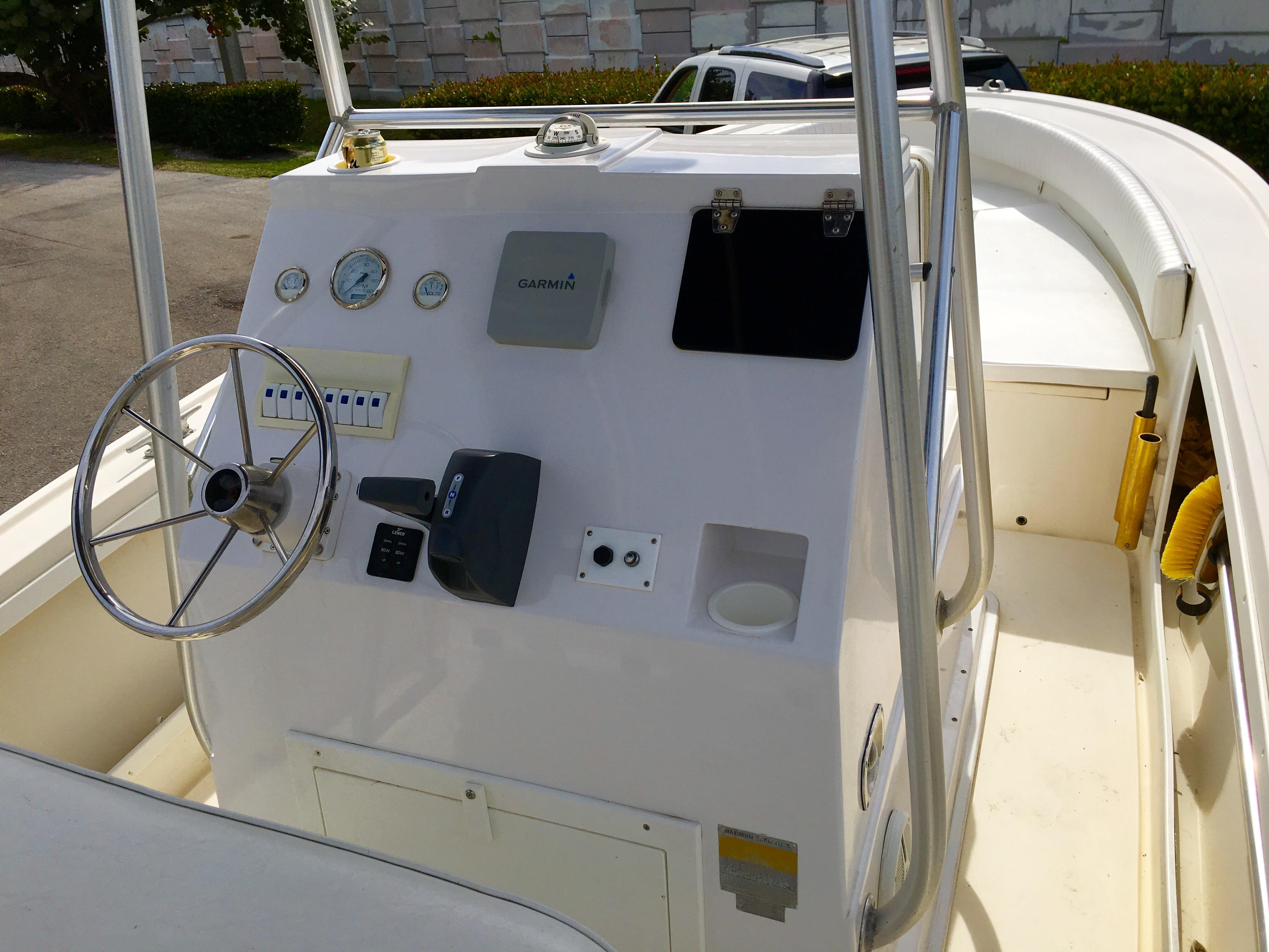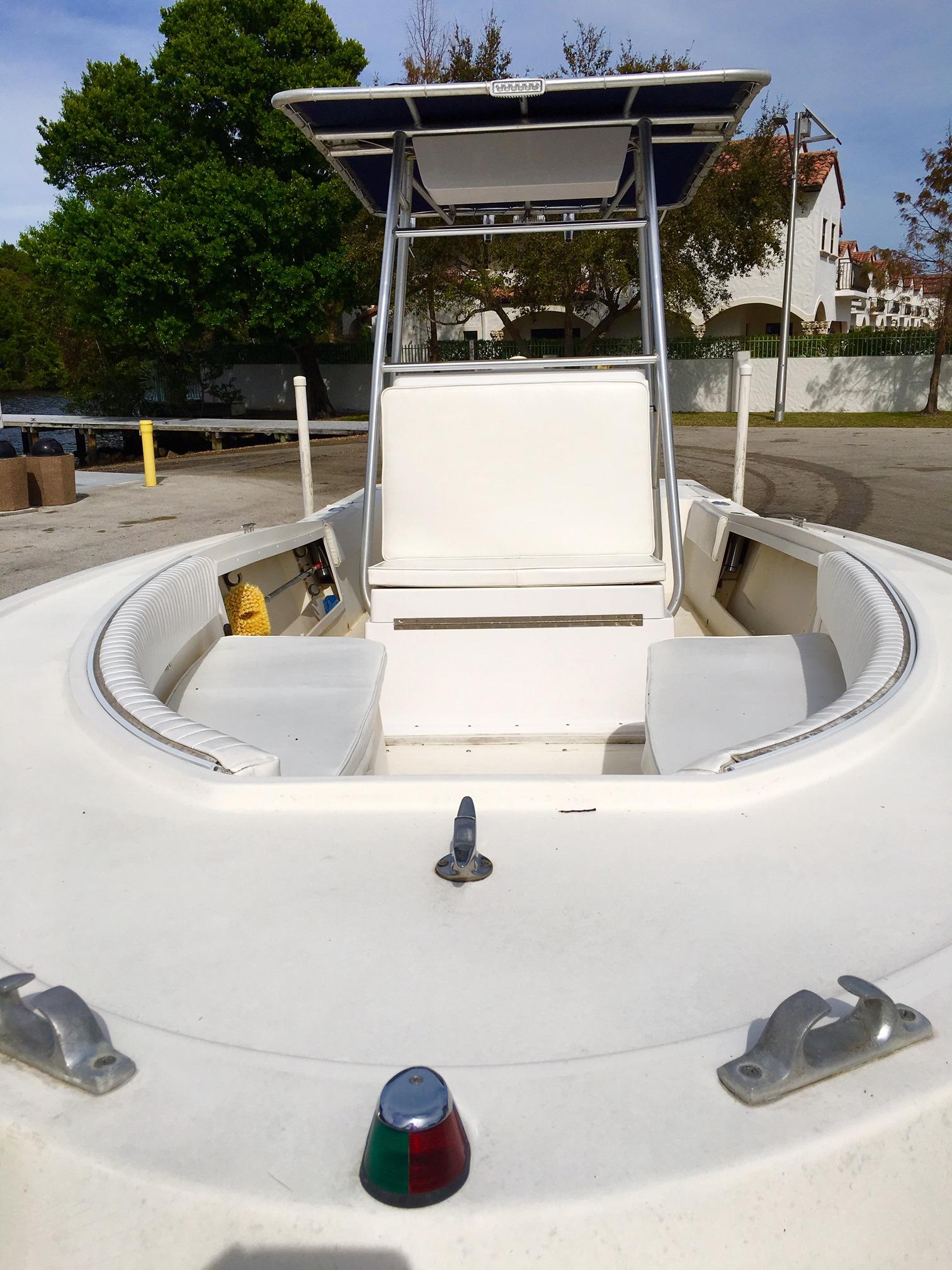 This hull is a 1988 Mako 231, that means it’s a heavy well designed indestructible vessel. It can and has taken on BIG water. This is not a fair weather only fishing boat, it’s an ALL weather fishing boat. Equipped with Lenco trim tabs, a push of the button and your cutting through 4-6ft seas like a day on the lake.