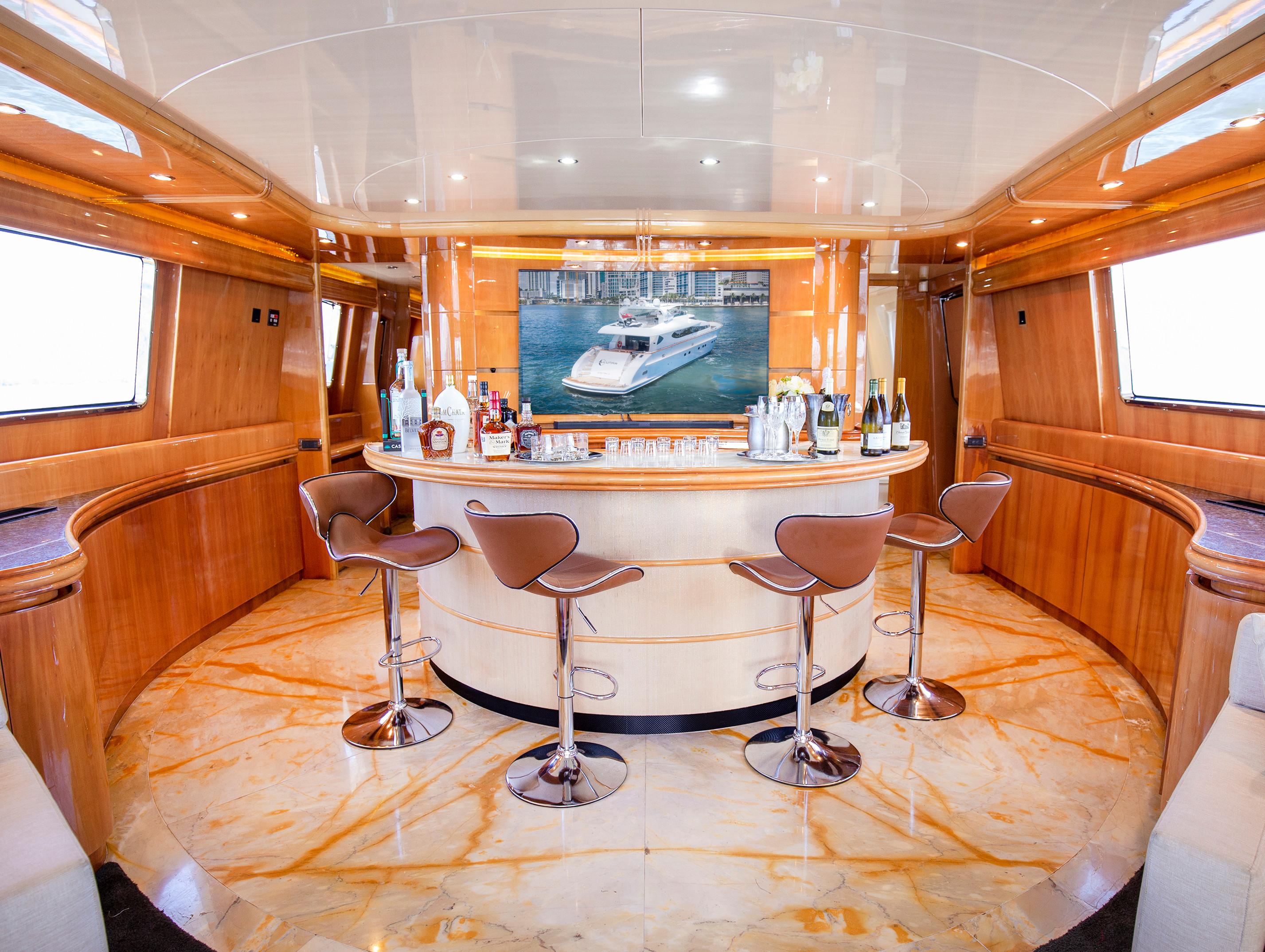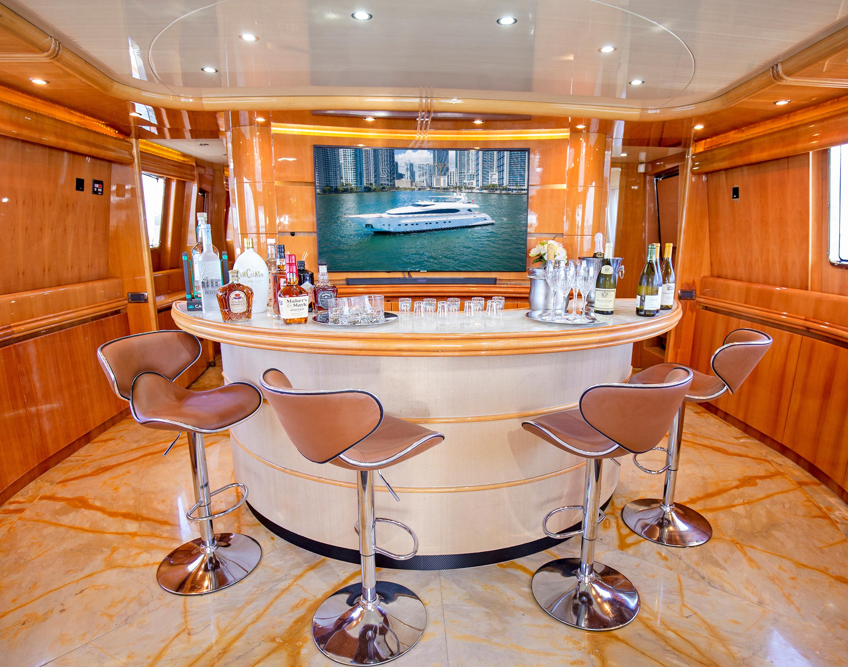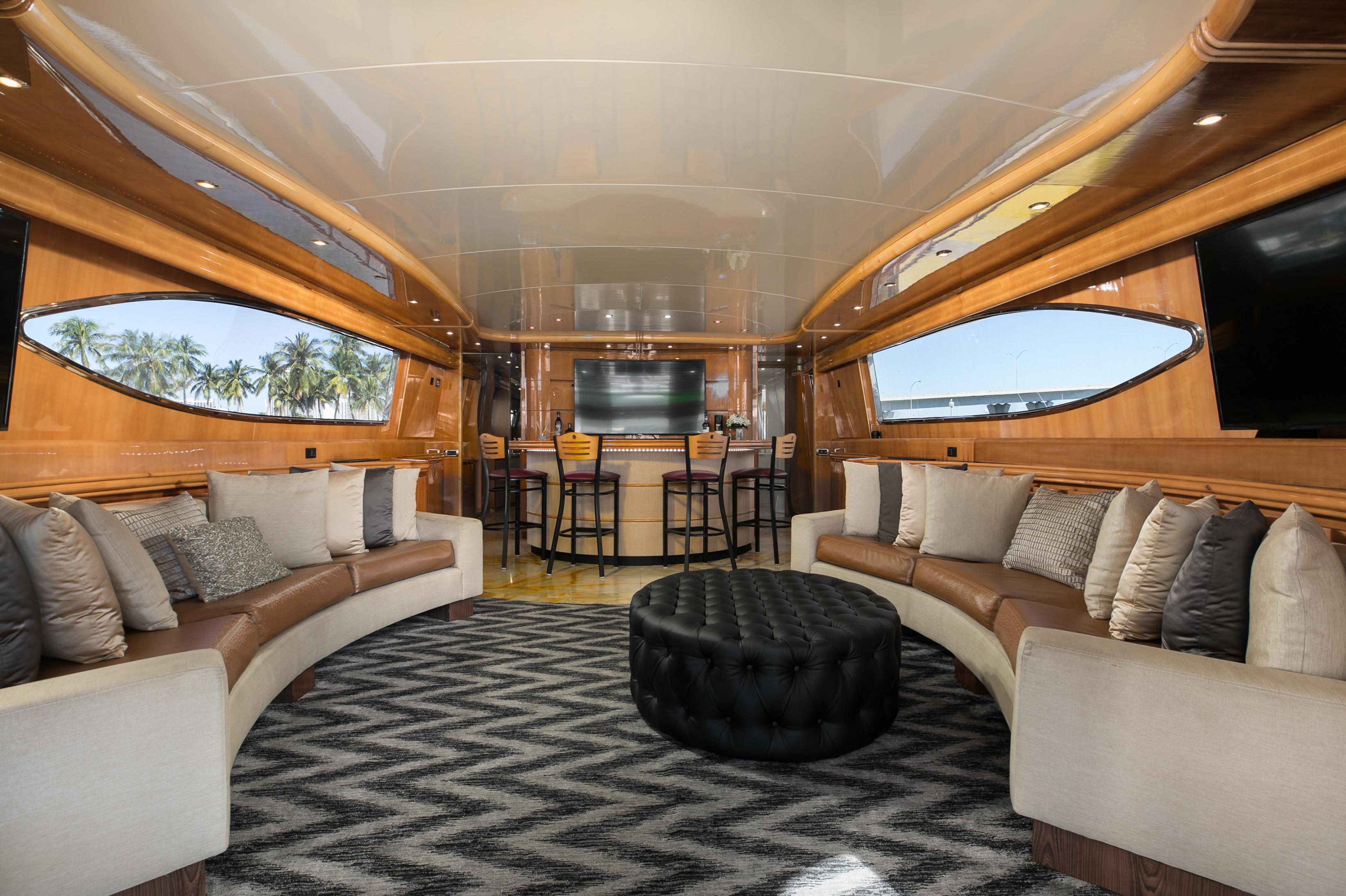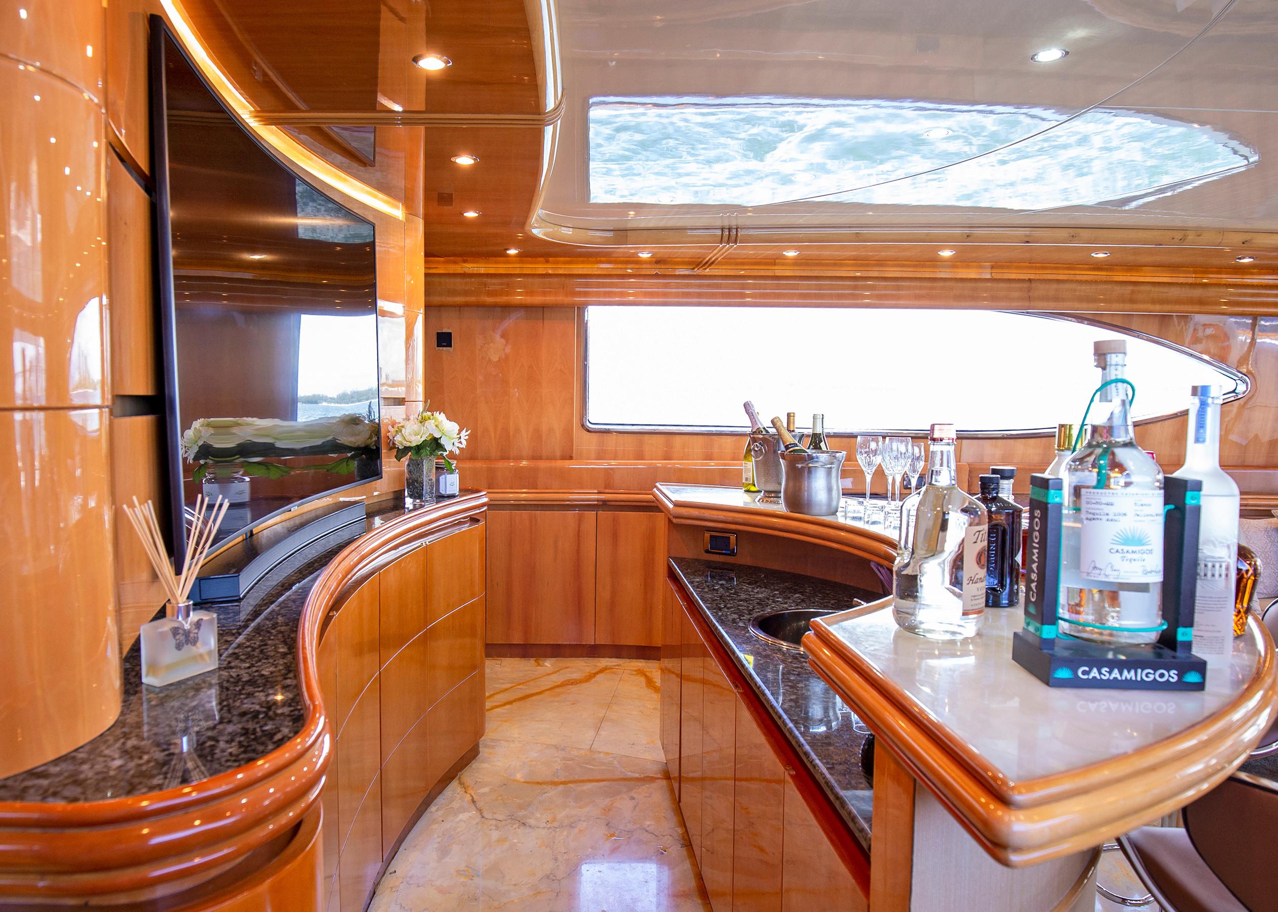 The lines of “Lunar” are personal and well-recognizable. The large windows in obscuring material allow total permeability between the interior and exterior spaces, so you can have a complete view of the sea from salon area including from the bar. A mixture of architecture and yacht design, which is expressed by creating shapes are unique in their genre.
