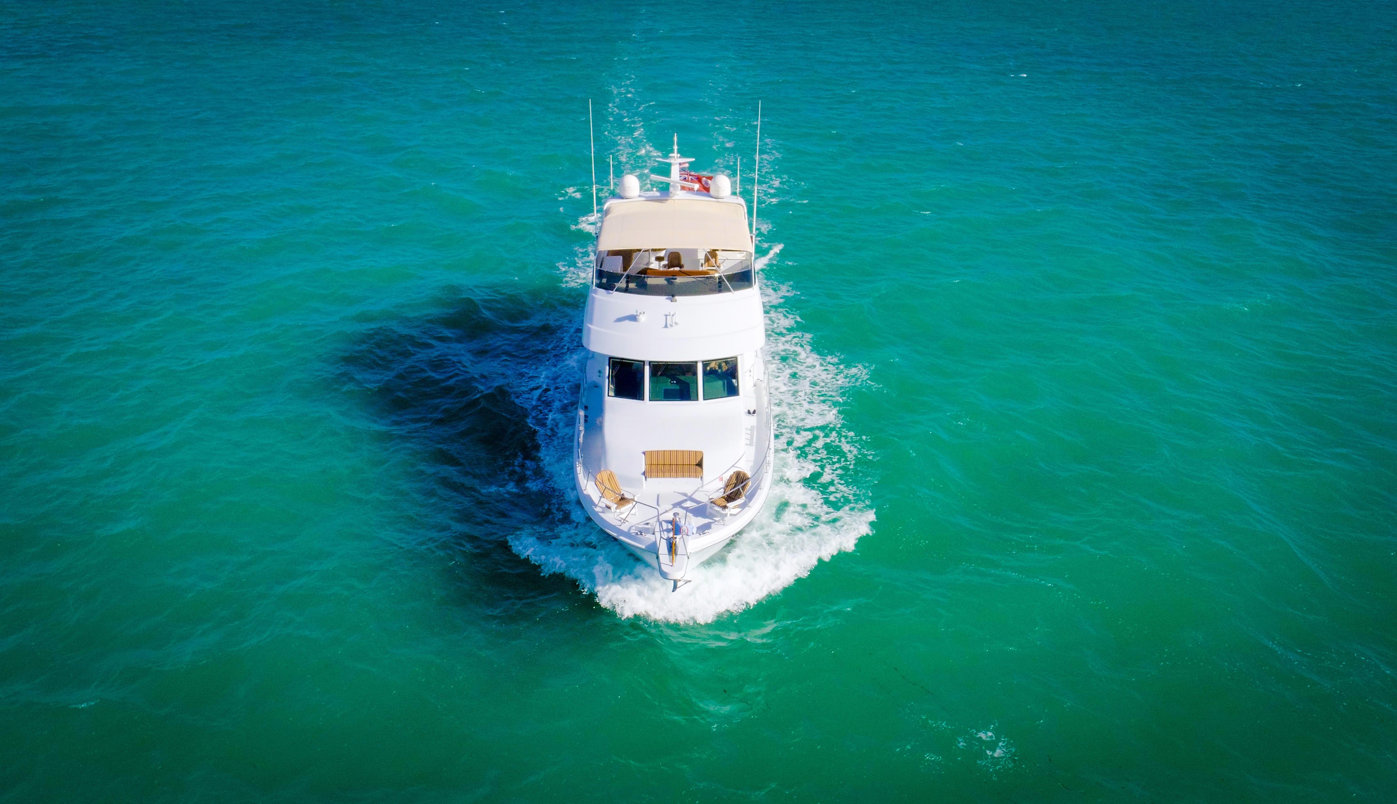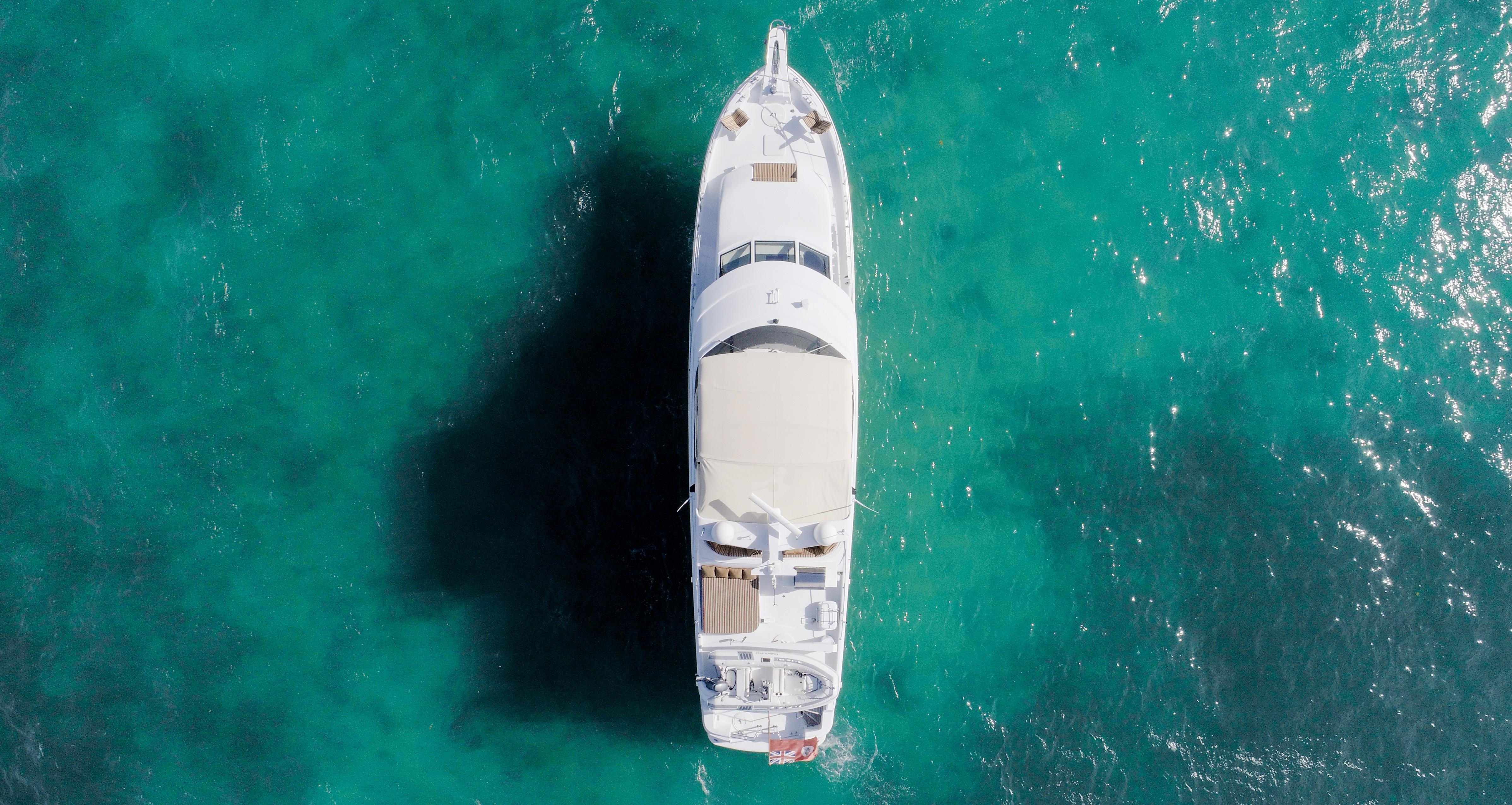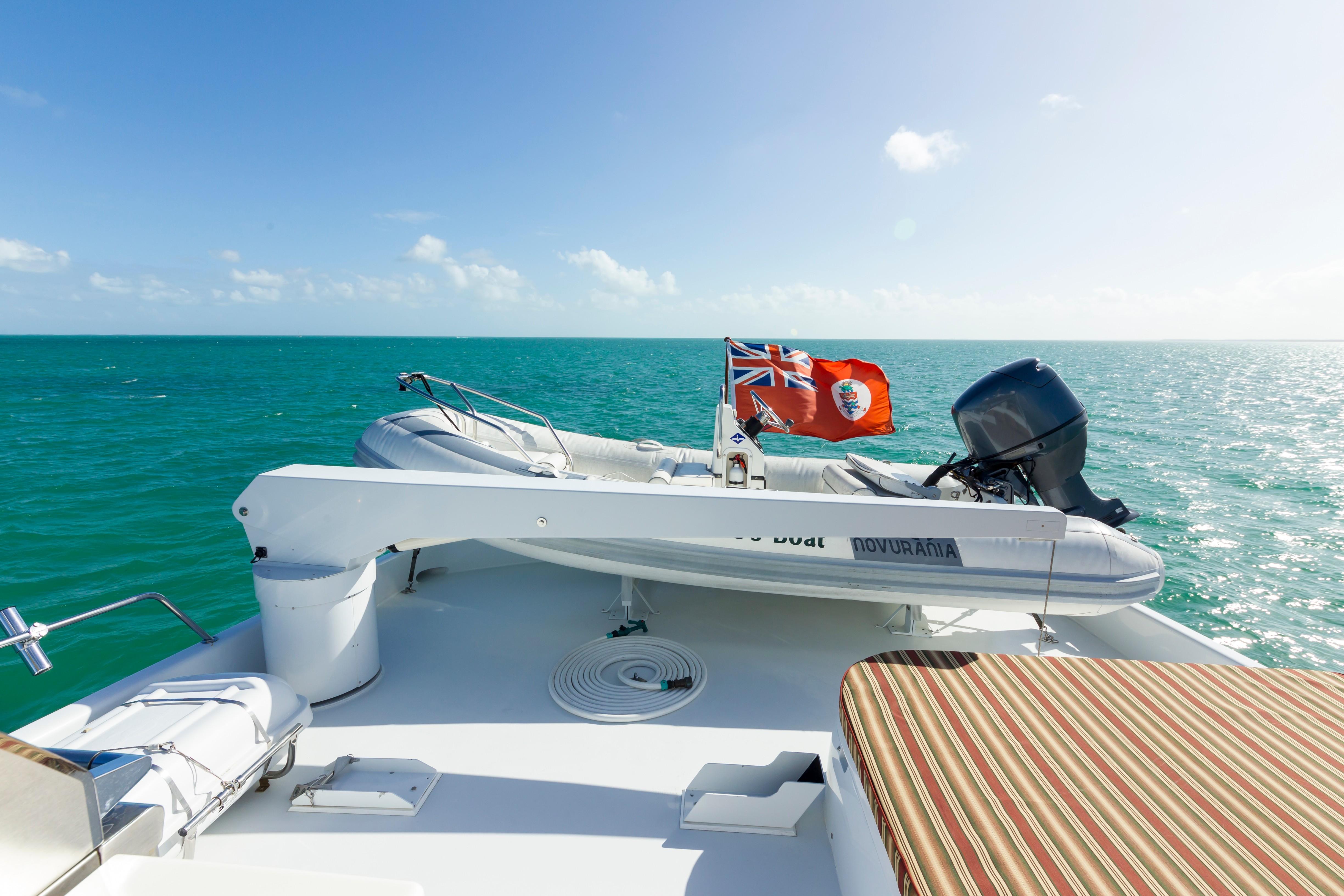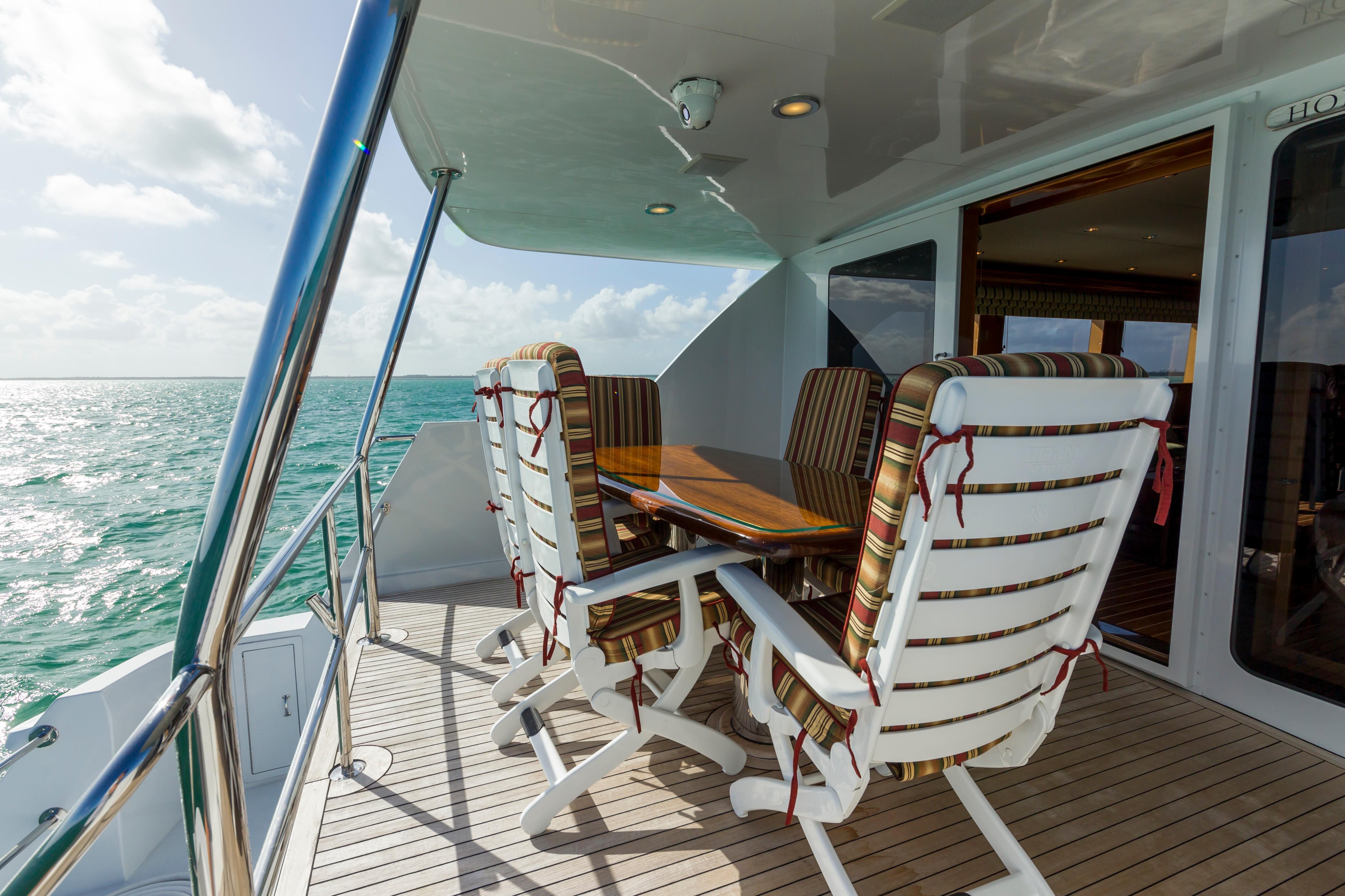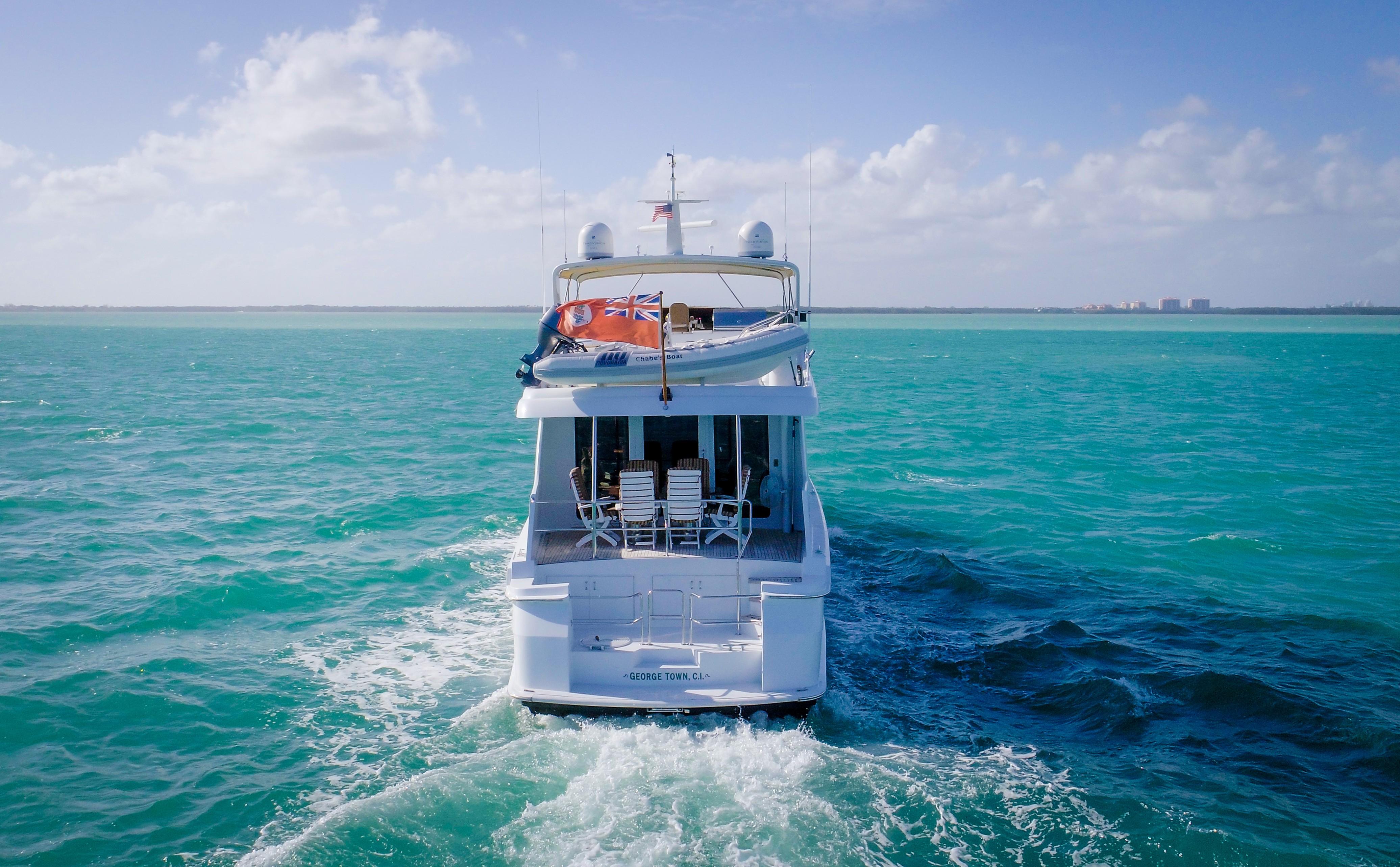 She features a 4 stateroom/4 head layout with a warm cherry wood interior. The master stateroom is aft with his and her heads. She is fully equipped with a Novurania tender with Yamaha 40 HP, spacious flybridge with key bar, custom built-in Lynx stainless steel grill, twin Onan 27.5KW generators, Naiad Multi-Sea 2000 stabilizers & complete electronics package. Powered by Caterpillars 3412E.