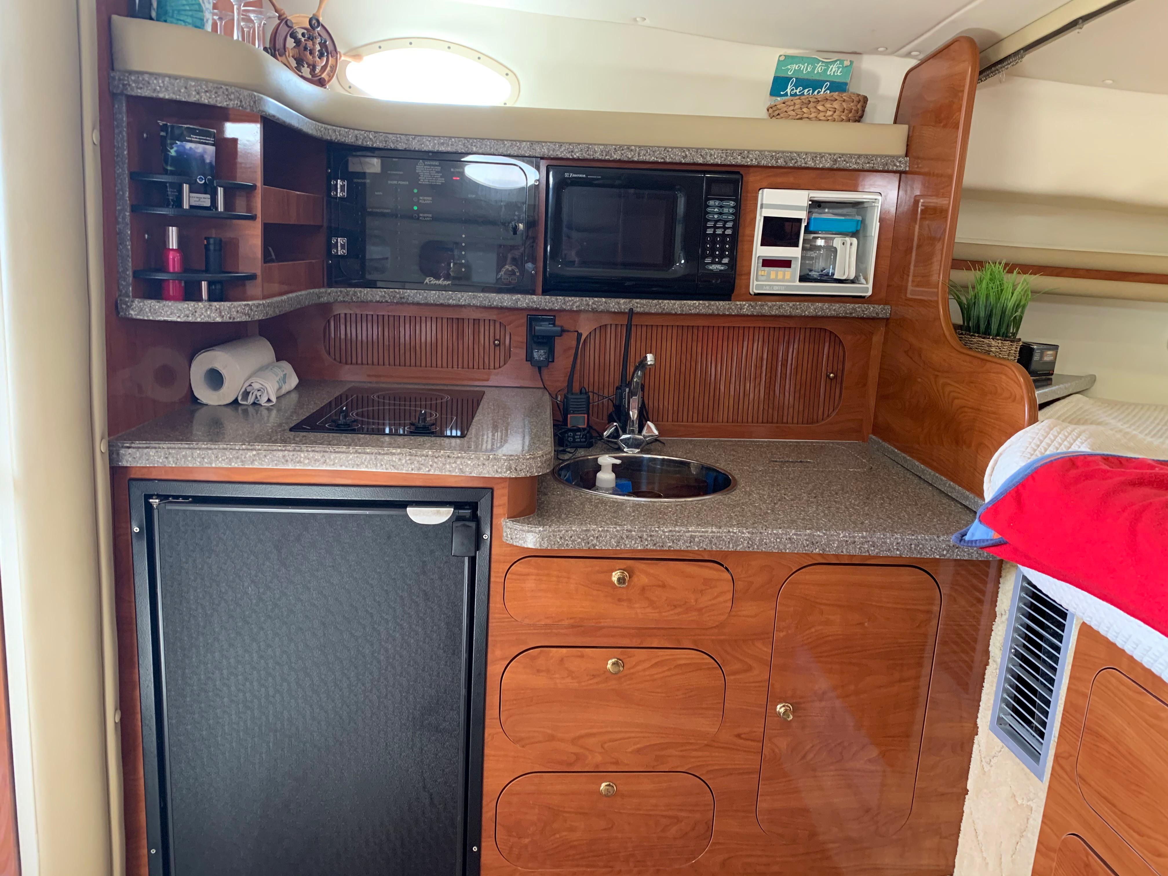 This 2003 Rinker 342 Express Cruiser has more than enough power with it’s 5.7 Liter Mercruiser Engines. Ample room for the family when cruising and relaxing. Also perfect for an overnight stay with the family in the keys.