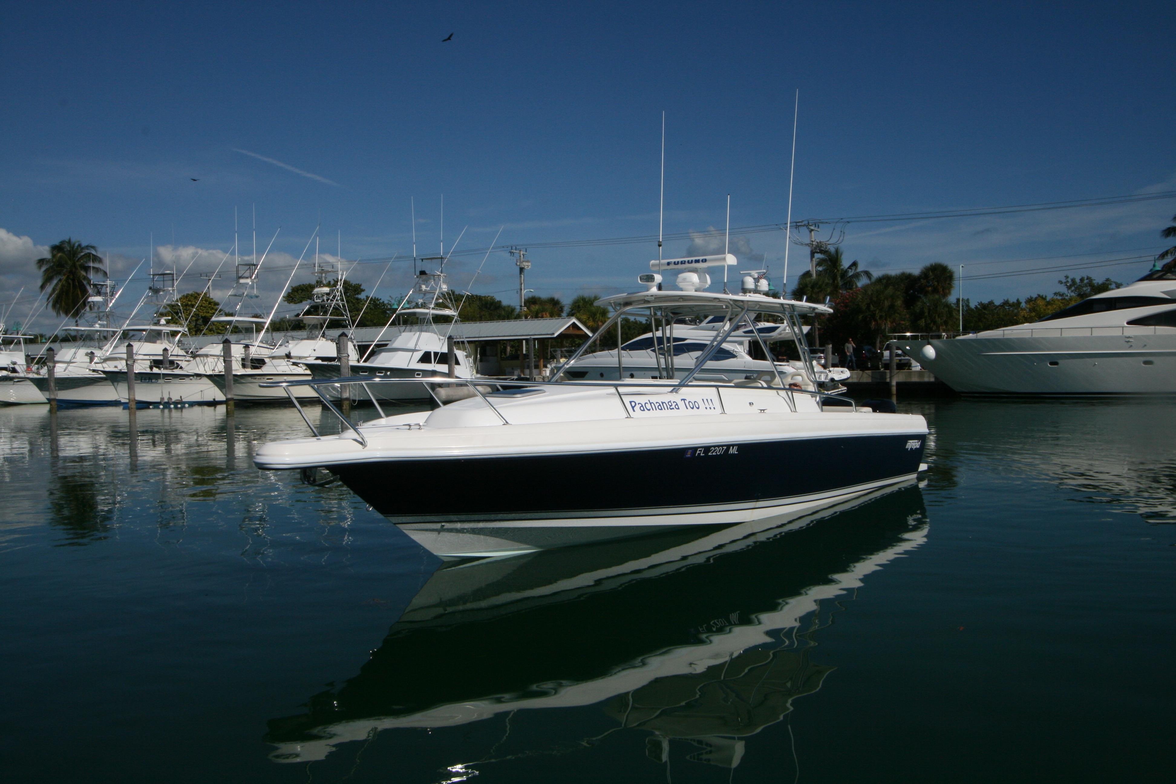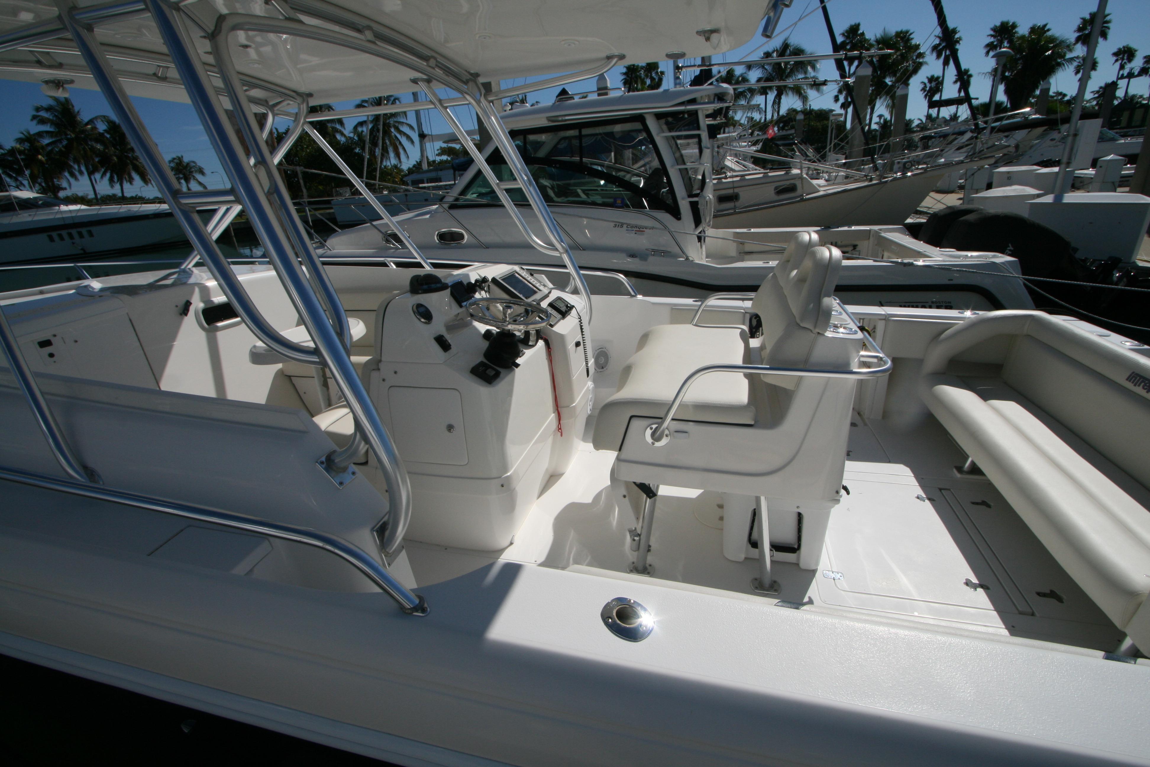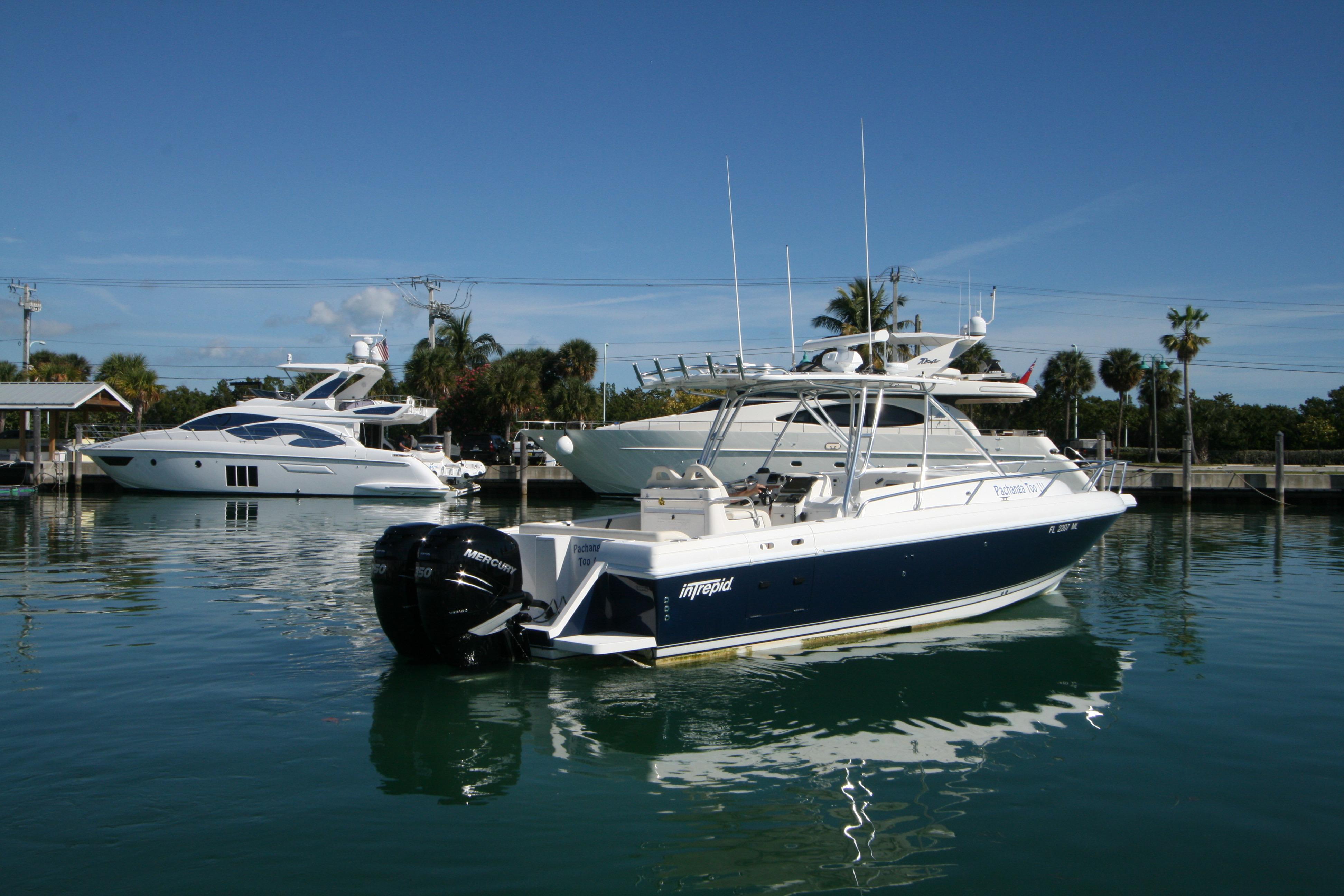 Re-powered in December 2015 with Twin Mercury Verado 4- Stroke 350hp and currently have 110 hours .This Intrepid is generously equipped with air conditioning, electric head, lee rod holders on gunwale, Lewar windlass, generator, bow thruster, fiberglass t-top, radar, autopilot, GPS, sounder, VHF radio, underwater lights and much more!!!