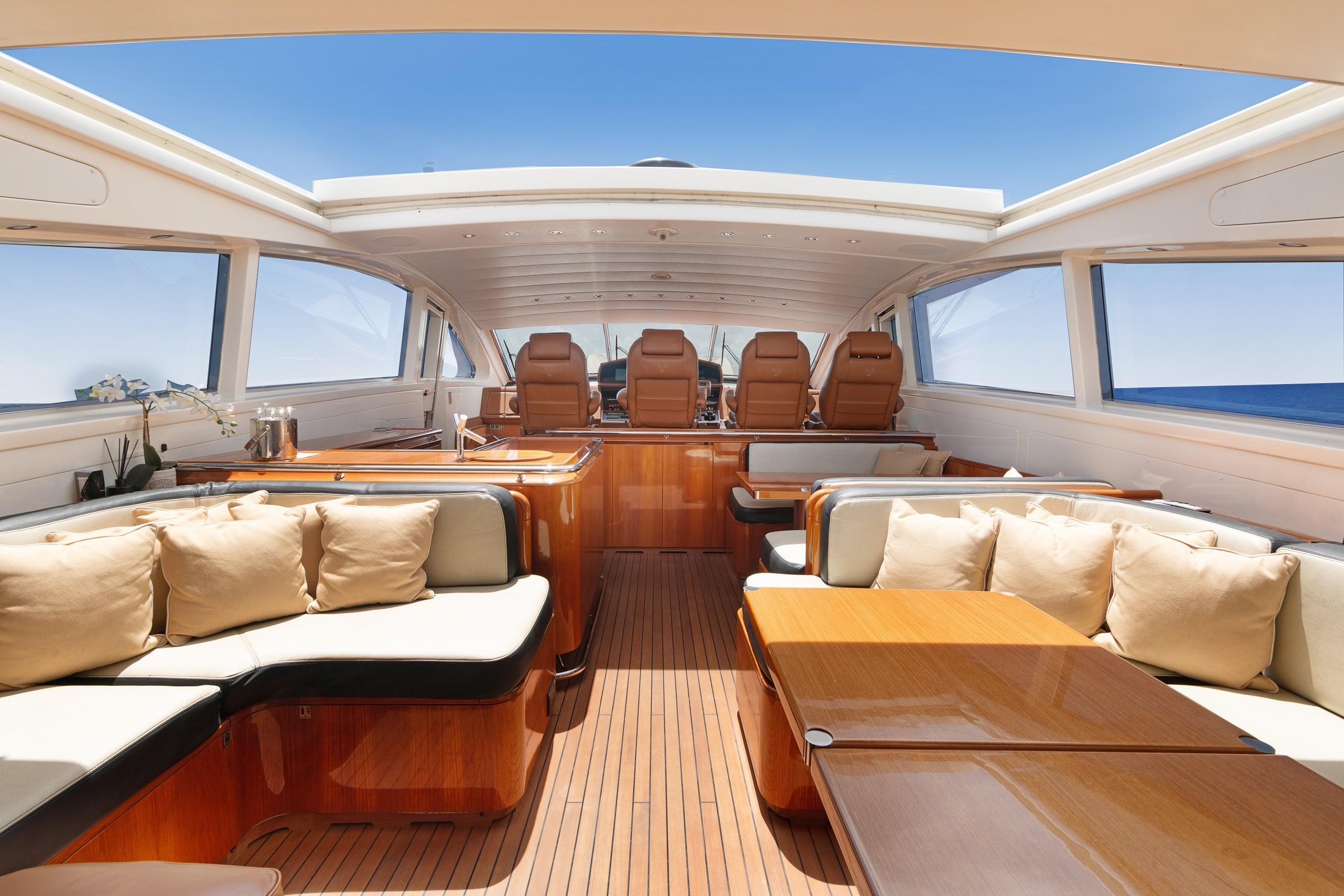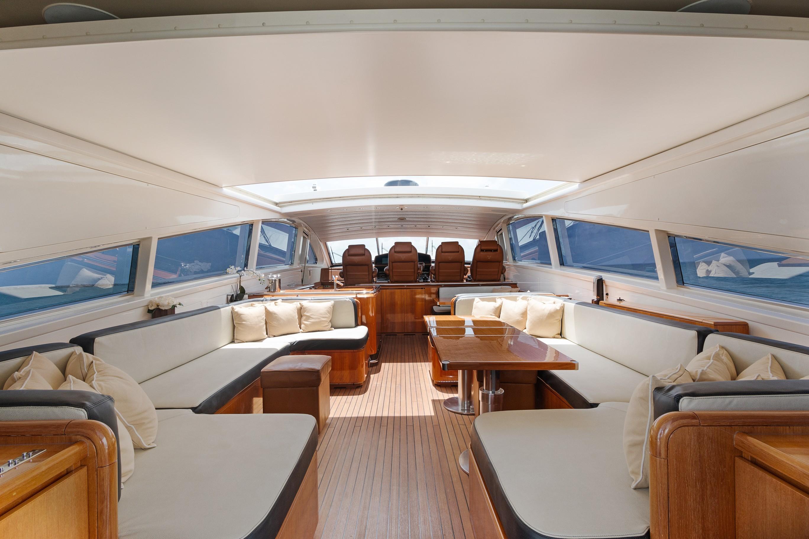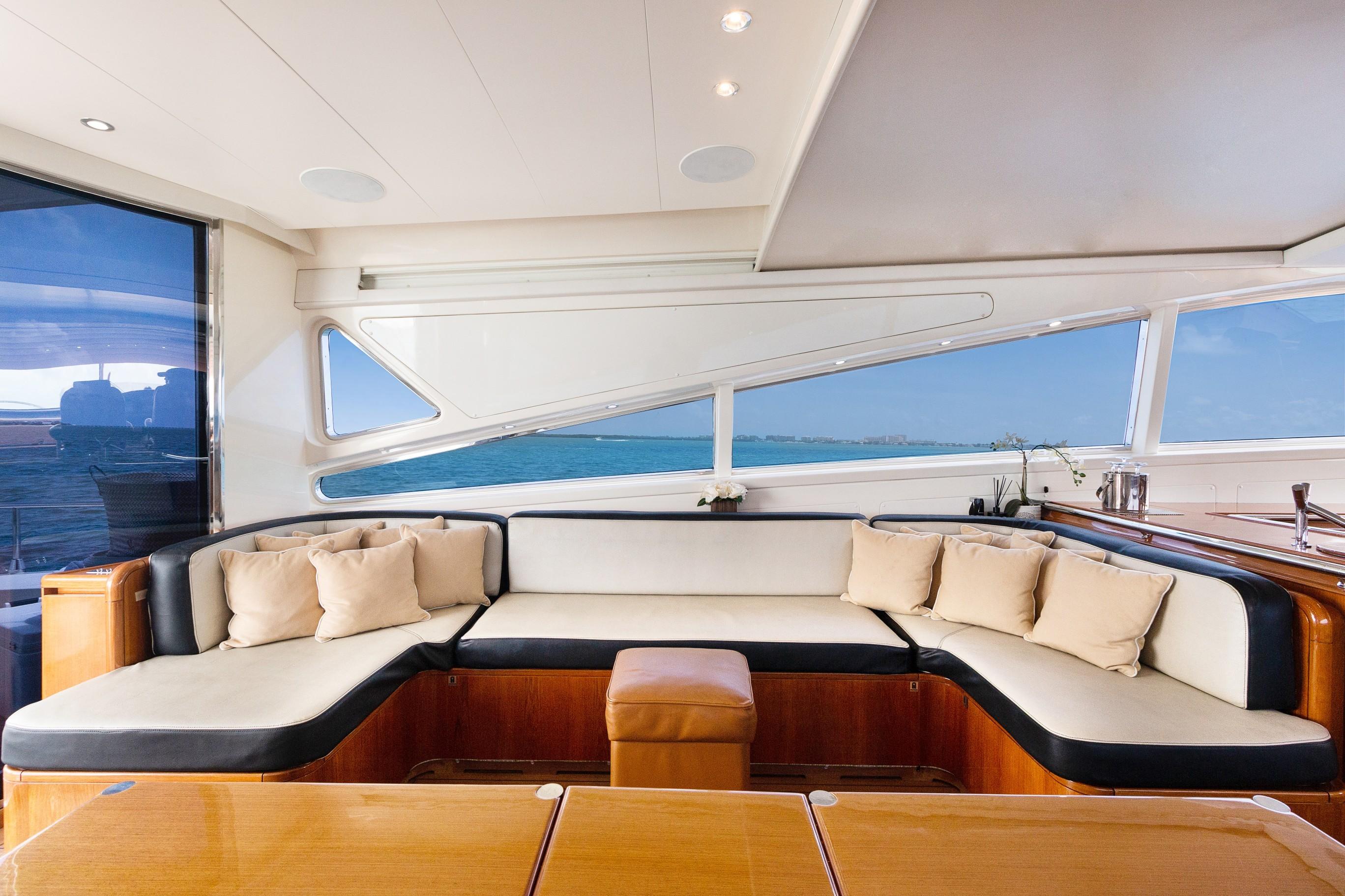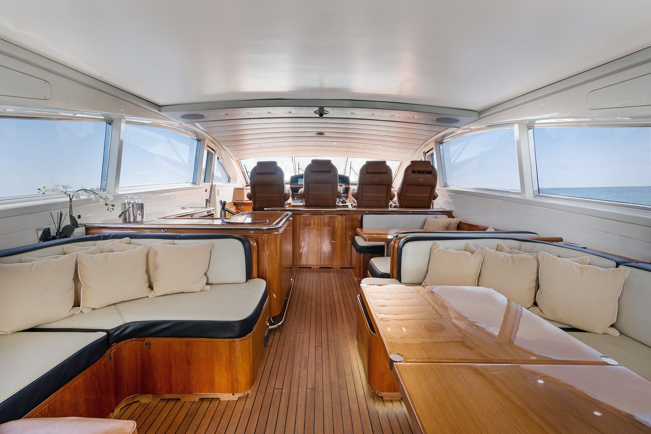 A staircase located forward to port at the Helm Station provides access down to the staterooms.