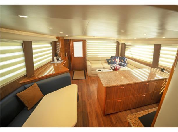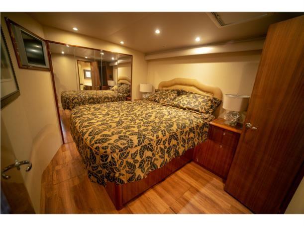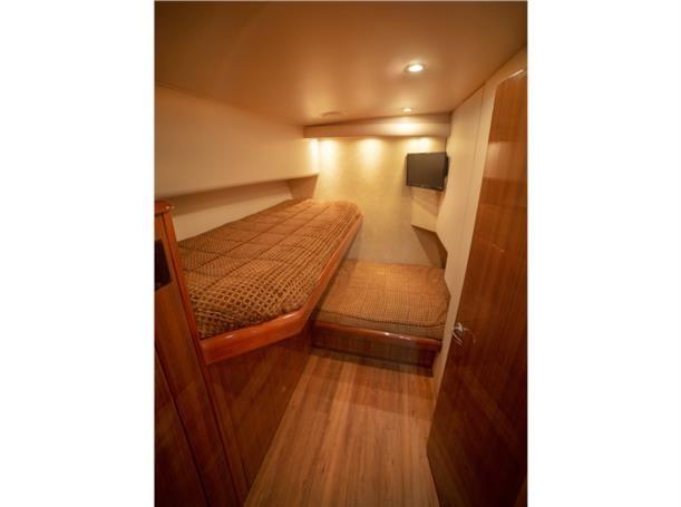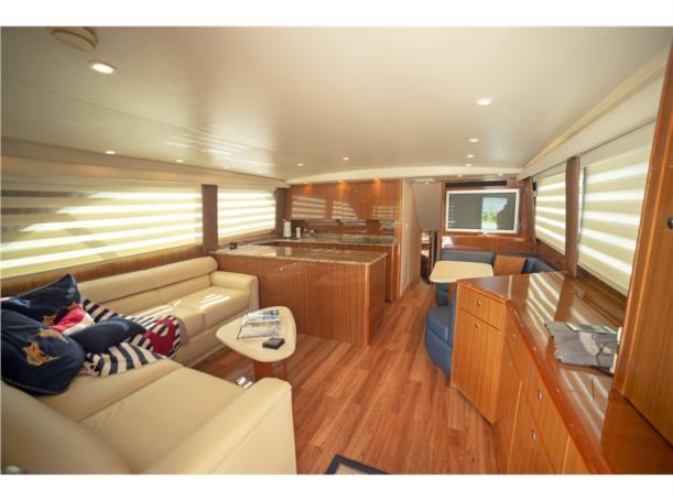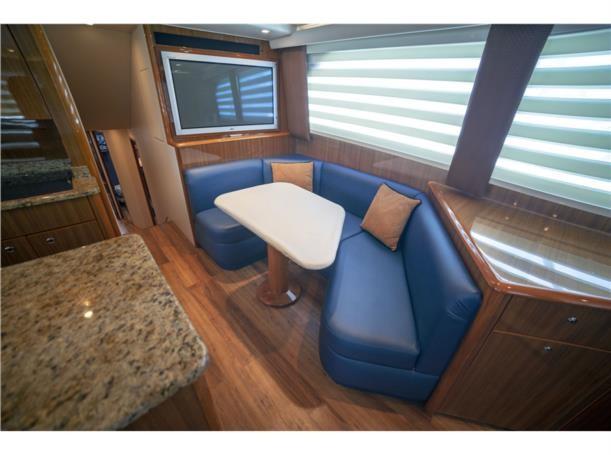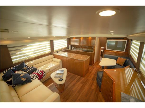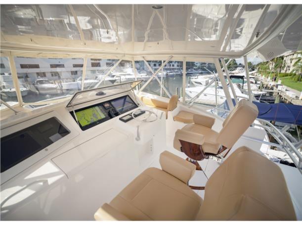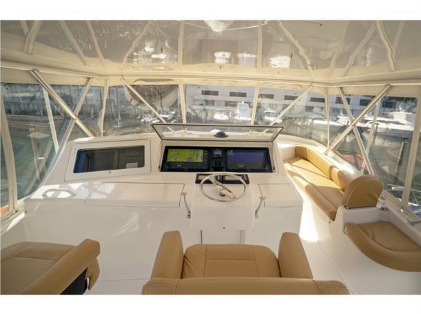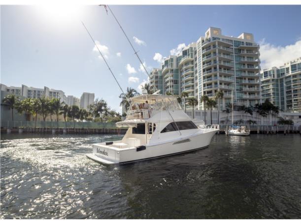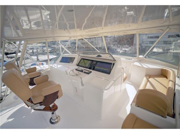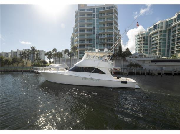 This 56′ Viking is an unstoppable fishing machine combined with a lavish two stateroom, three head interior layout with an impressive high gloss teak joinery, designed fabric, top quality and workmanship. This Viking is truly one of a kind. It features upgraded MTU 10V2000 with 1550 HP that pushes to a performance of 34 knot cruising speed and it could reach a top speed of 38 knots wide open. This Viking features a massive cockpit layout with a meticulous engine room, custom San Juan shade, Rupp outriggers, dingy, davit, Twin Onan 21.5 generators, 800 GPD watermaker, eskimo ice chipper and many other upgraded options.