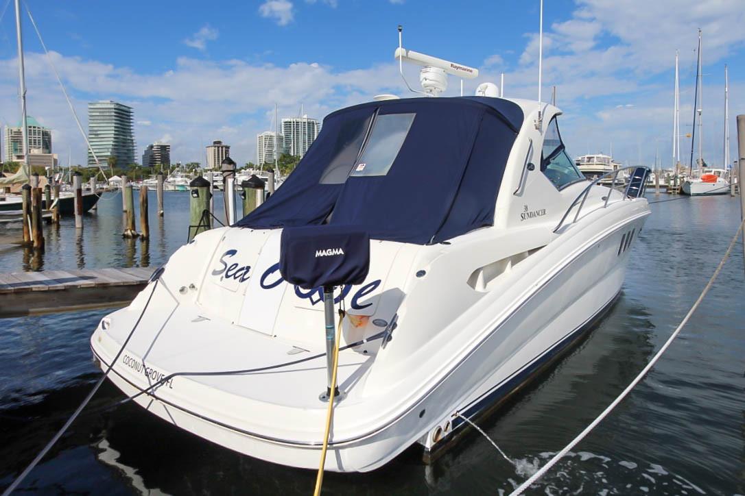 Without a doubt this is not only the cleanest Sea Ray available in today’s market, it is also very aggressive in price. WiFi Security Camera, New Ice Cold Air Conditioner, New Compressor and Total System Service, Wood Flooring and fresh engine servicing to included manifold. See the extensive list of remarks bellow, very meticulous owner keeps this boat in excellent conditions.