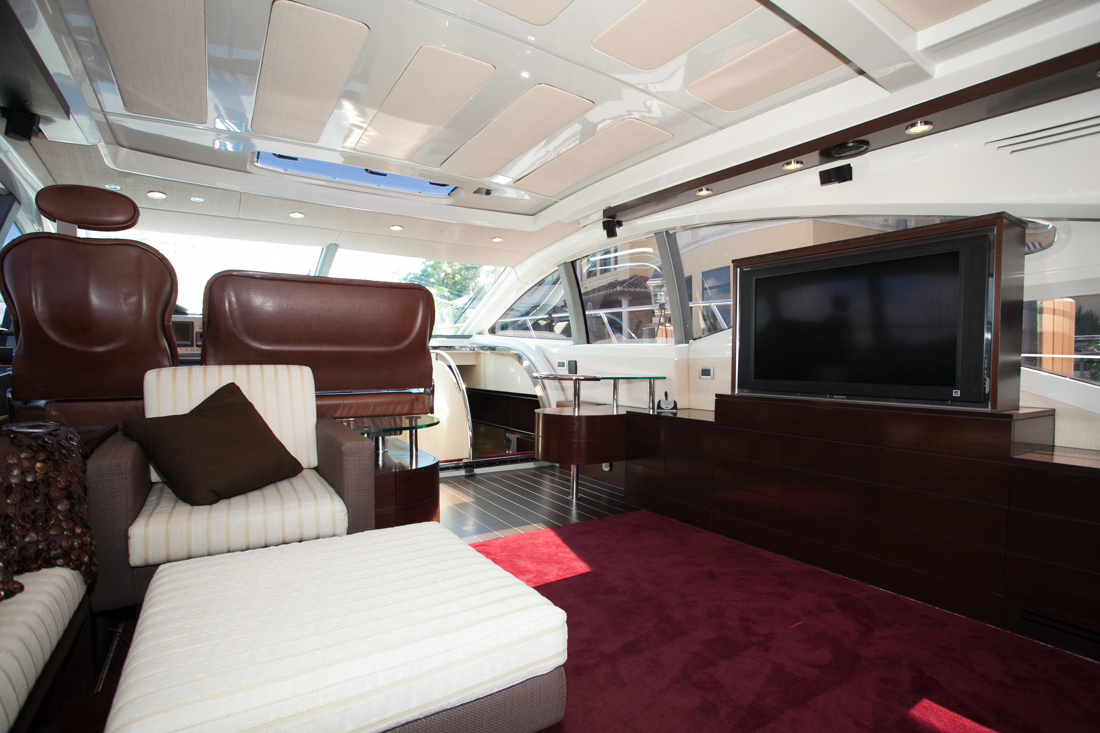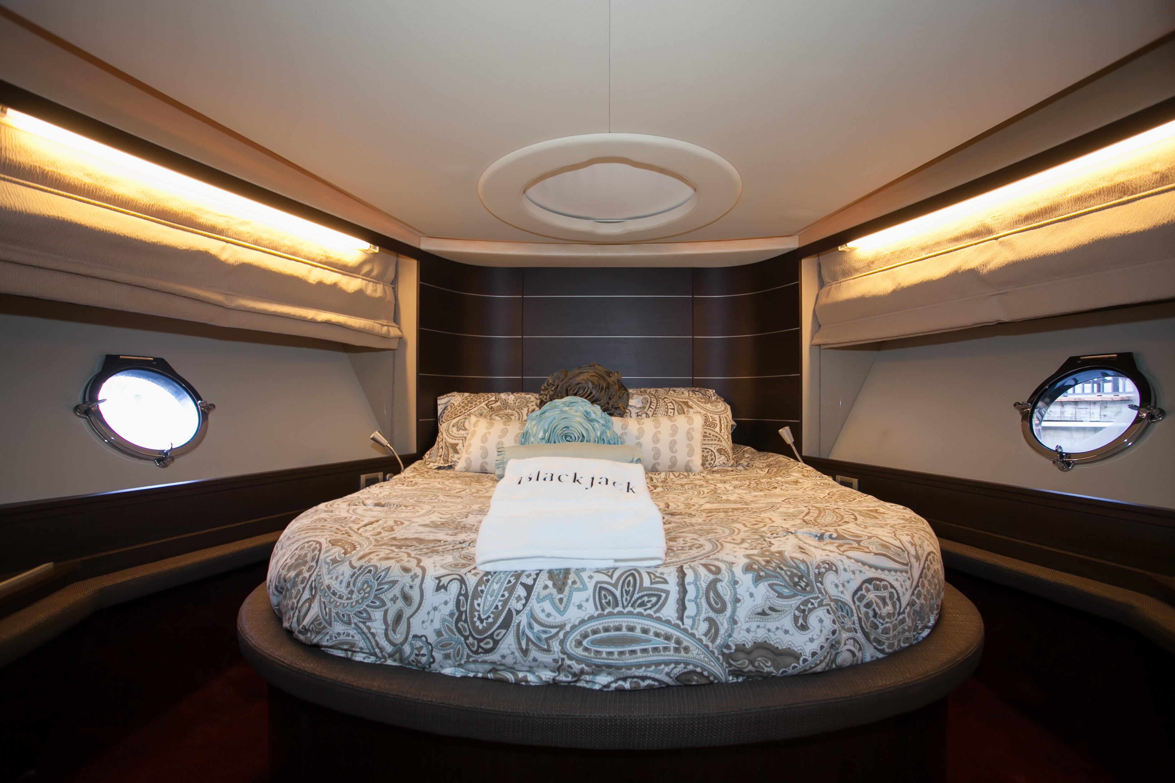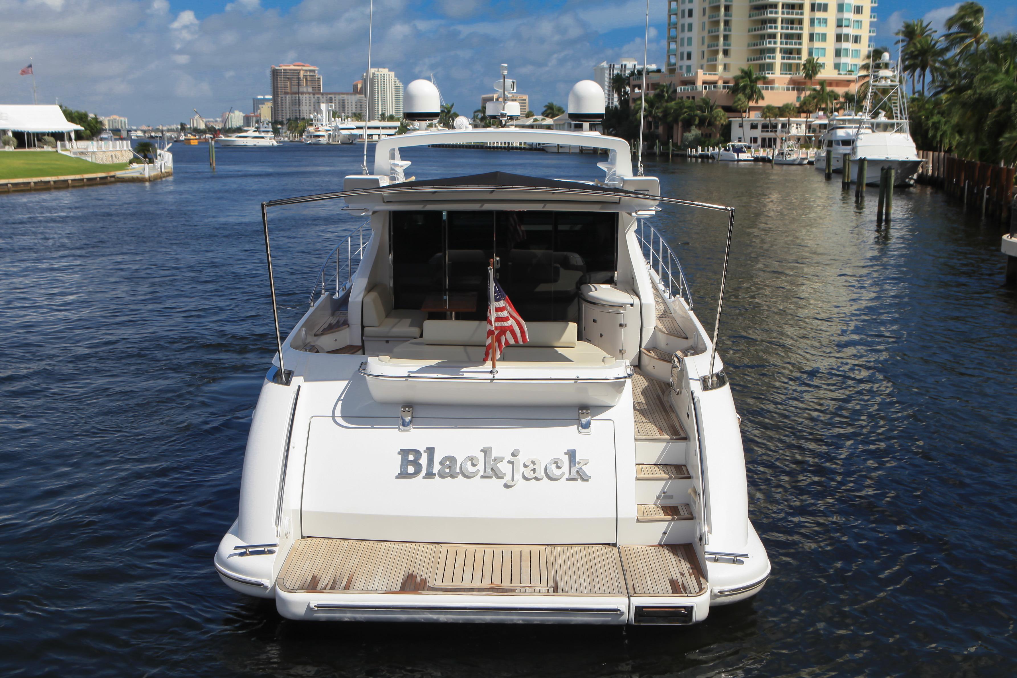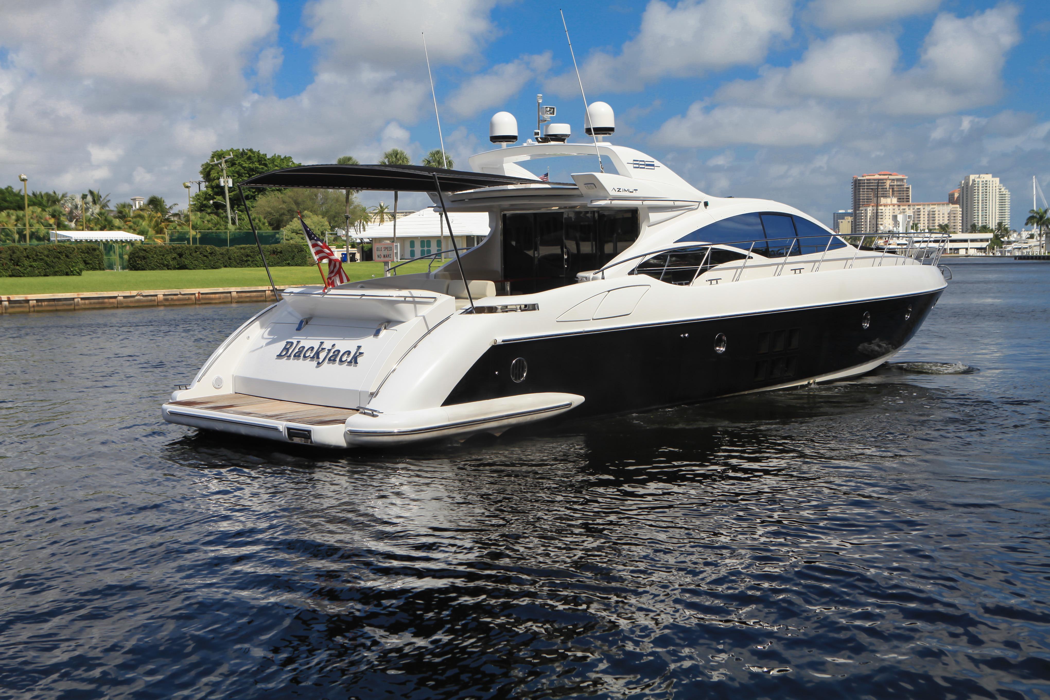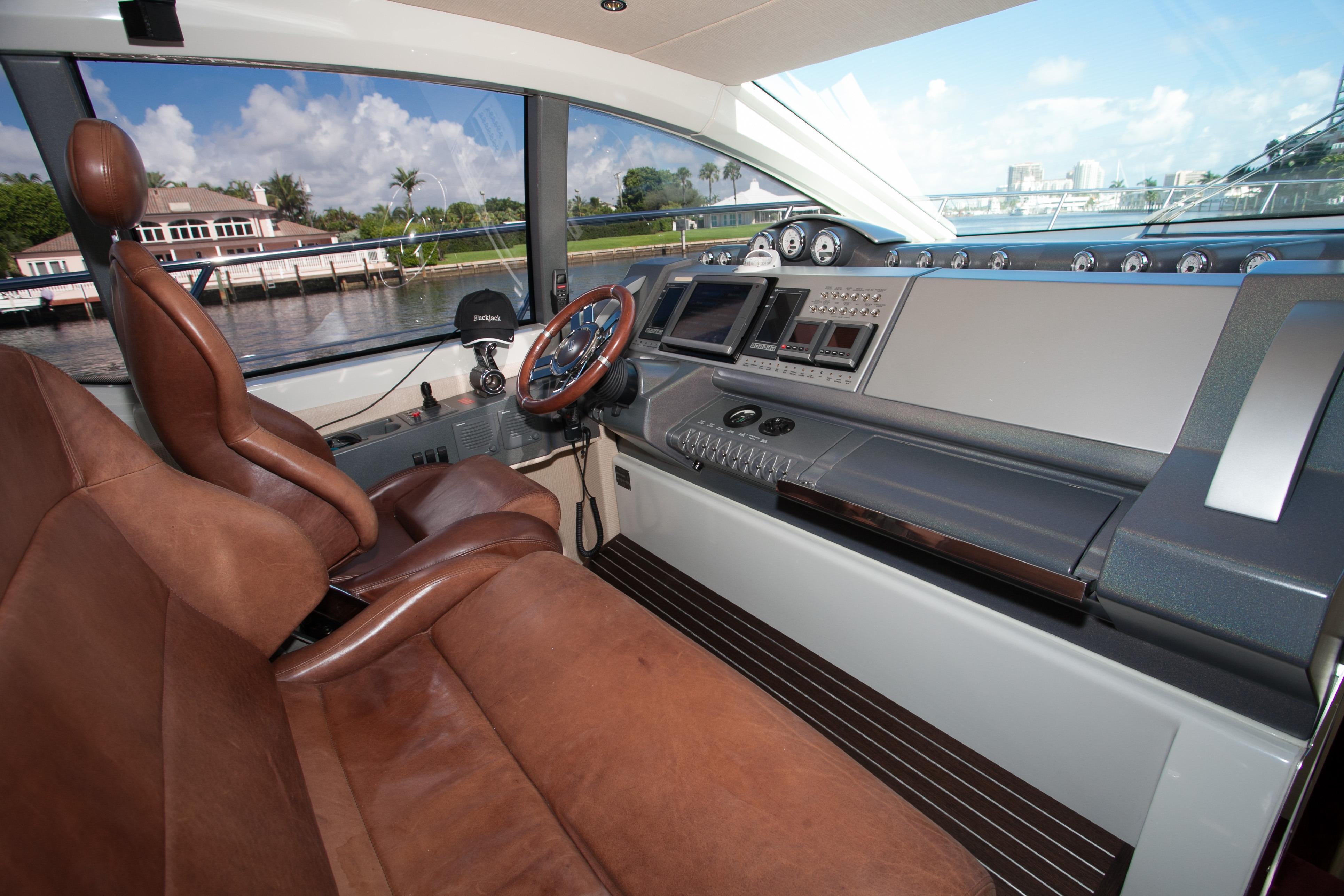 Blackjack is a radically different sportcruiser that breaks the mold with an innovative interior layout and unique hardtop design. A full-beam master stateroom is rare in a boat this size whose highlights include tender garage, joystick engine controls, Dock Master wireless control, sunroof, small crew cabin, washer/dryer, huge cockpit, Custom cockpit shade and sun pad. The captain helm features a state of the art helm chair with a beach seat for two. “Blackjack” is powered by 2 MAN CRM 1360 HP that gives it a cruising speed of 30 knots and reaches a top speed of 36 knots. By far, the Azimut 68 S is the leading model of its kind and will continue to turn heads no matter where it goes.