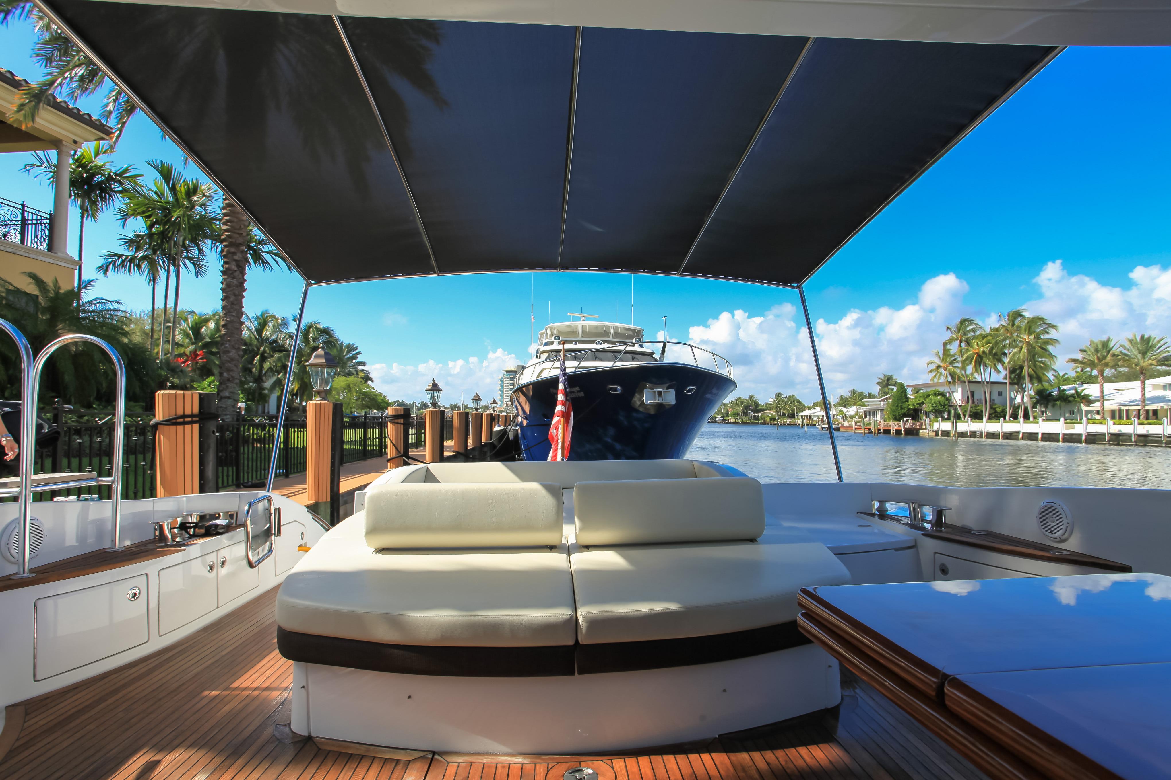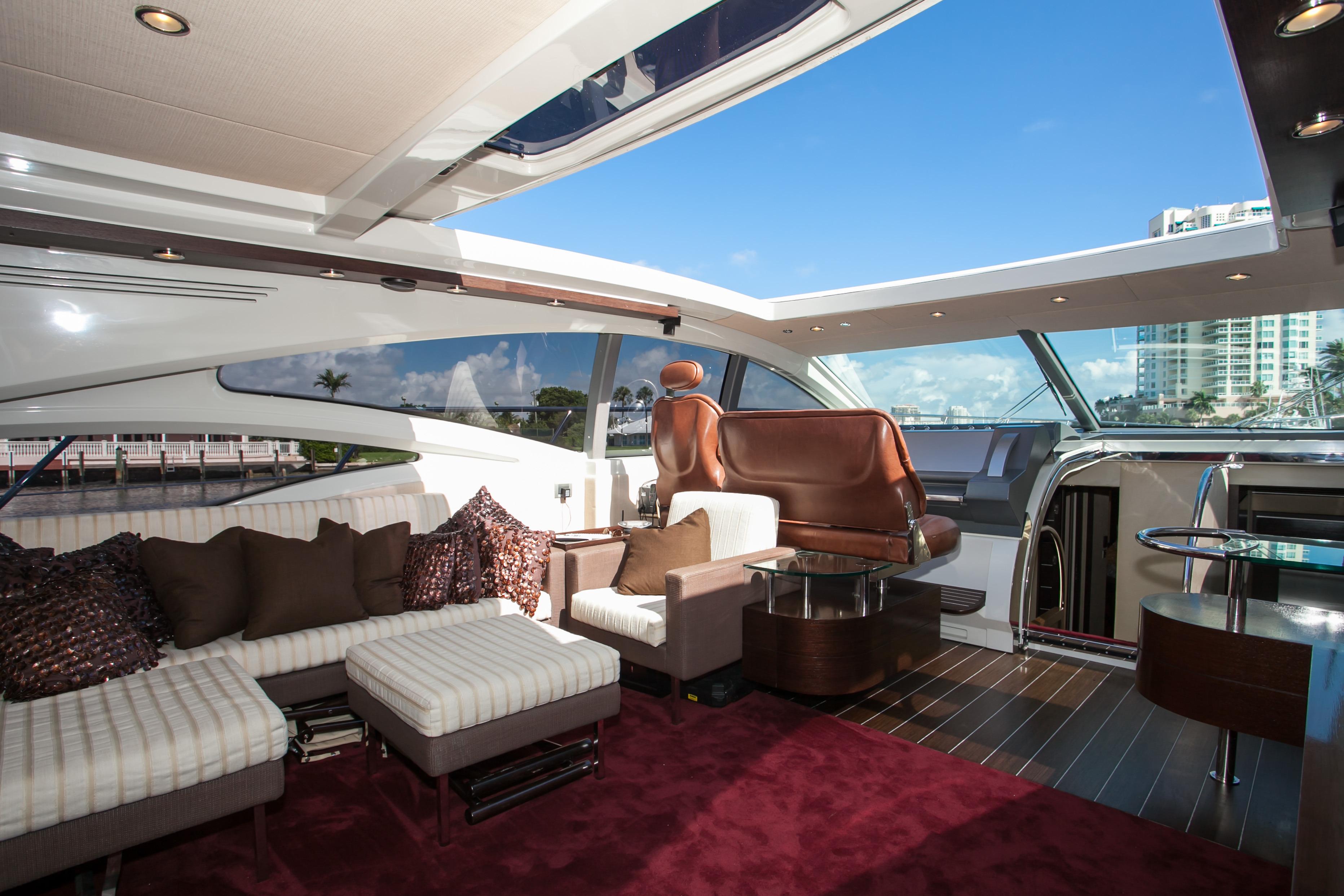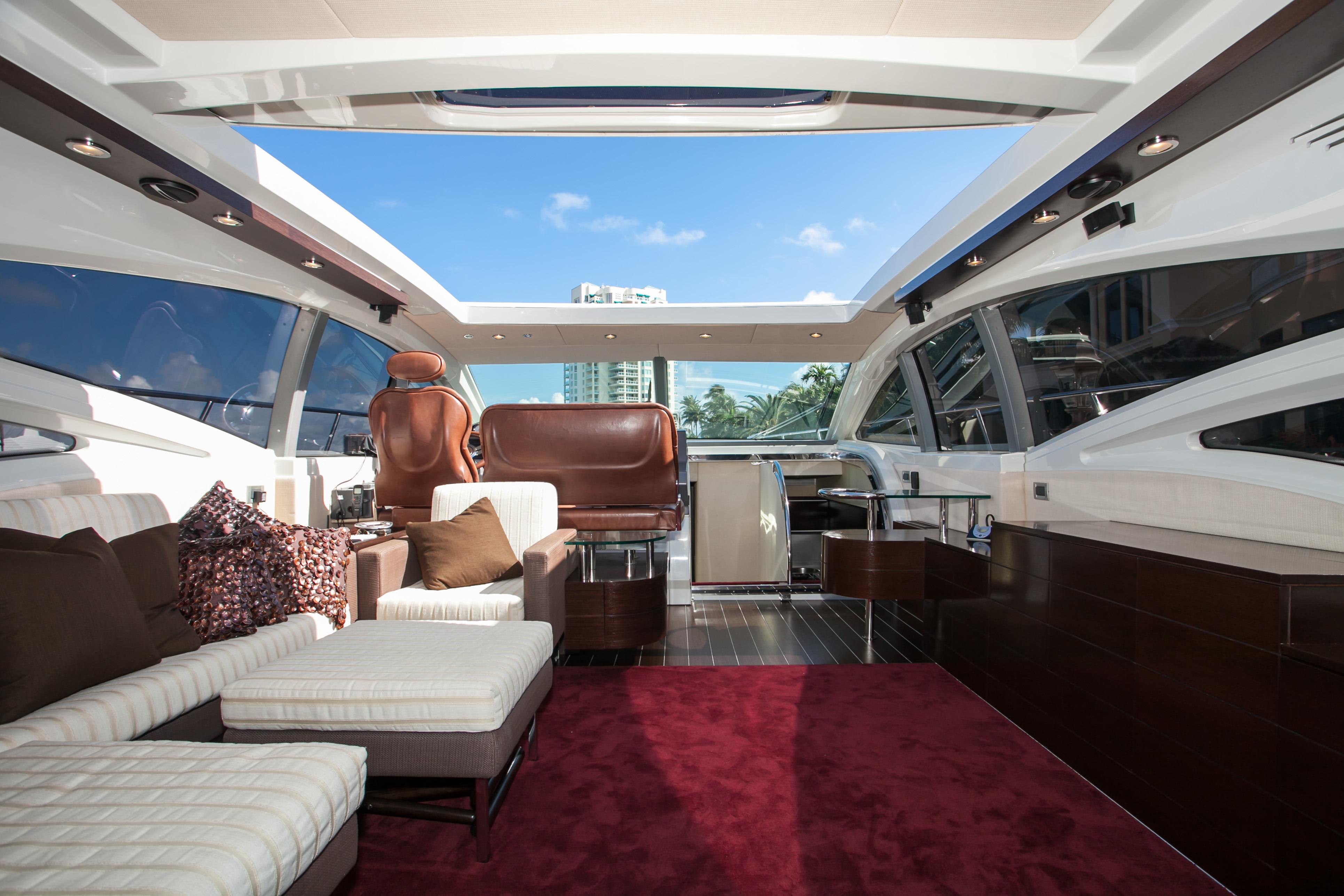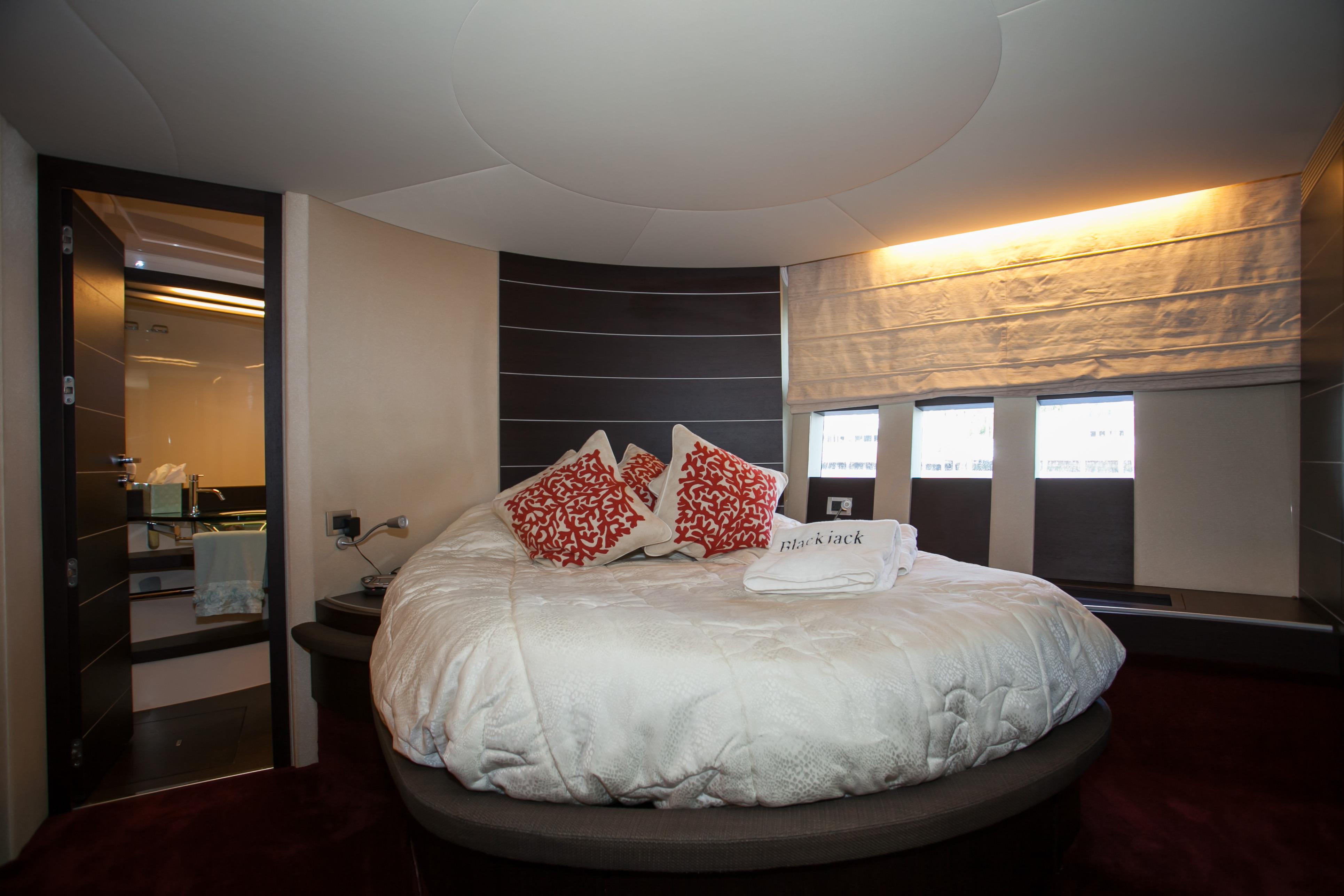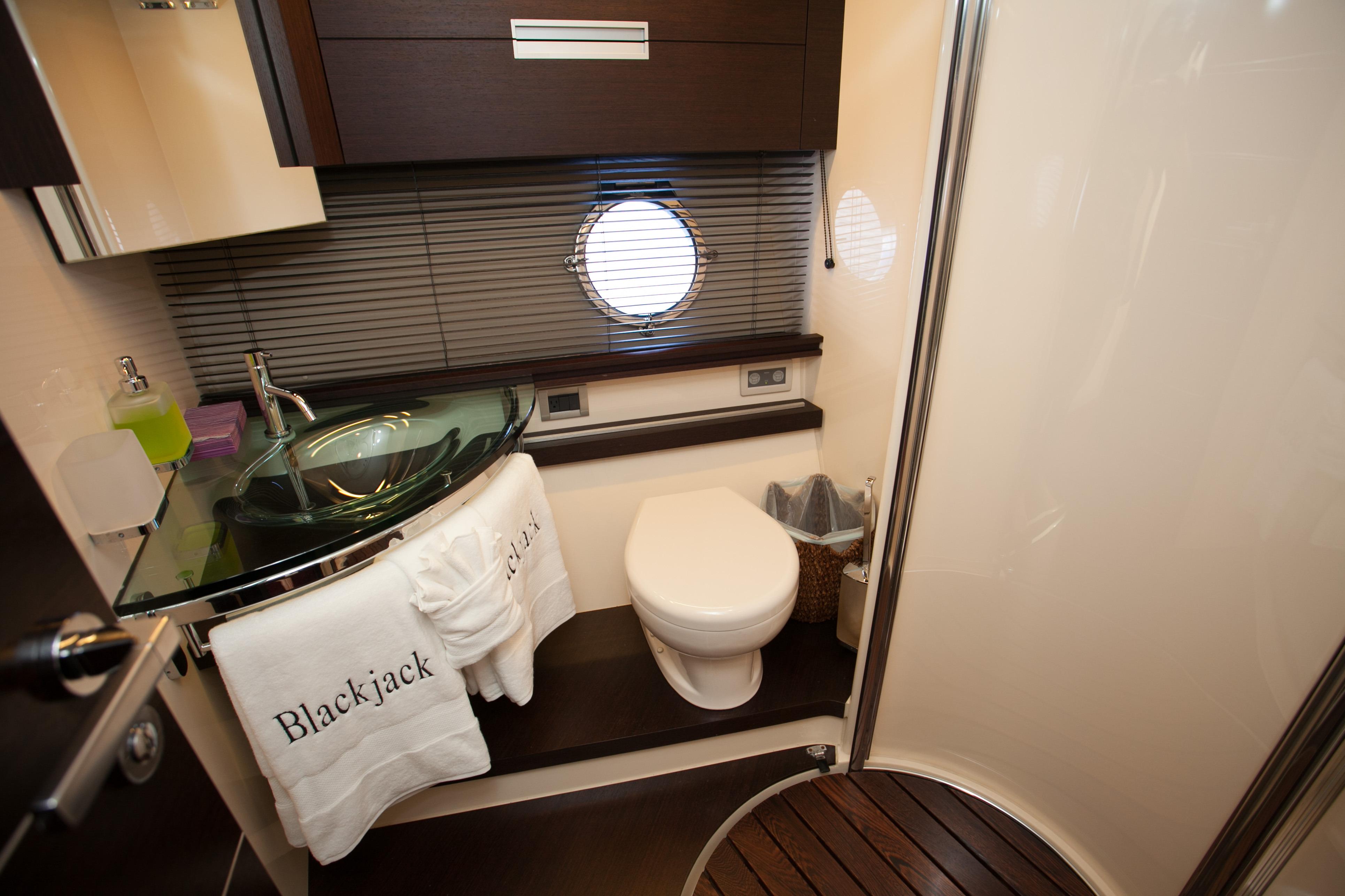 Blackjack is a radically different sportcruiser that breaks the mold with an innovative interior layout and unique hardtop design. A full-beam master stateroom is rare in a boat this size whose highlights include tender garage, joystick engine controls, Dock Master wireless control, sunroof, small crew cabin, washer/dryer, huge cockpit, Custom cockpit shade and sun pad. The captain helm features a state of the art helm chair with a beach seat for two. “Blackjack” is powered by 2 MAN CRM 1360 HP that gives it a cruising speed of 30 knots and reaches a top speed of 36 knots. By far, the Azimut 68 S is the leading model of its kind and will continue to turn heads no matter where it goes.