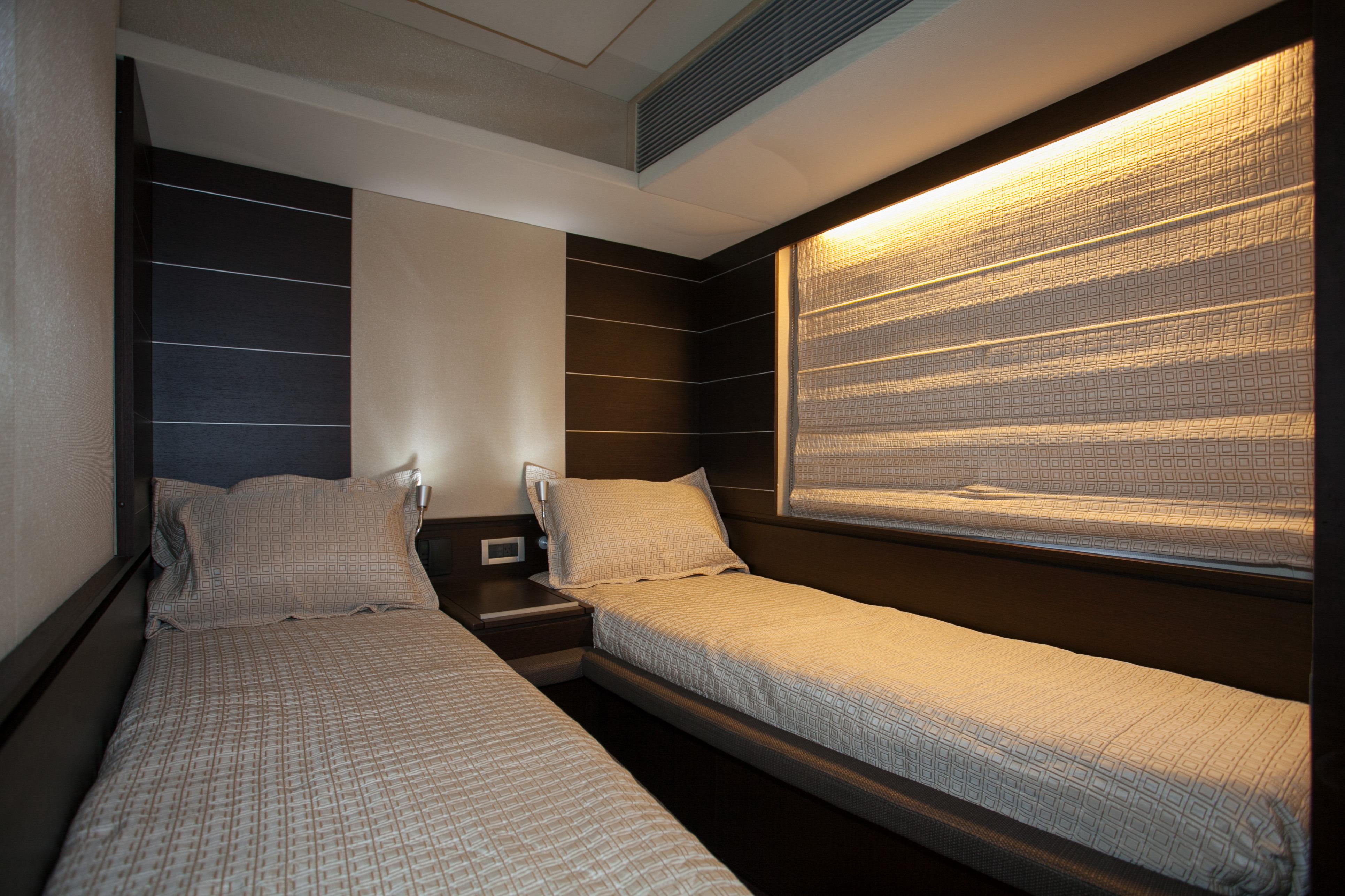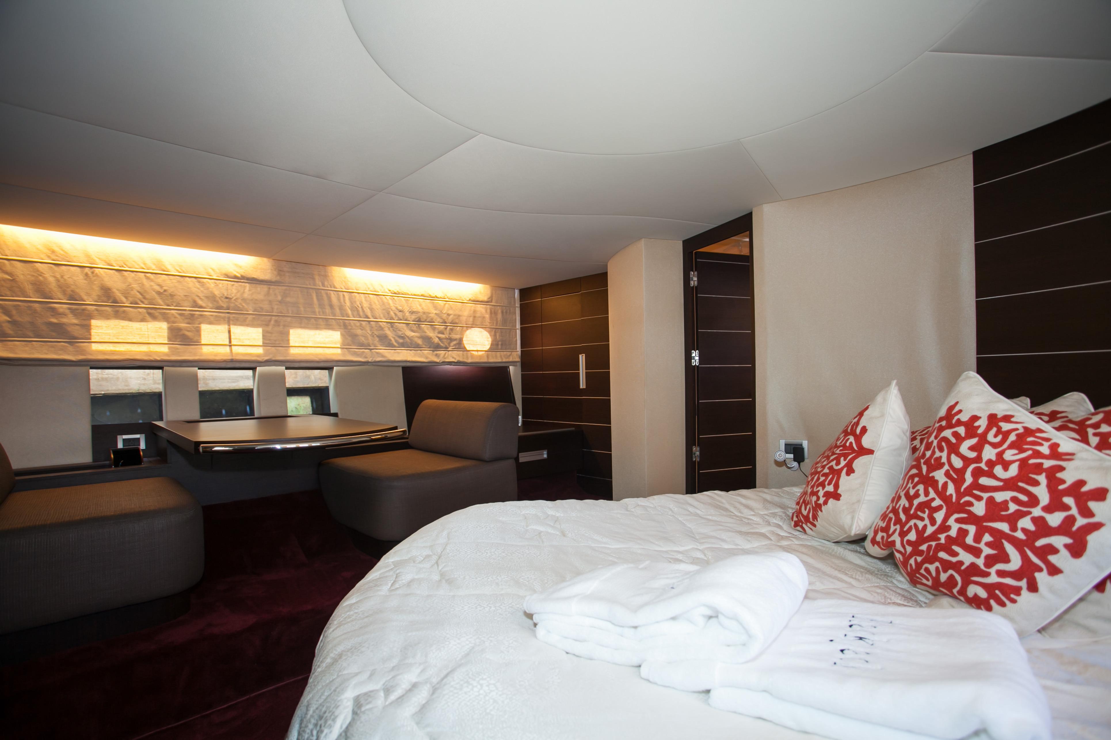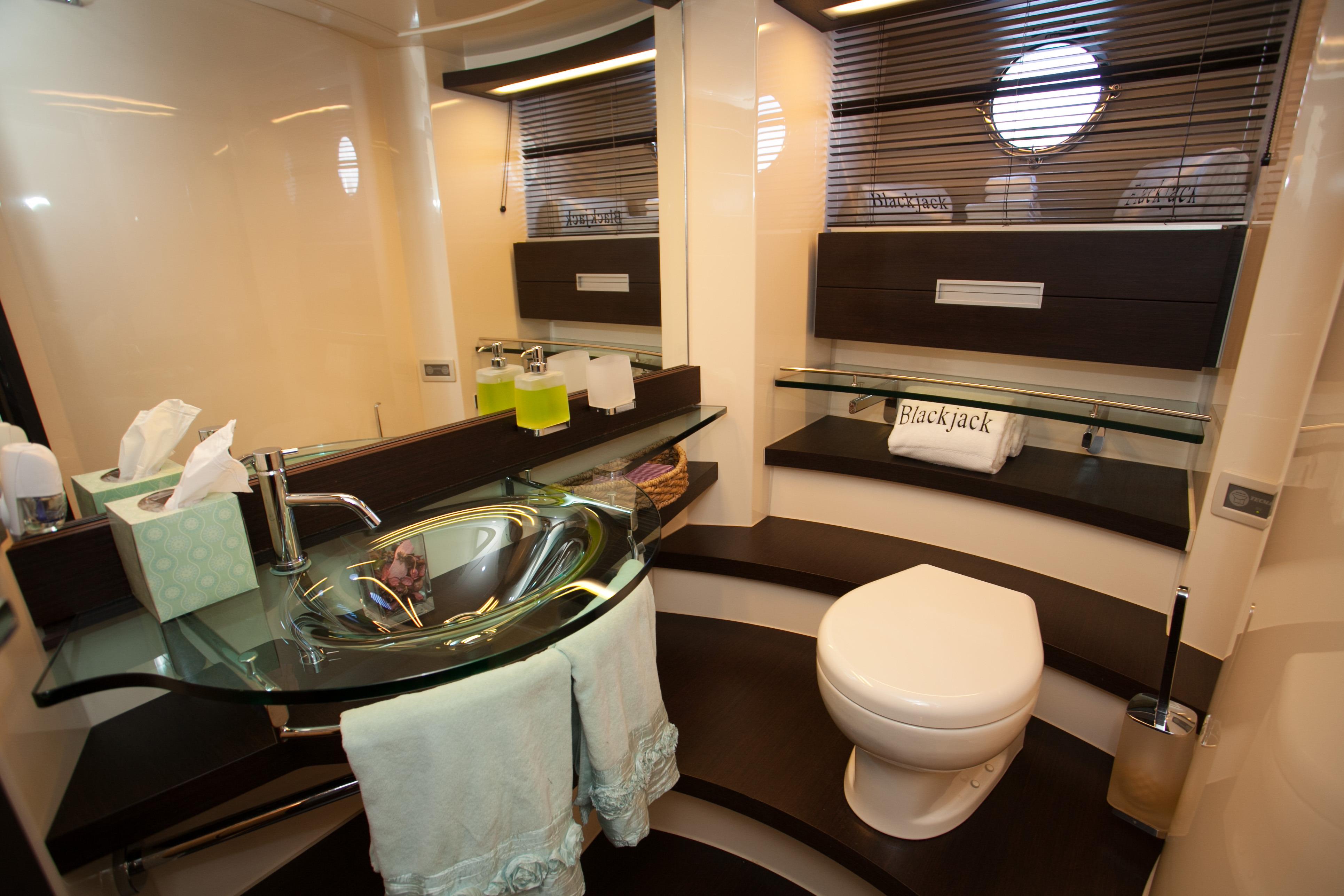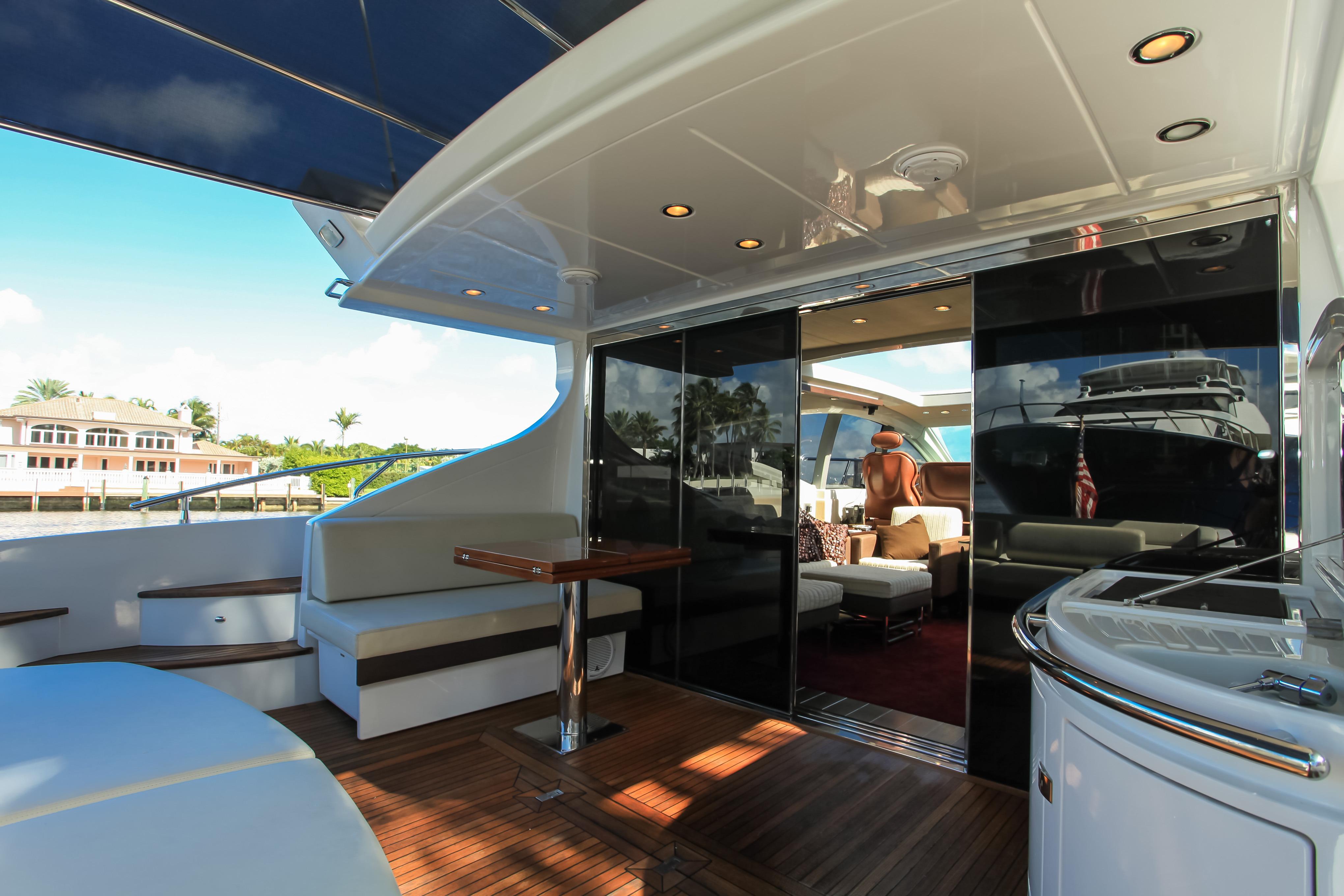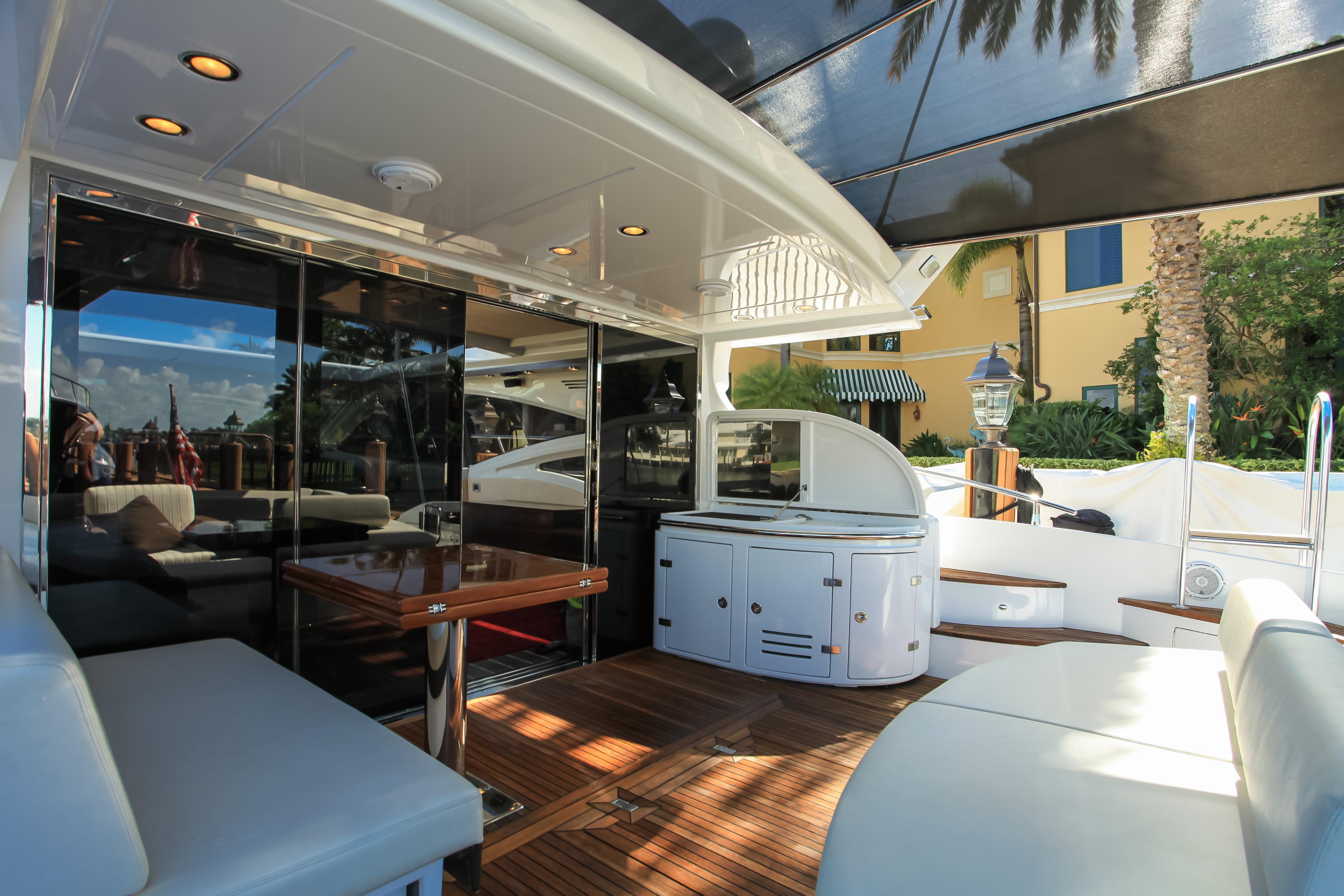 Blackjack is a radically different sportcruiser that breaks the mold with an innovative interior layout and unique hardtop design. A full-beam master stateroom is rare in a boat this size whose highlights include tender garage, joystick engine controls, Dock Master wireless control, sunroof, small crew cabin, washer/dryer, huge cockpit, Custom cockpit shade and sun pad. The captain helm features a state of the art helm chair with a beach seat for two. “Blackjack” is powered by 2 MAN CRM 1360 HP that gives it a cruising speed of 30 knots and reaches a top speed of 36 knots. By far, the Azimut 68 S is the leading model of its kind and will continue to turn heads no matter where it goes.