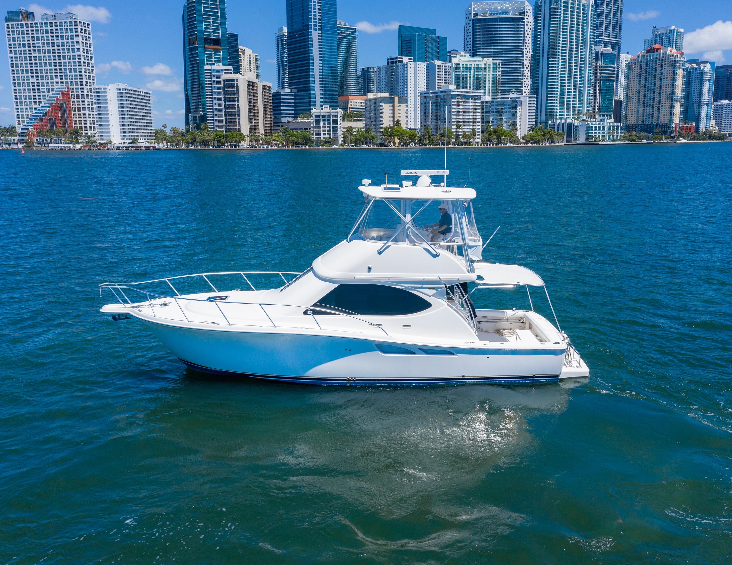 Meticulously maintained and extremely clean, this convertible/sportfish was custom designed to make her an ideal vessel for fishing, diving, cruising & overnighting. Key features include her relatively shallow draft (3’6”), excellent cruising speed and fuel efficiency, expansive swim platform with large custom dive ladder, cockpit sunshade, fully “glassed” fly-bridge and an abundance of storage – both inside (including a custom salon banquet) and out.