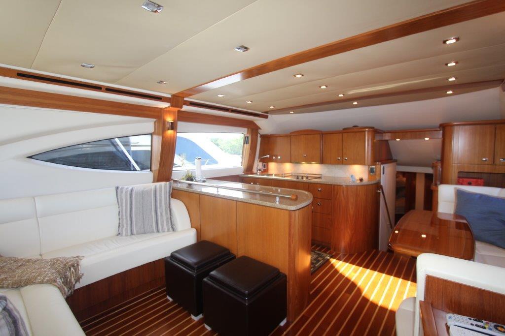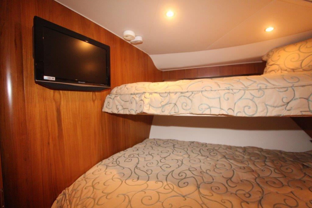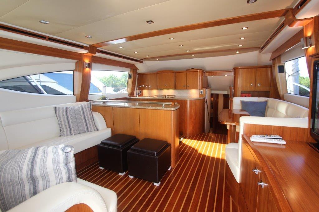 The 4800 is fishing-capable and cruiser-viable from its proud bow and sheerline to its roomy and well-equipped cockpit. The wide-open design of the cockpit features aft-facing mezzanine seating that’s a luxury on a boat this size. Tiara engineering makes the 4800 Convertible a seaworthy, dry and stealthy-quiet ride to wherever the fish are. Tiara craftsmanship is beautifully evident in the impeccable glass work, as well as the joinery and surfaces throughout the interior. If you’re looking for a serious sportfishing yacht, take a serious look at the Tiara 4800 Convertible