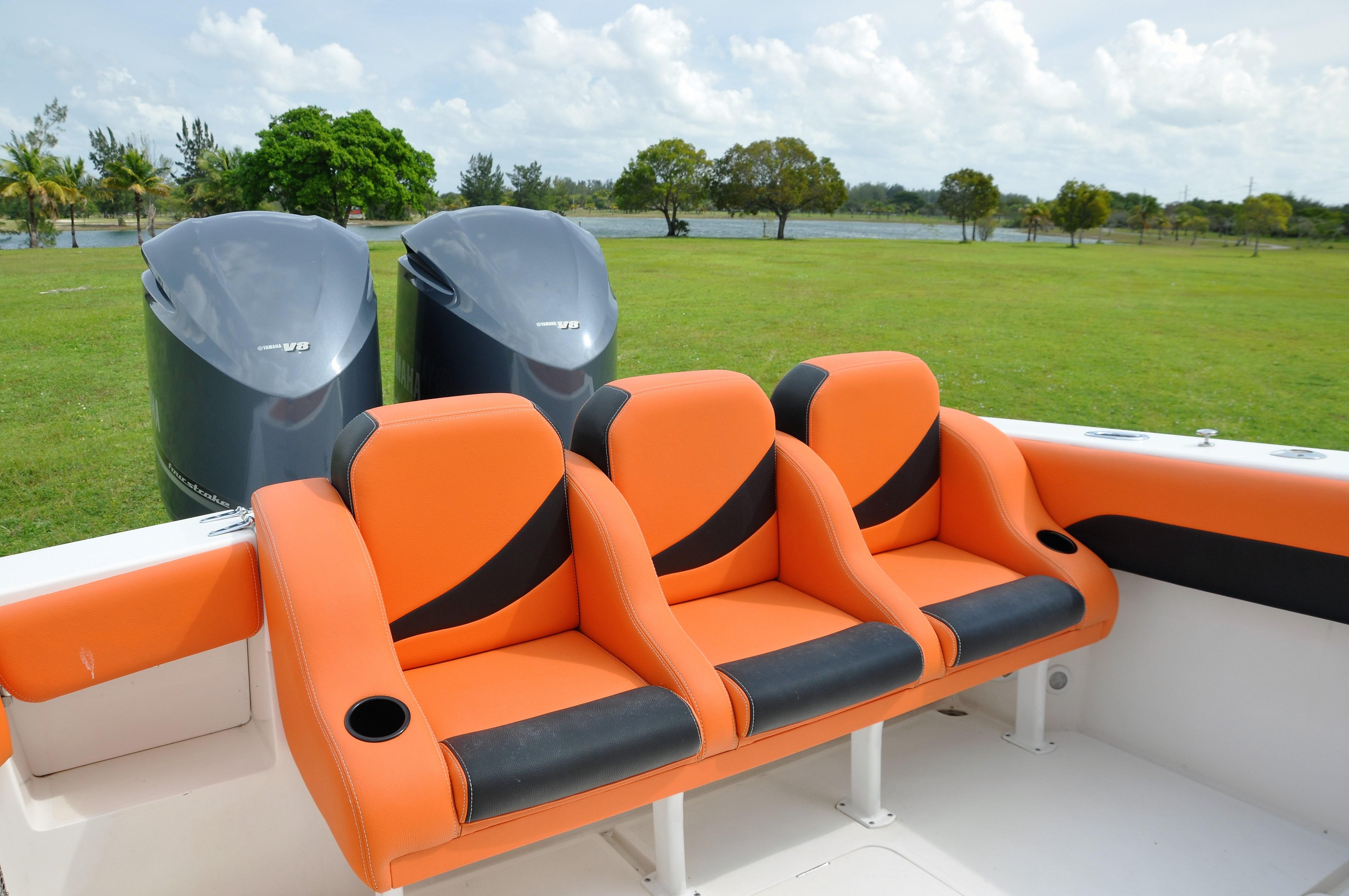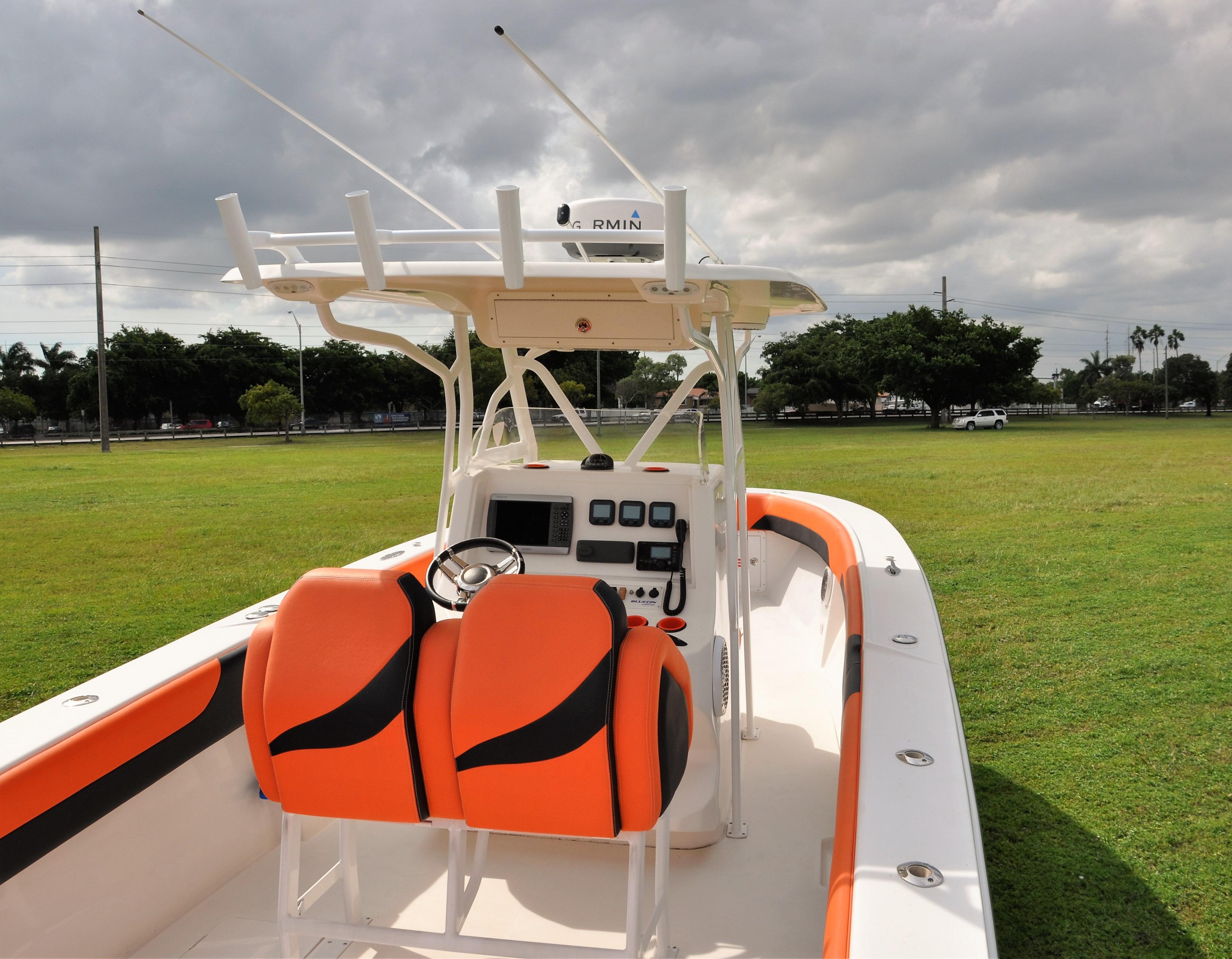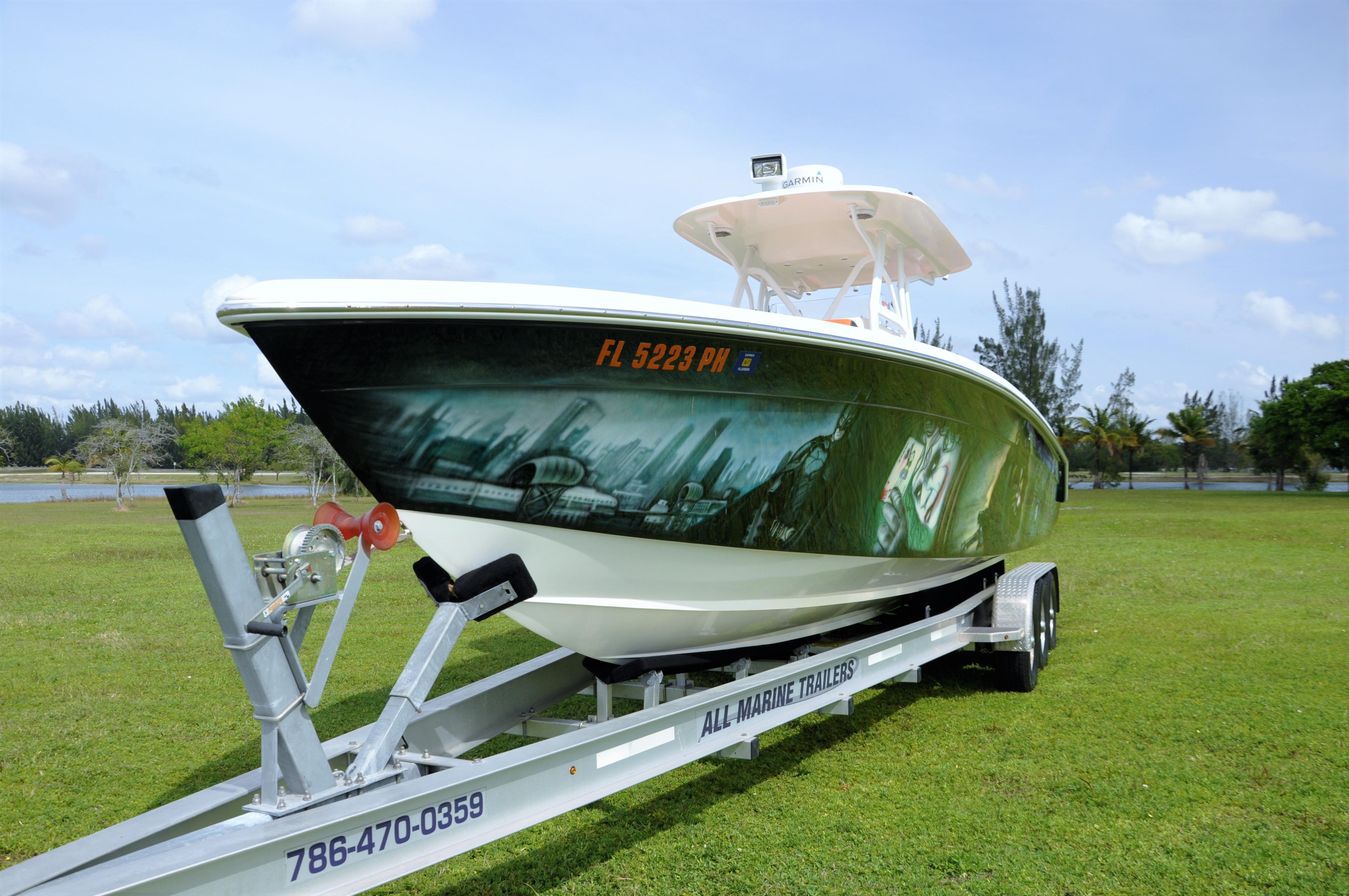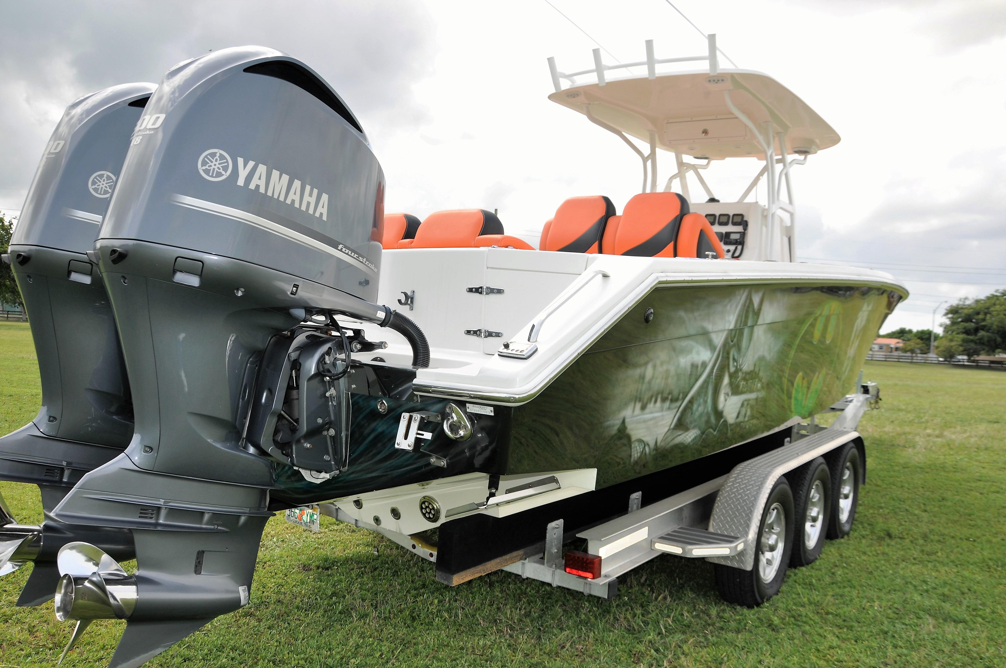 This 2012 33’ Blue fin looks amazing with a 3D paint job beautifully done , hard top, A 10 speaker Stereo system Featuring a Clarion head unit, JL audio components, and Amps and massive Rockford Fosgate Sub speakers. Other electronics include a 12" Garmin GPS, VHF, Power Inverter and inboard Battery Charger. The boat is equipped with plenty of Rod holders, Cup holders. comfortable cushions, powder coat, overhead, and deck LED lighting, spot, and searchlight. Powered by Twin Yamaha 300’s with only 105 hours. It’s a must-see.