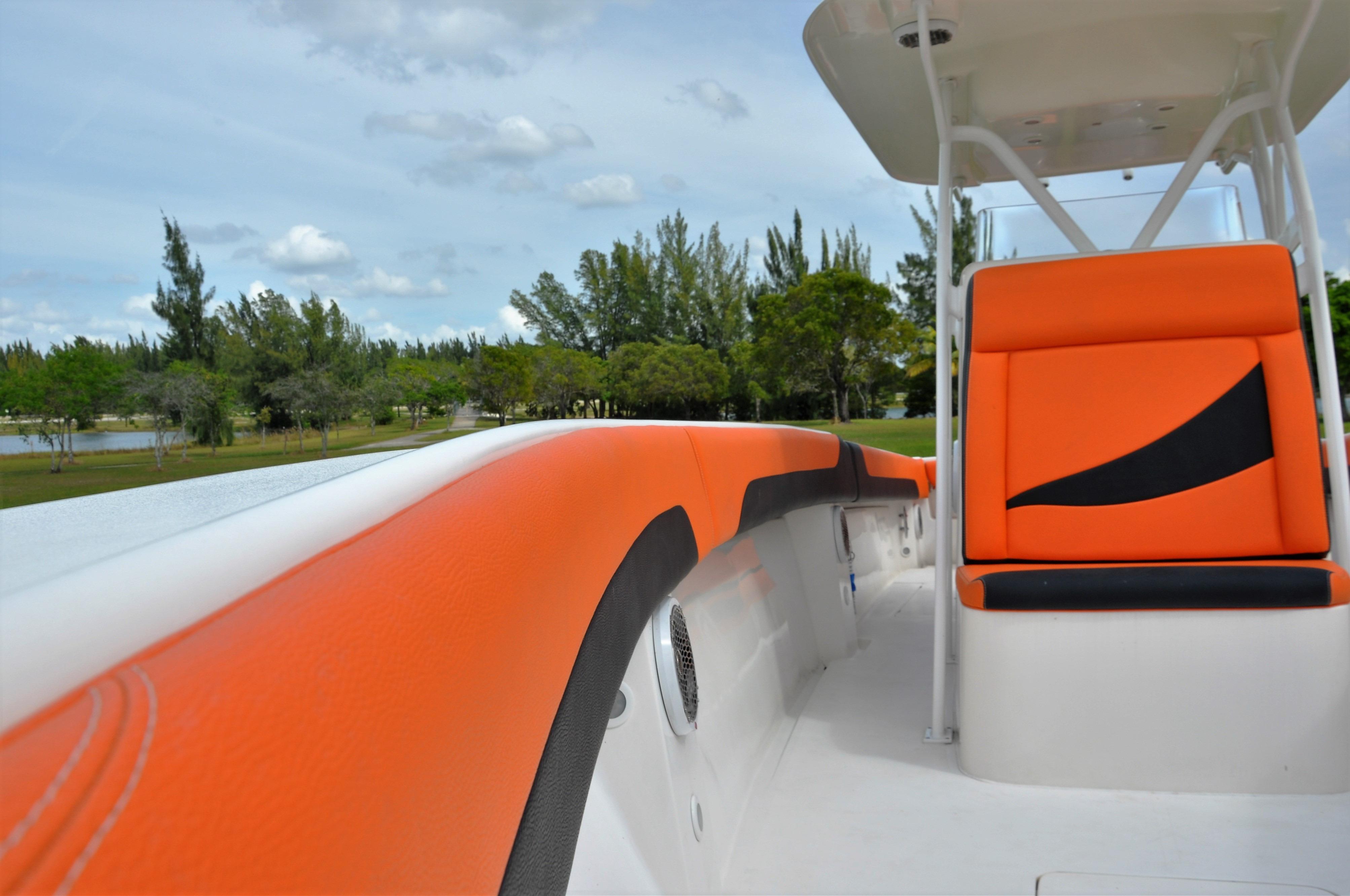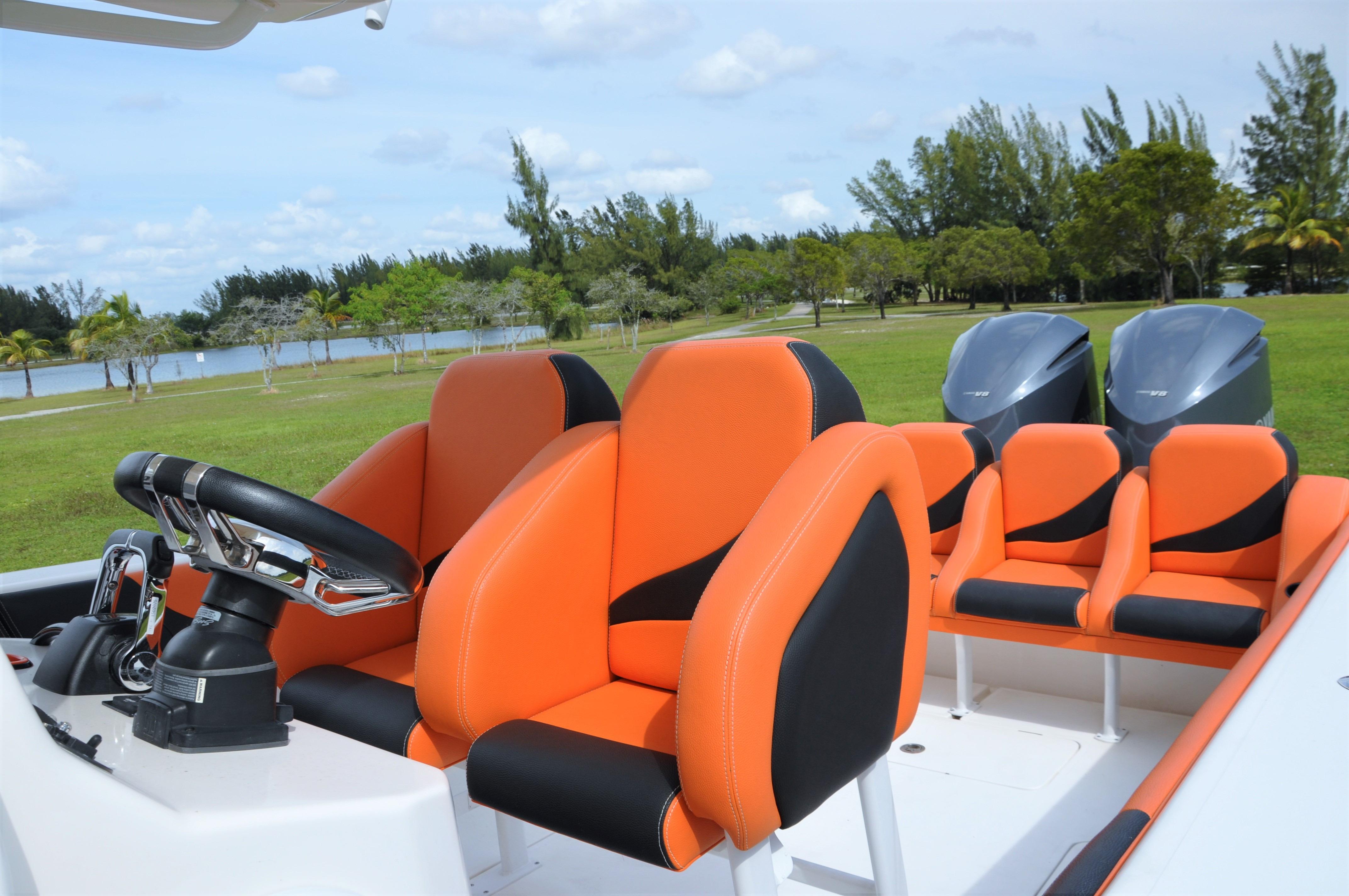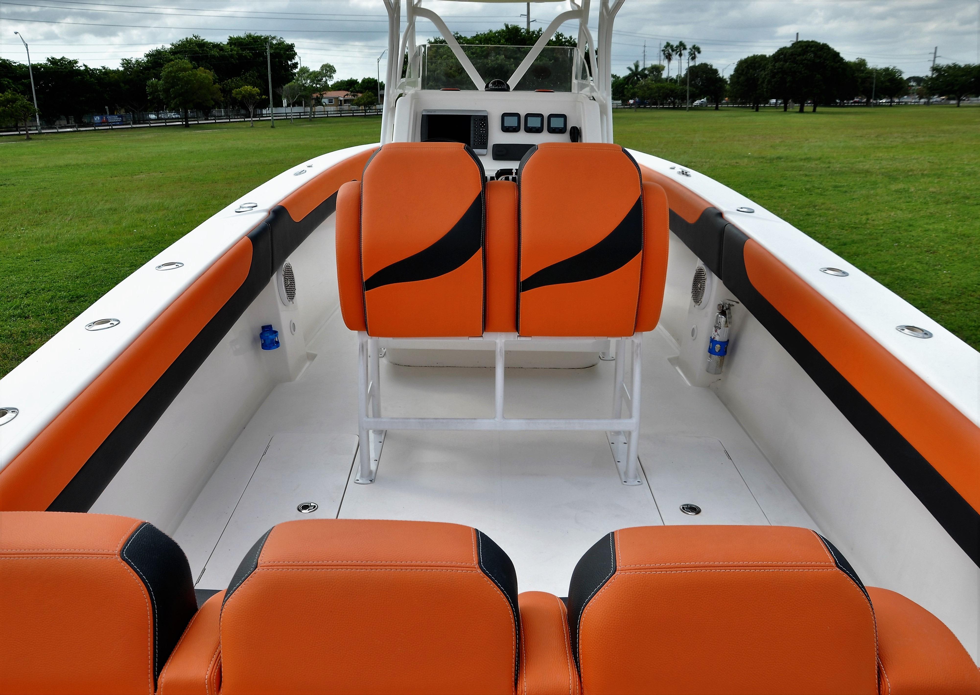 This 2012 33’ Blue fin looks amazing with a 3D paint job beautifully done , hard top, A 10 speaker Stereo system Featuring a Clarion head unit, JL audio components, and Amps and massive Rockford Fosgate Sub speakers. Other electronics include a 12" Garmin GPS, VHF, Power Inverter and inboard Battery Charger. The boat is equipped with plenty of Rod holders, Cup holders. comfortable cushions, powder coat, overhead, and deck LED lighting, spot, and searchlight. Powered by Twin Yamaha 300’s with only 105 hours. It’s a must-see.