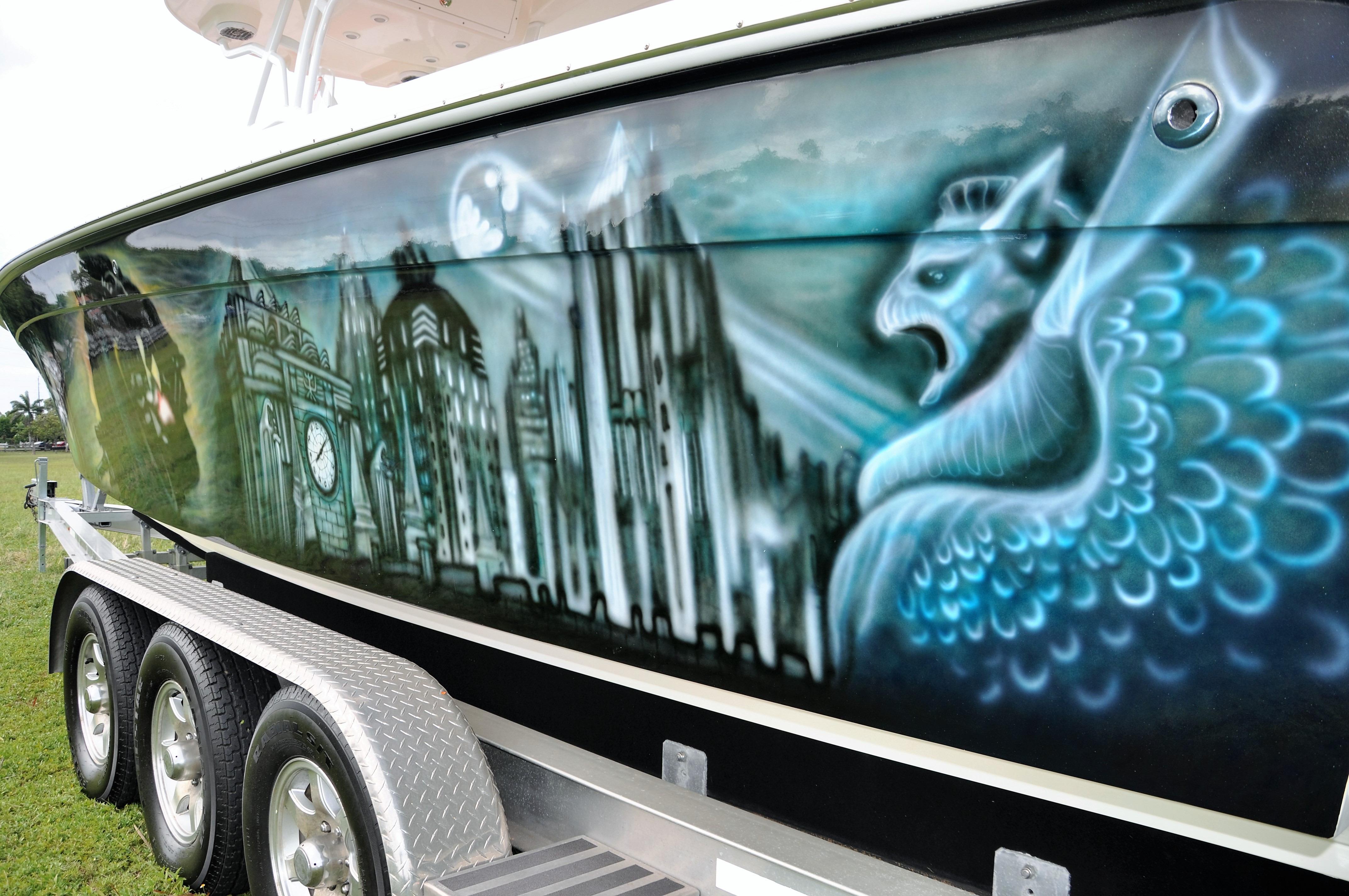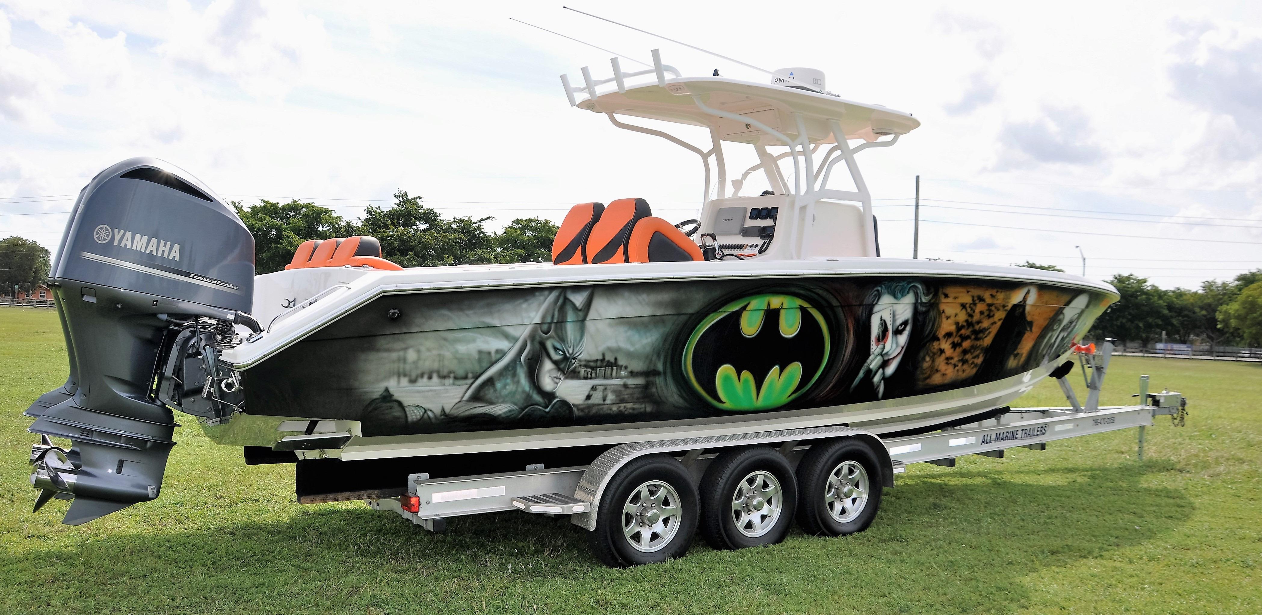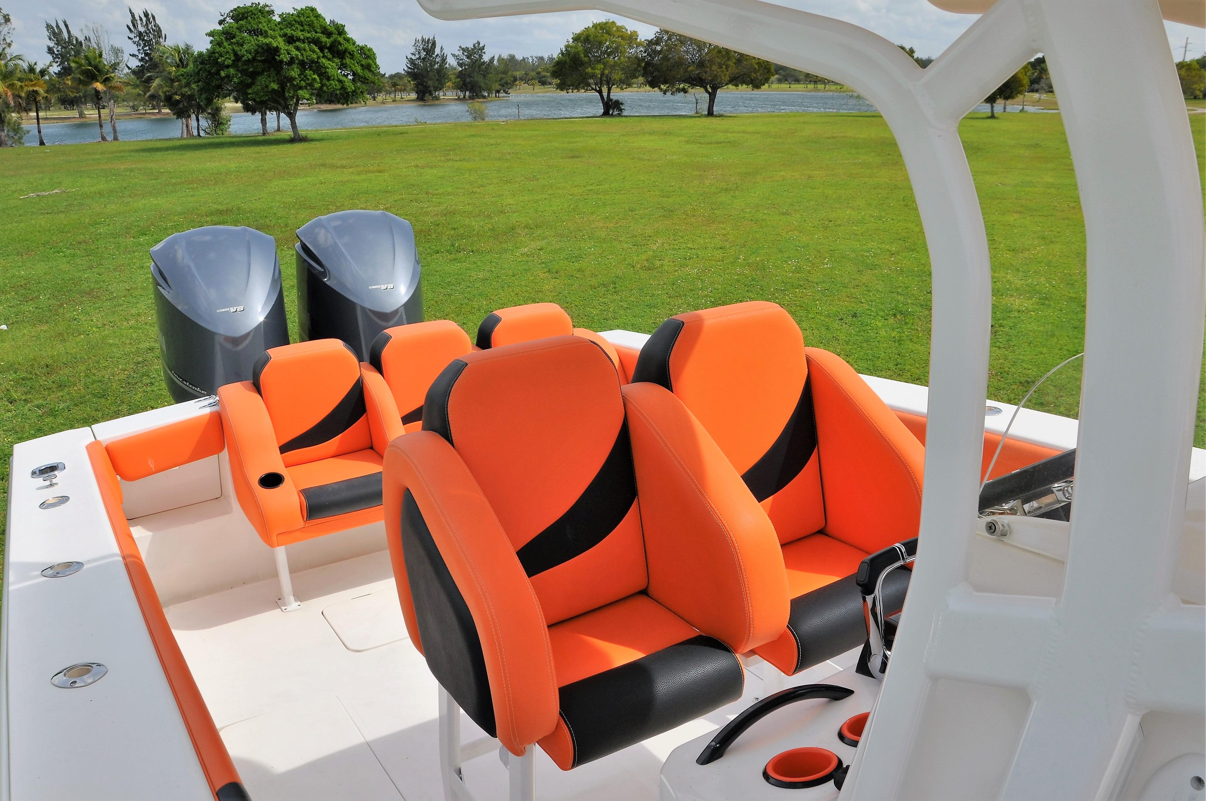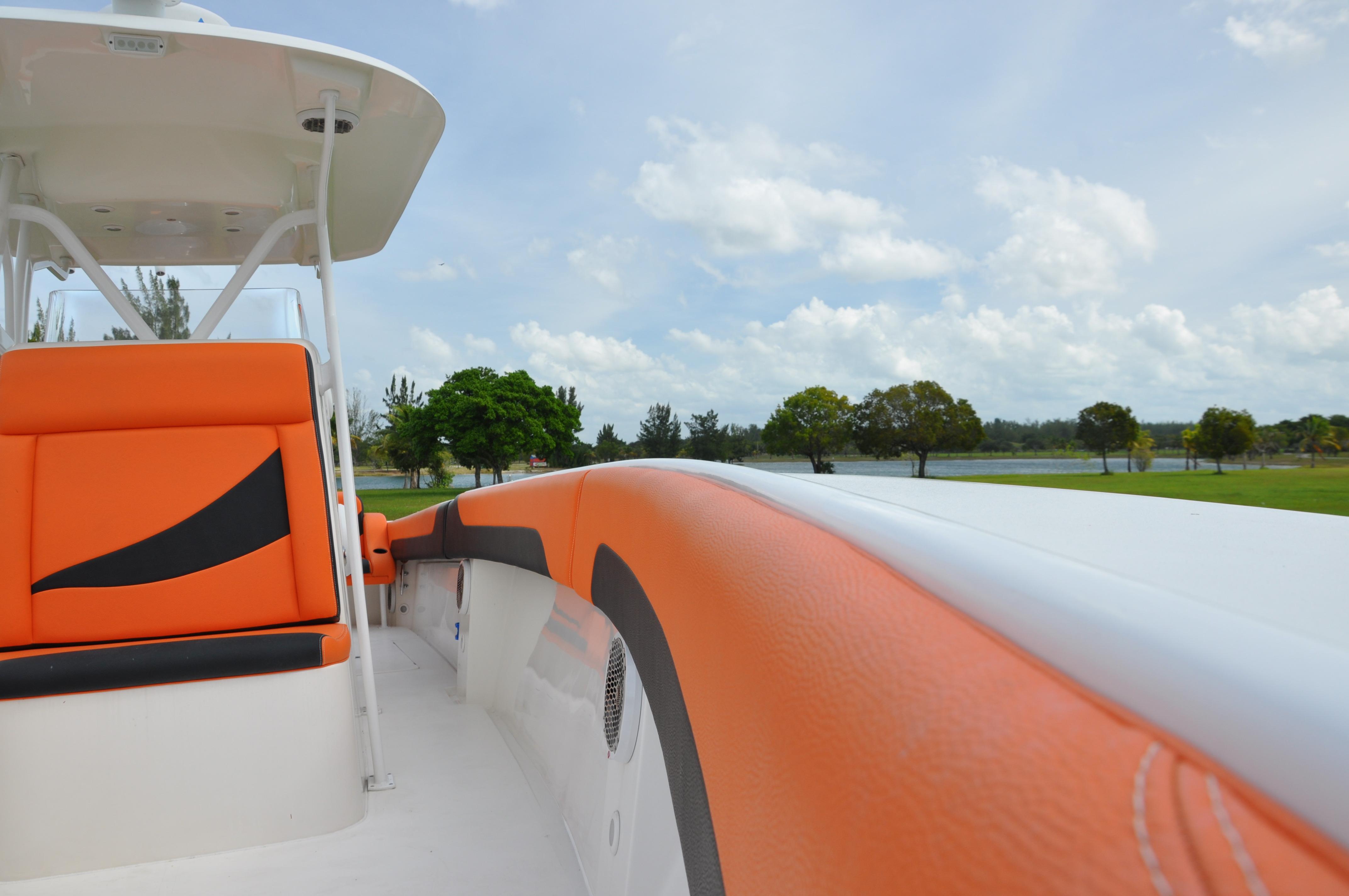 This 2012 33’ Blue fin looks amazing with a 3D paint job beautifully done , hard top, A 10 speaker Stereo system Featuring a Clarion head unit, JL audio components, and Amps and massive Rockford Fosgate Sub speakers. Other electronics include a 12" Garmin GPS, VHF, Power Inverter and inboard Battery Charger. The boat is equipped with plenty of Rod holders, Cup holders. comfortable cushions, powder coat, overhead, and deck LED lighting, spot, and searchlight. Powered by Twin Yamaha 300’s with only 105 hours. It’s a must-see.