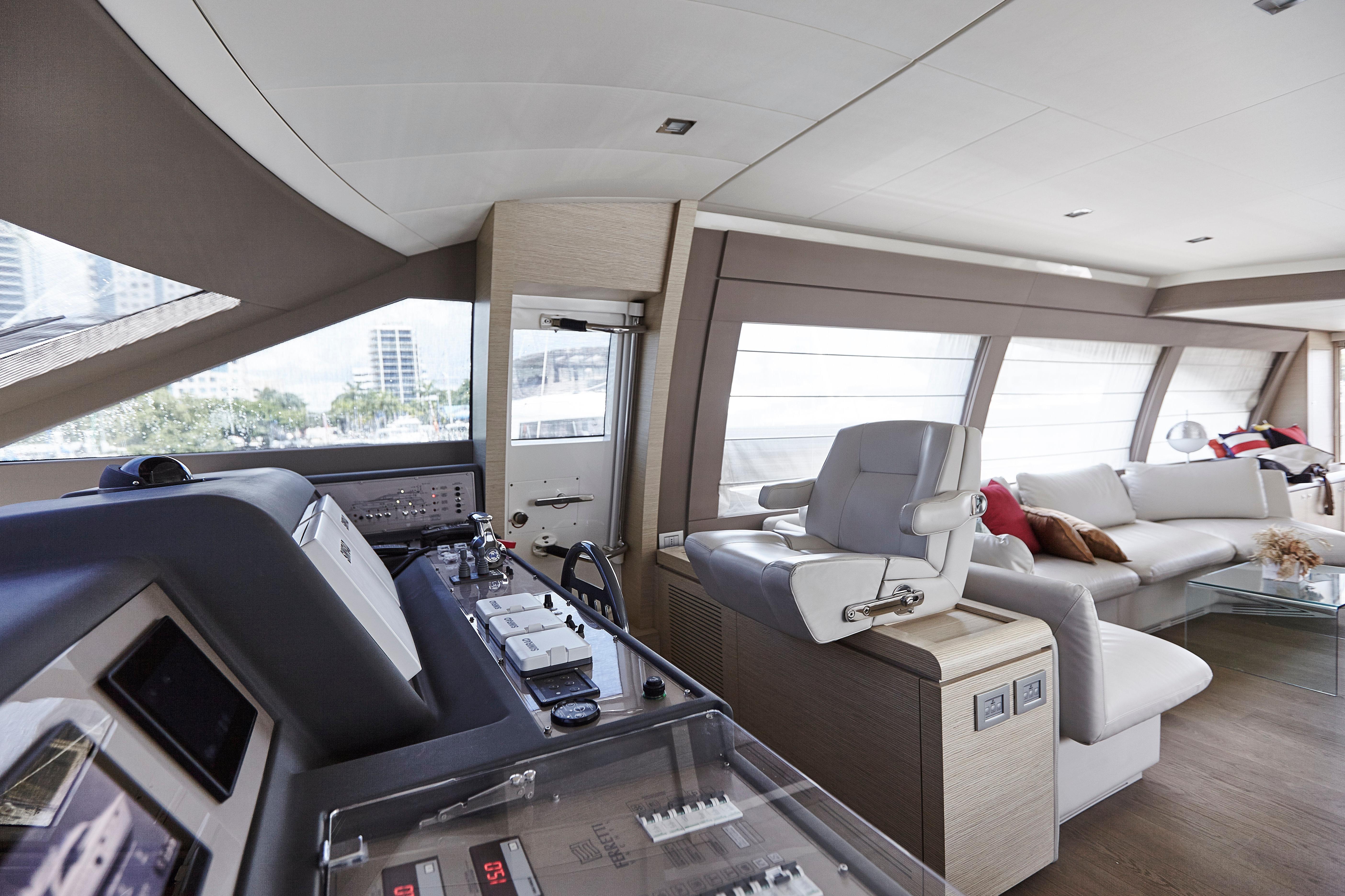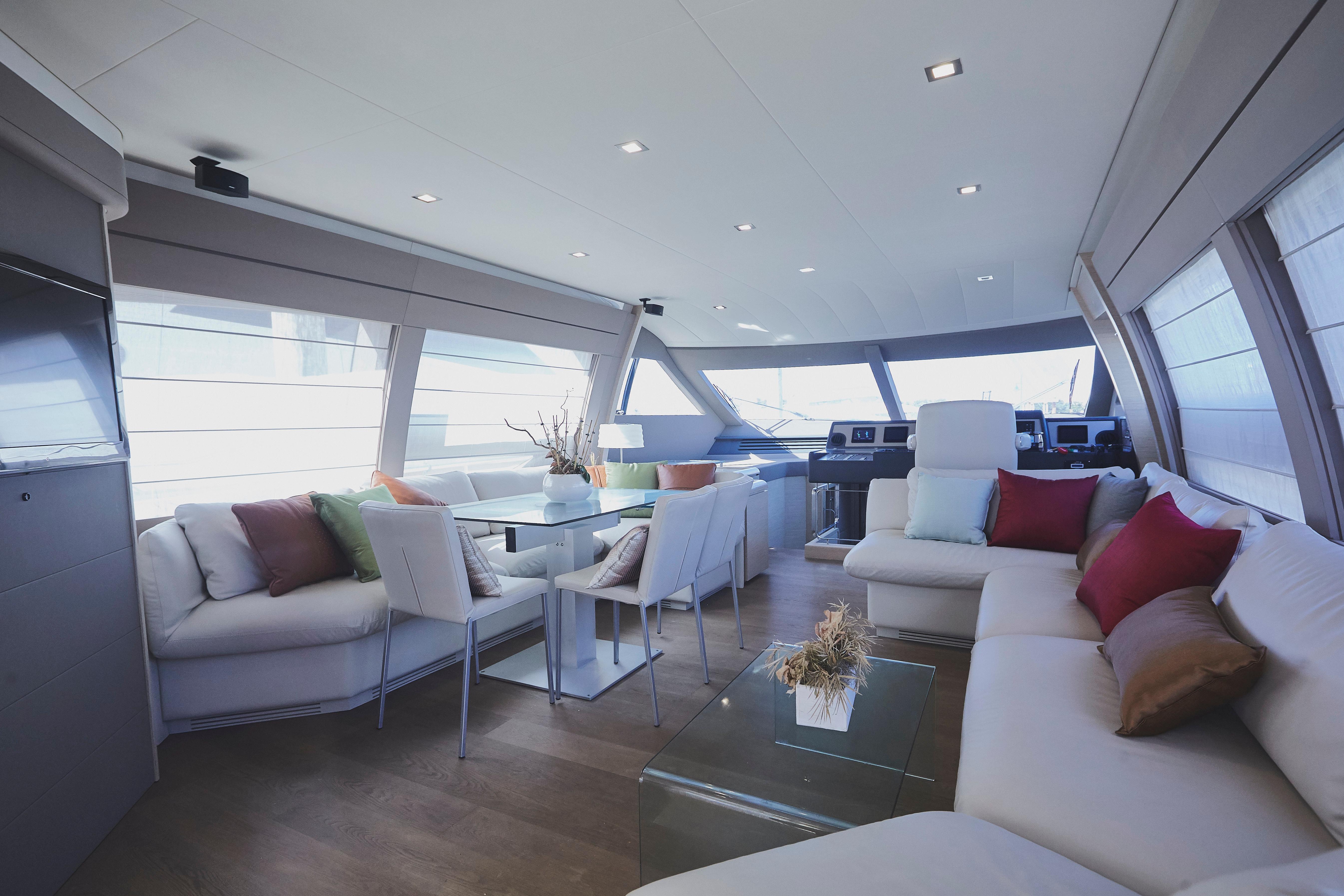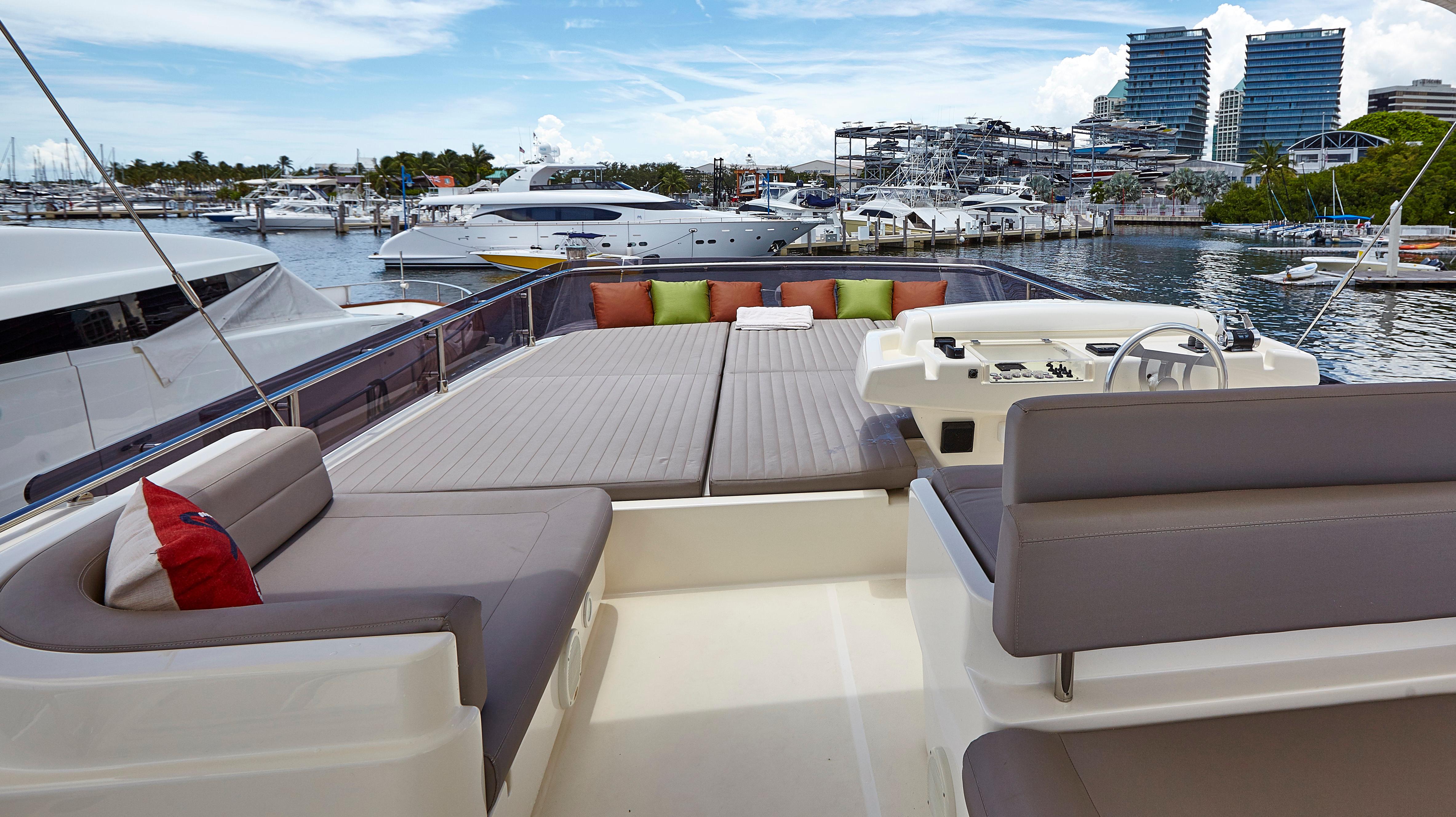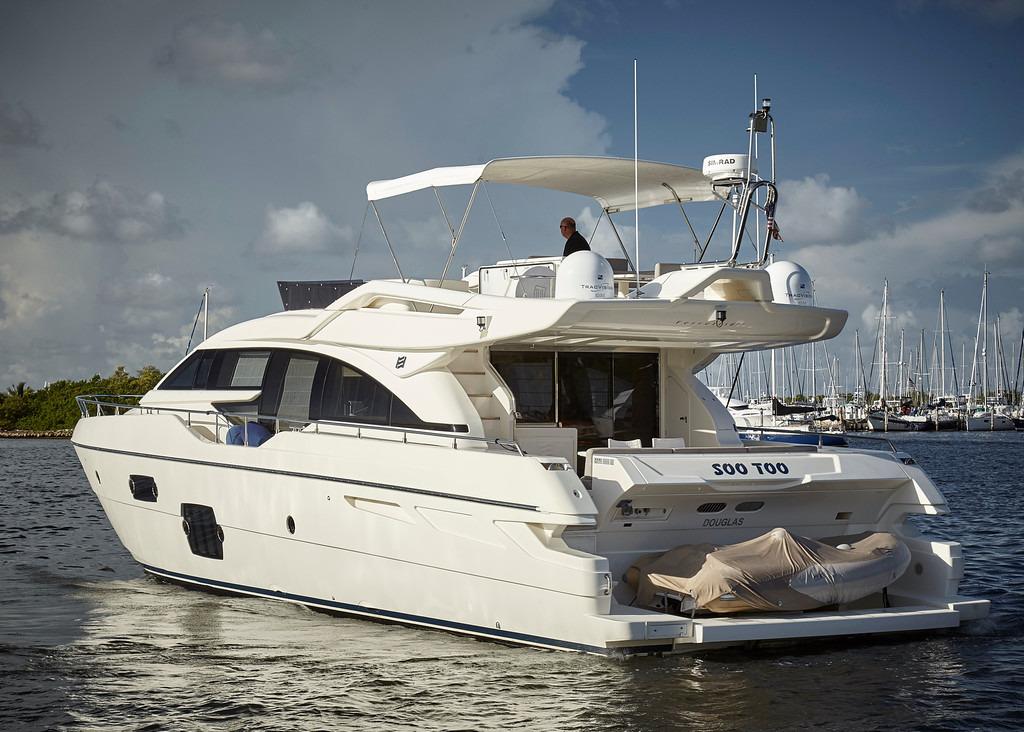 Too Too features the comfort of a four stateroom layout plus crew quarters. It’s spacious galley with an opening to the cockpit, large salon along with a huge flybridge makes it a great yacht for entertaining. The interior finish in light oakwood and neutral fabrics gives her an overall look of modern elegance.