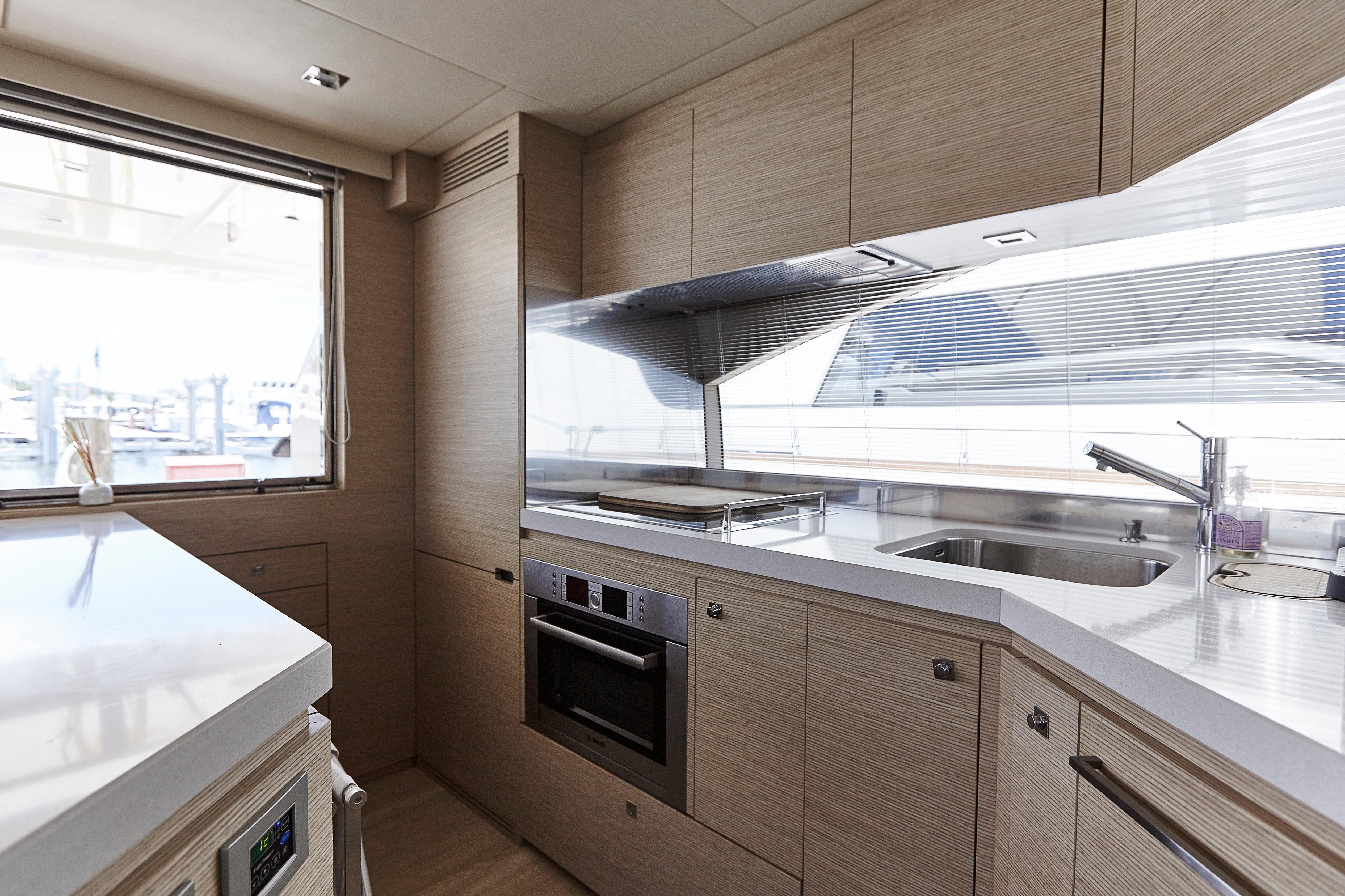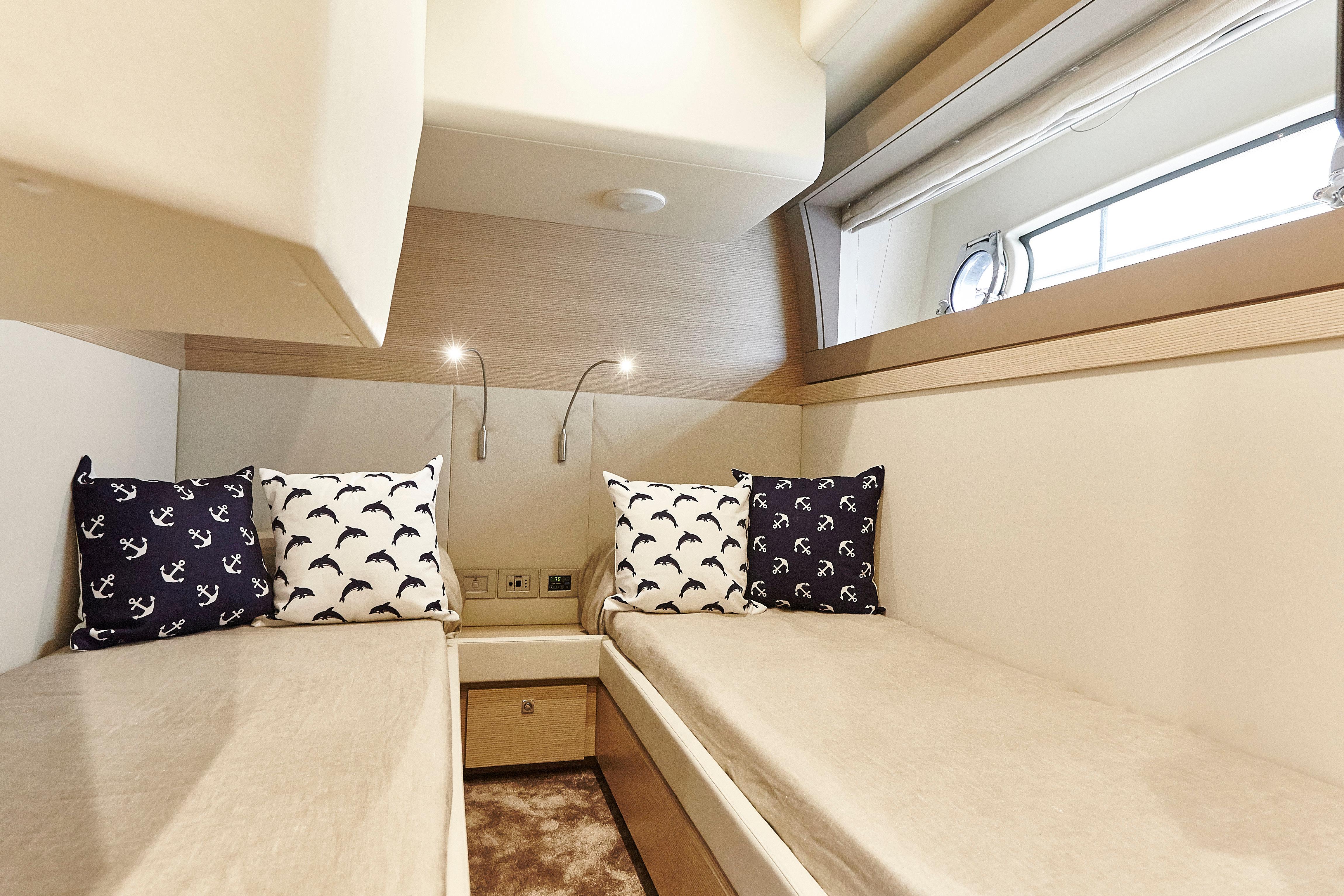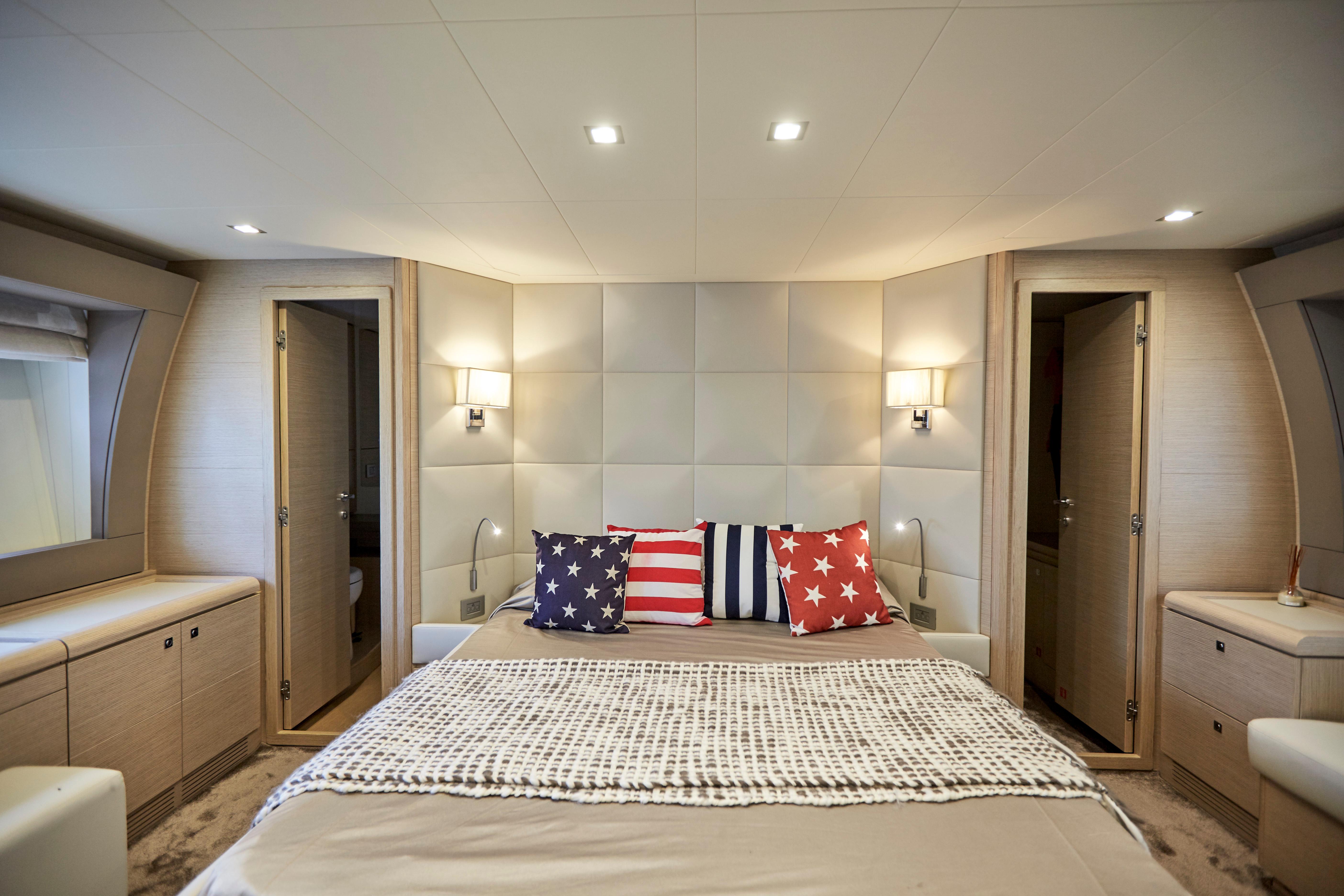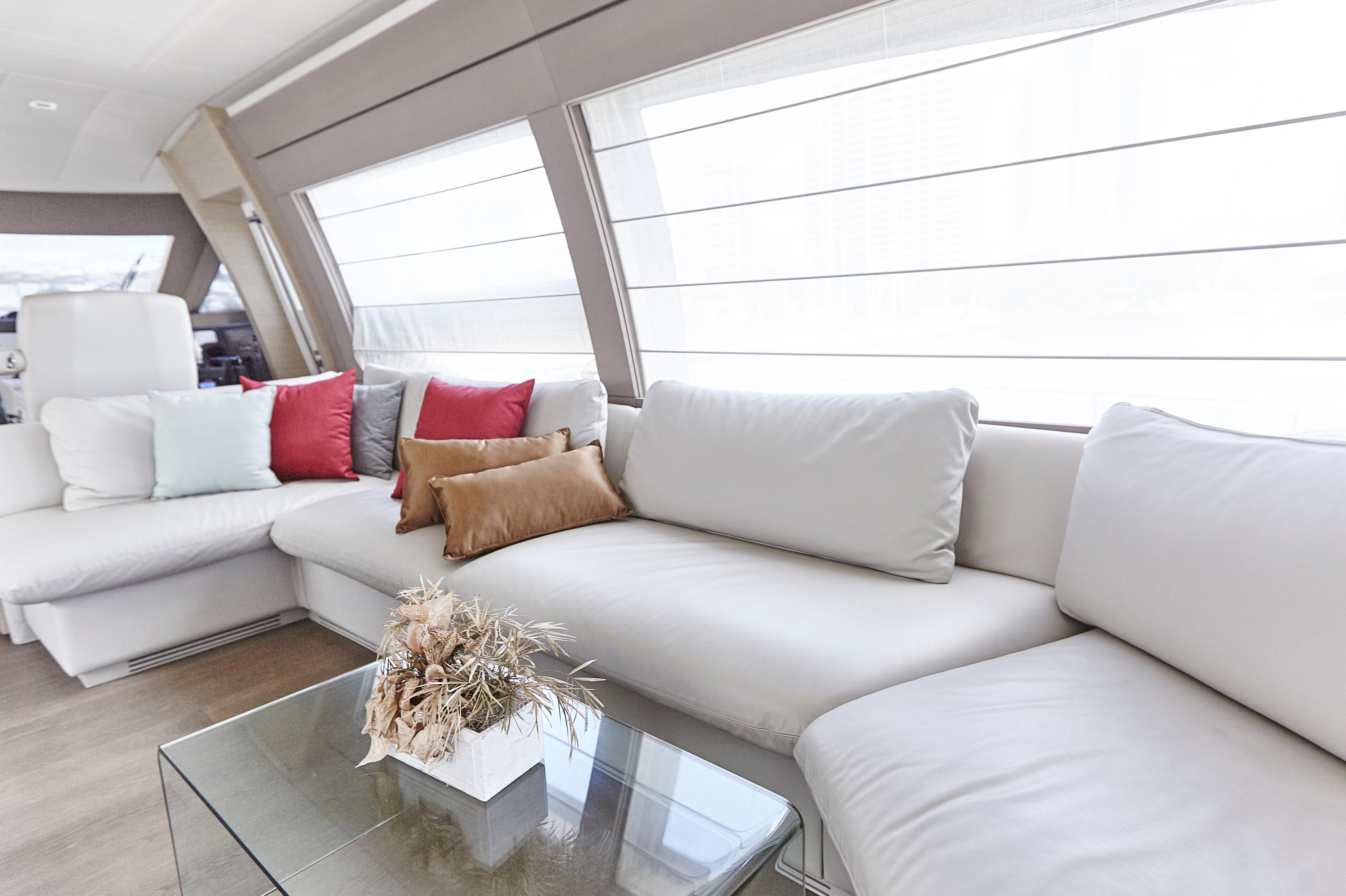Too Too features the comfort of a four stateroom layout plus crew quarters. It’s spacious galley with an opening to the cockpit, large salon along with a huge flybridge makes it a great yacht for entertaining. The interior finish in light oakwood and neutral fabrics gives her an overall look of modern elegance.