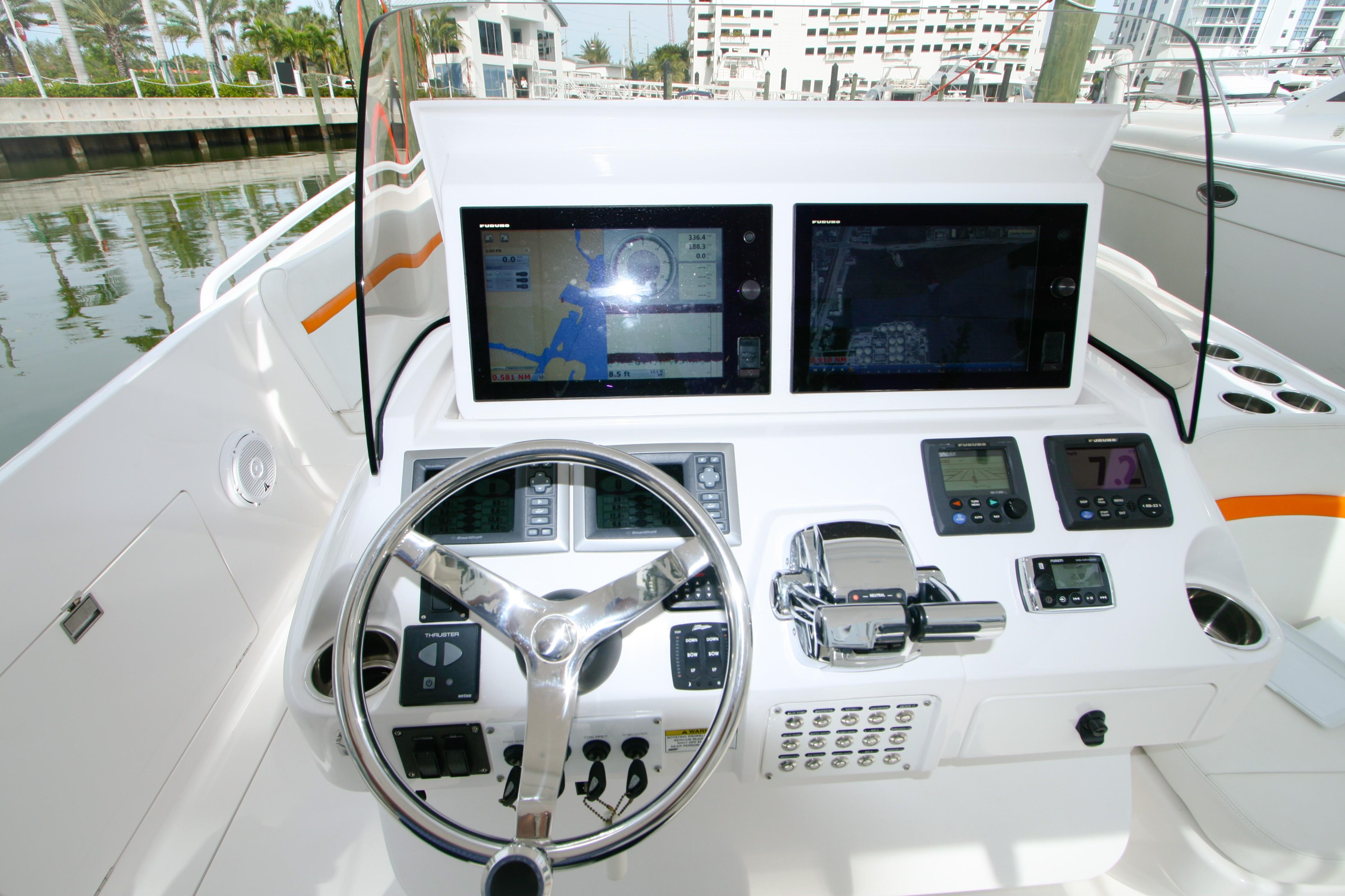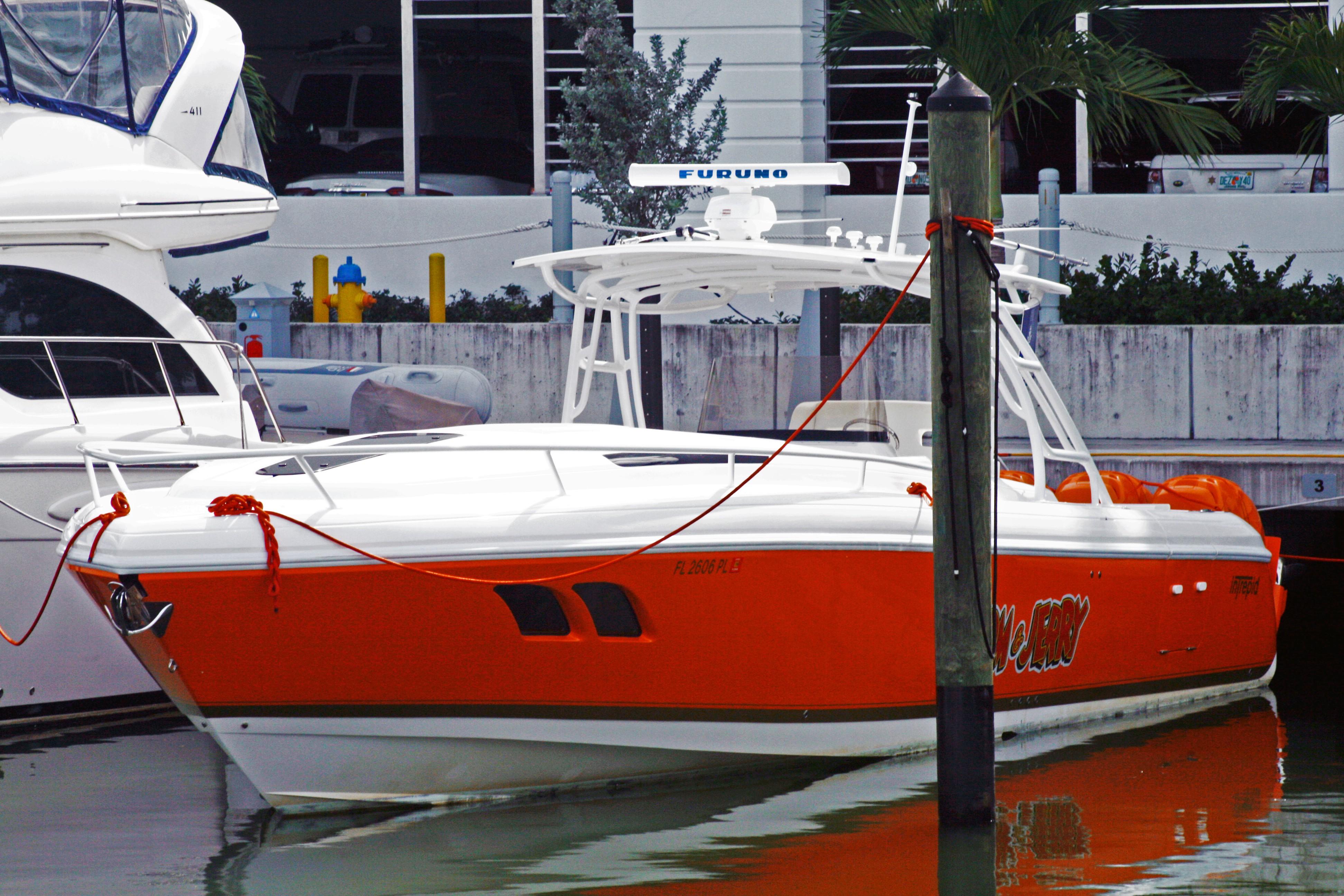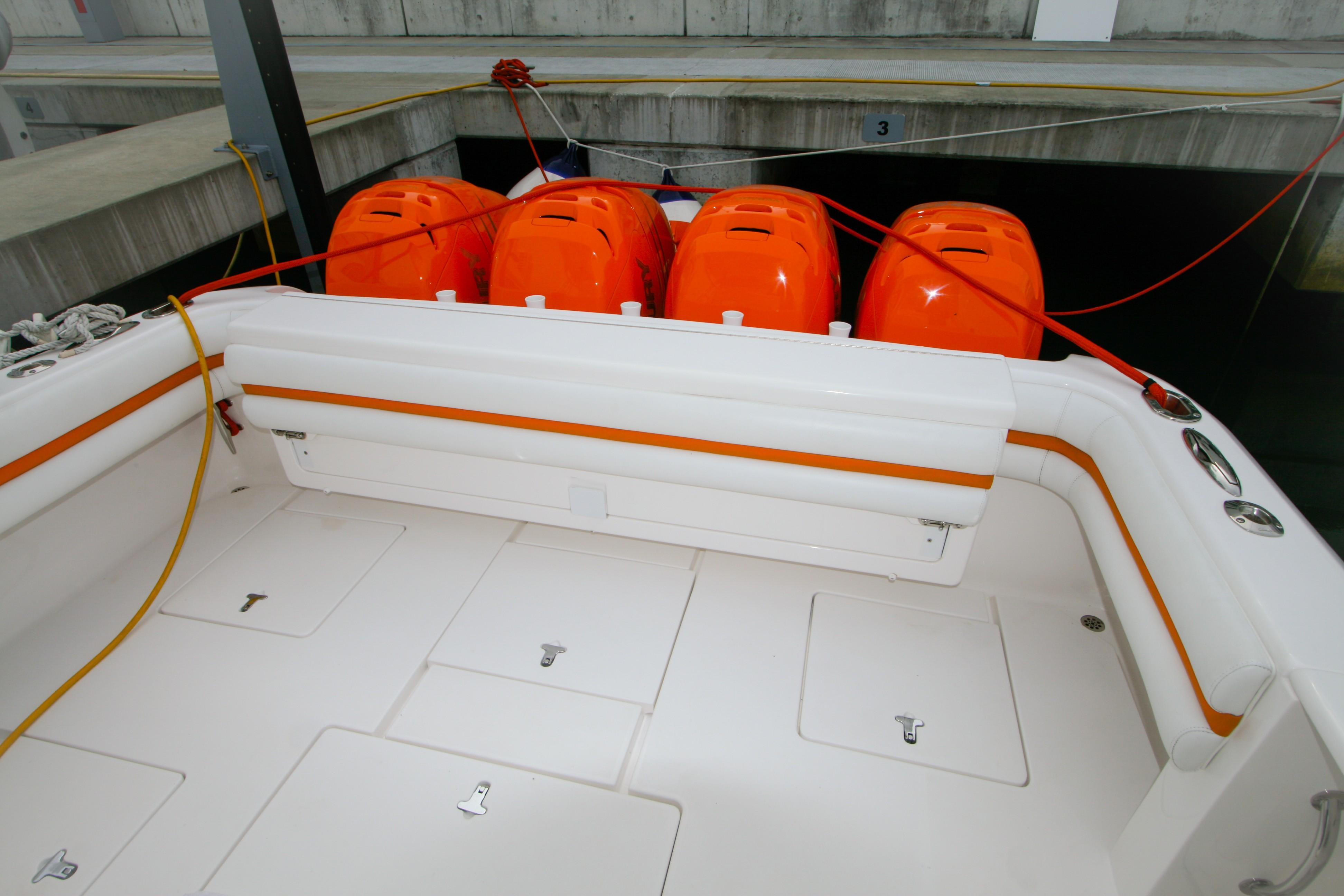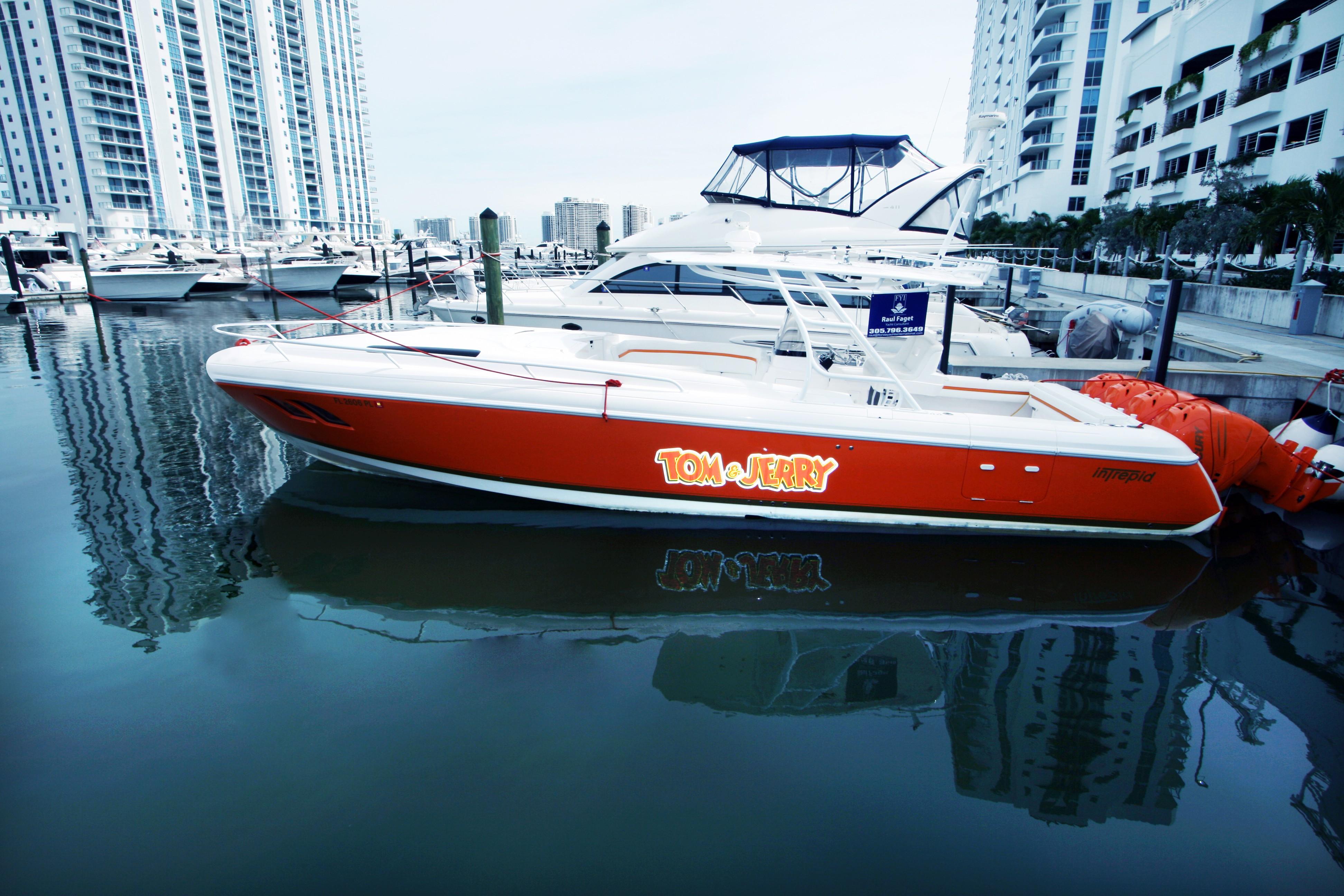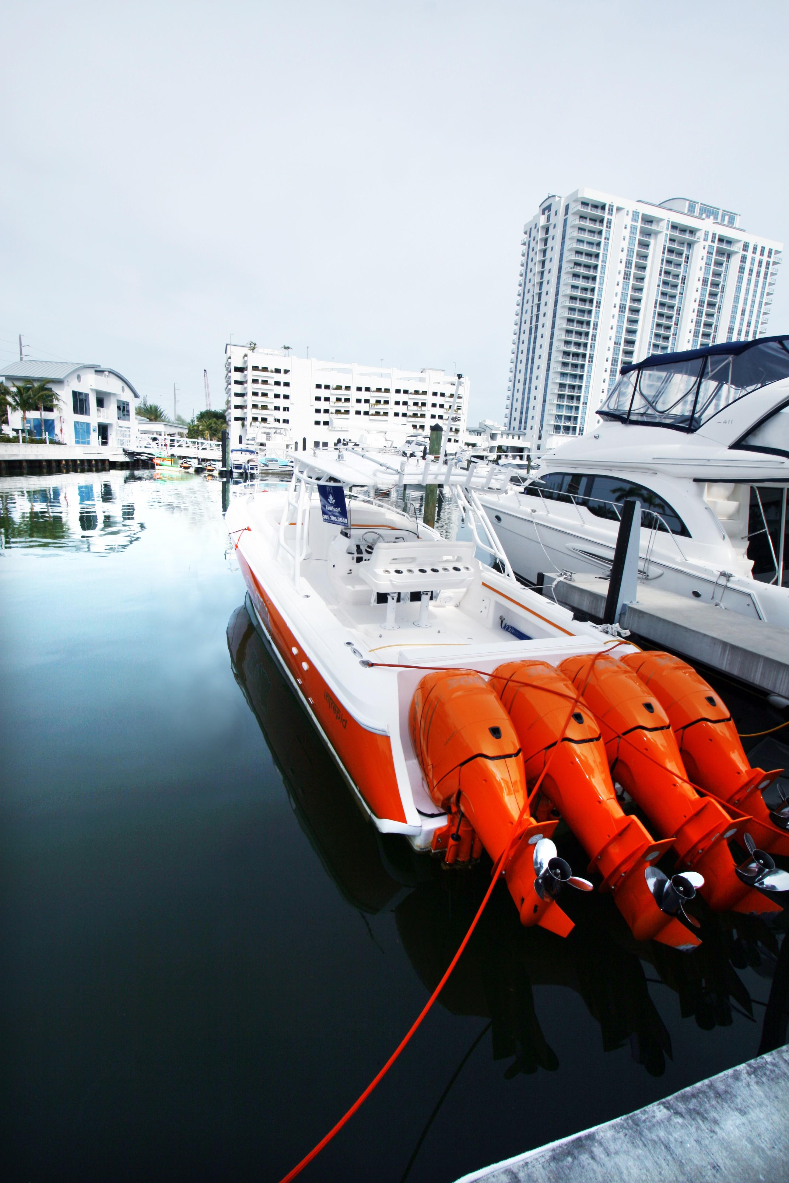 2013 Intrepid 400 Cuddy. Custom built with quad 300 H.P. Mercury Verado’s, dive door, air conditioning, generator, arch top w/fiberglass hard top, great electronics package and more!