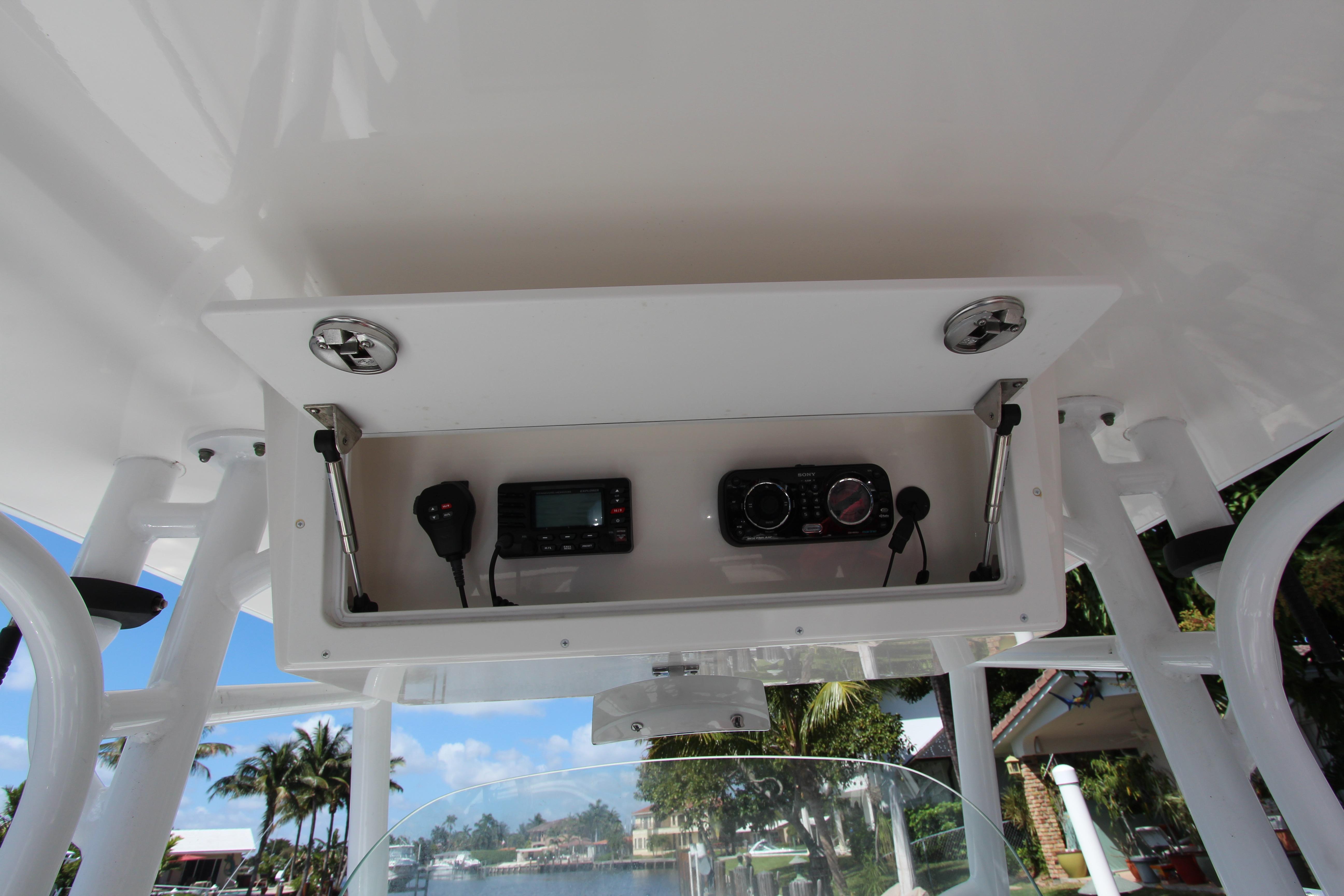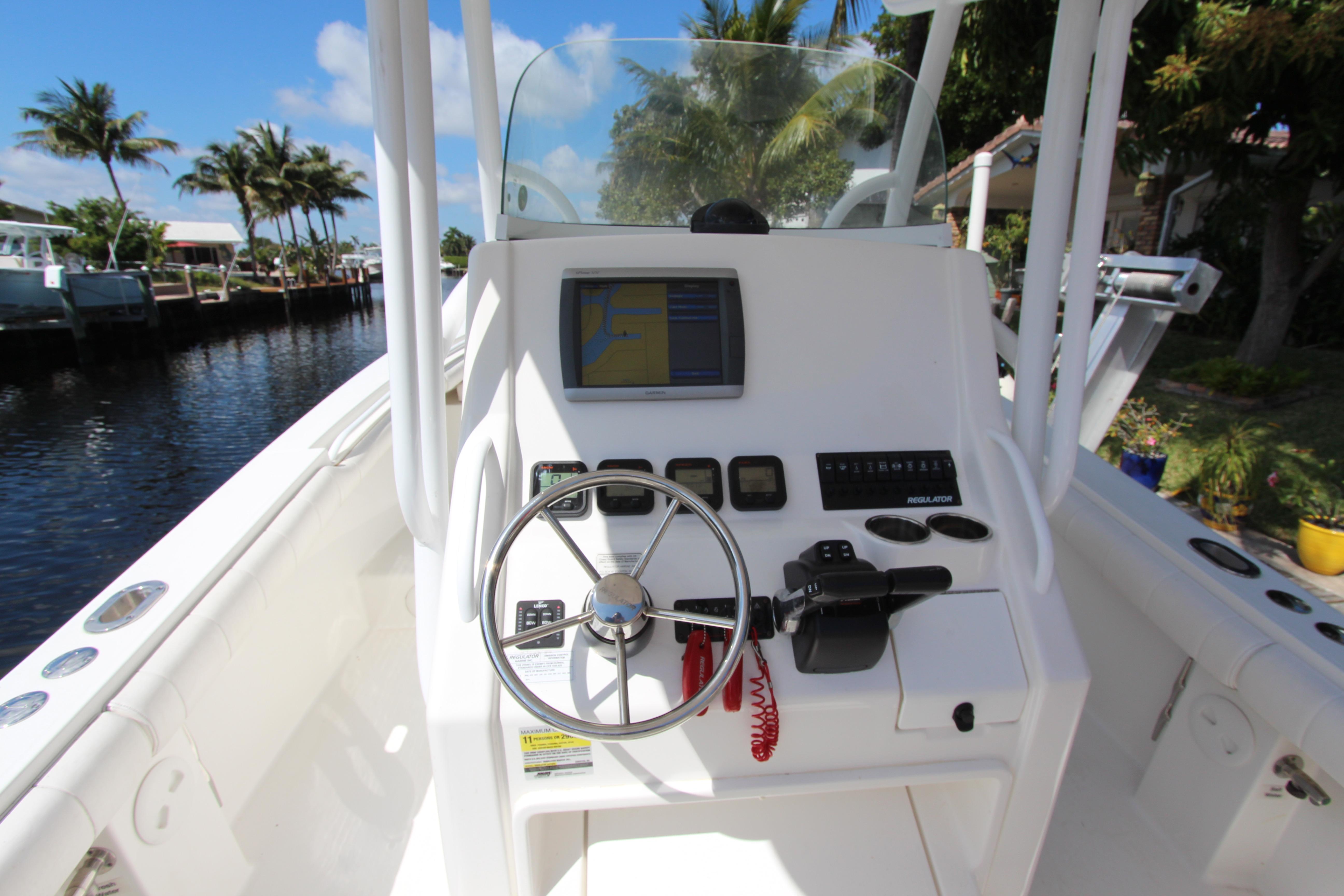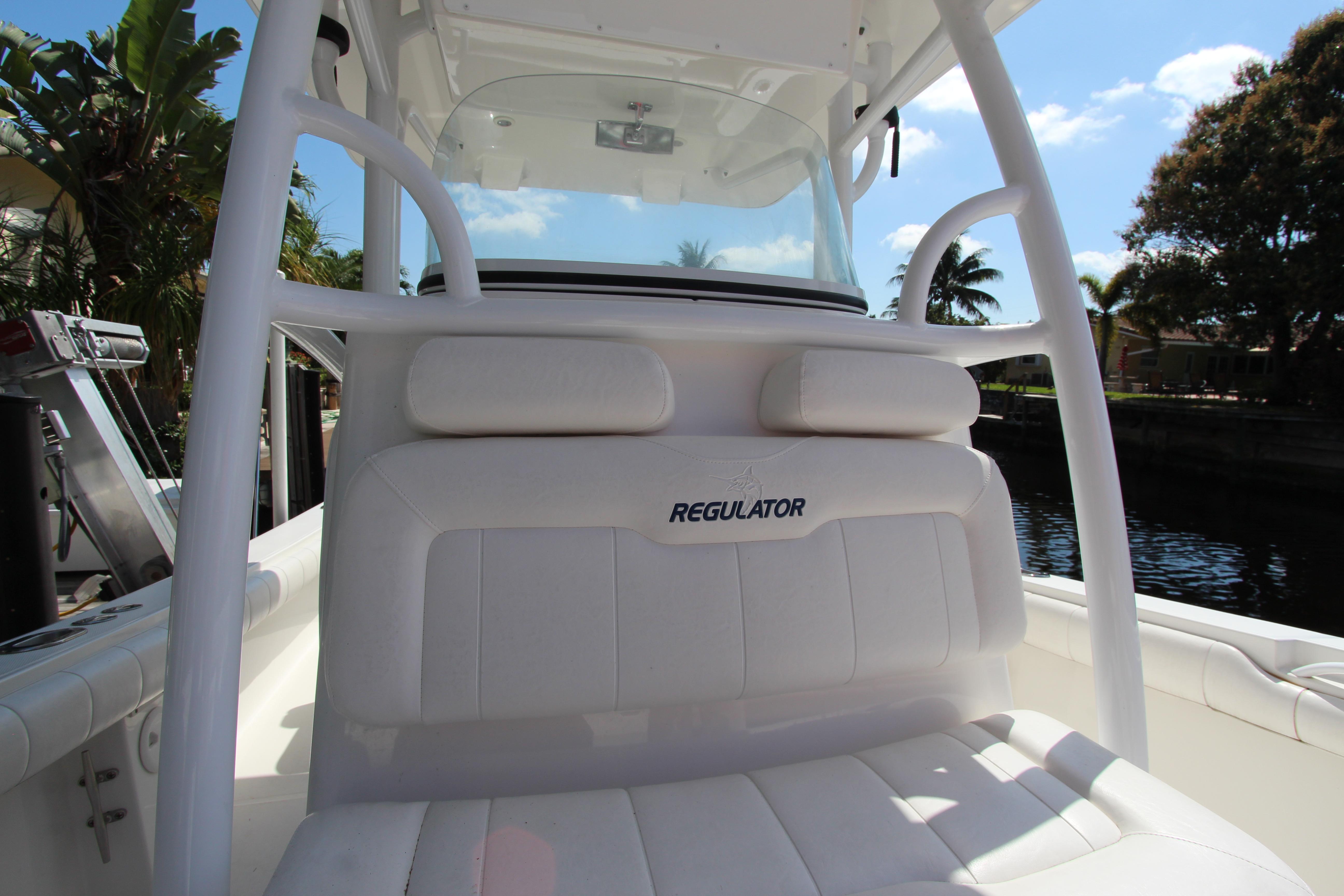The Regulator 24 FS is a unique center console offering fishing functionality and family appeal. The standard 5’8" enclosed head compartment with standard portable marine toilet or optional factory-installed upgrade with holding tank and overboard/dockside discharge is a feature that’s appreciated by family and crew alike. Padded forward seating area is ideal for relaxing in the sun or bait rigging in comfort.