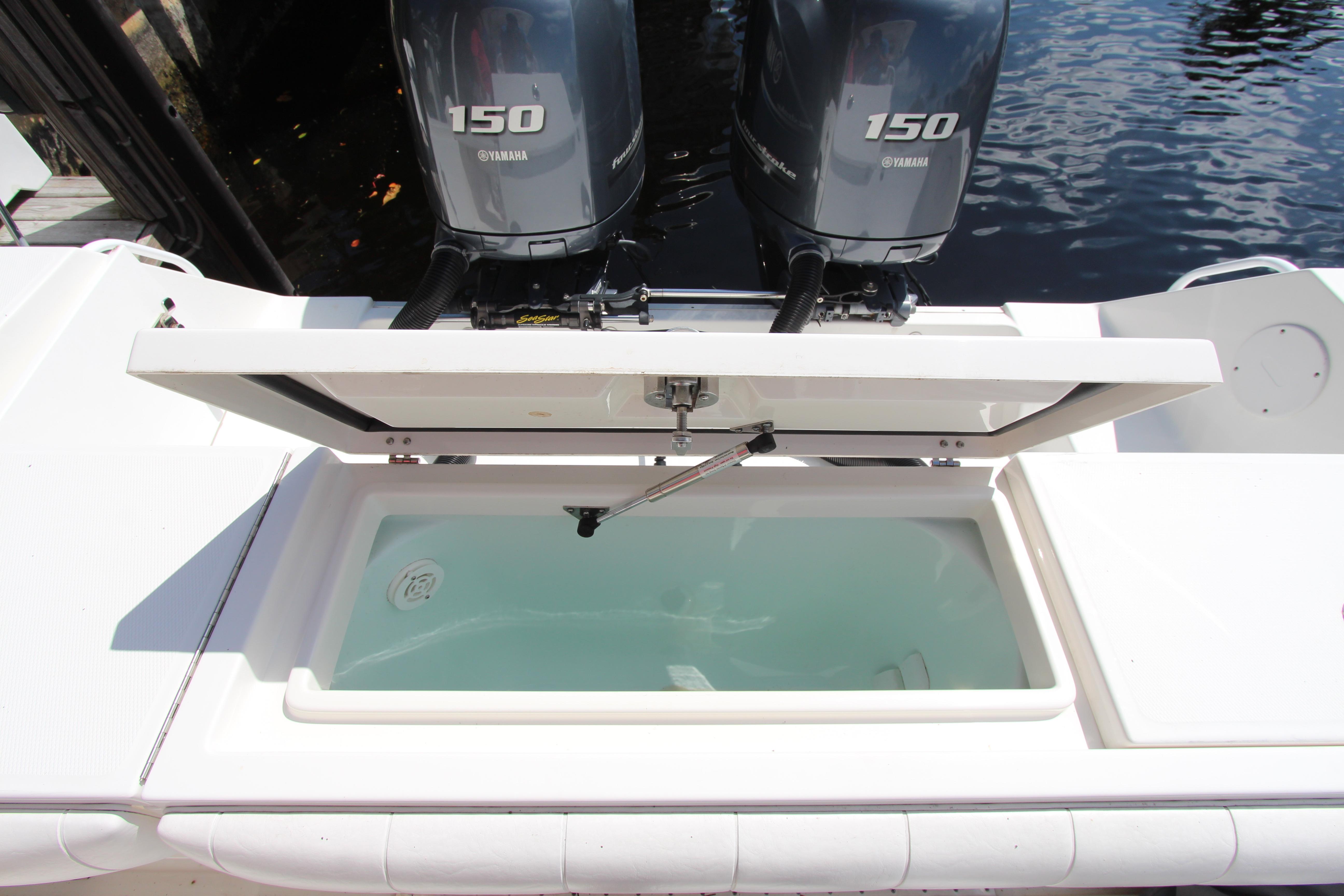 True to its sportfishing heritage, the 24′ sports the legendary Regulator ride that is as soft and dry as it is reliable. Reinforced with Regulator’s exclusive Fiberglass Grillage System, the 24′ can take you to your favorite destination, whether it’s the canyons 80 miles offshore or that hurricane hole for a relaxing afternoon with the family. For the serious angler, the 24′ is loaded with fishing features like a 385-quart forward center locking fish box with six-rod storage, 61-quart transom bait box and 25-gallon recirculating livewell. The padded leaning post with four rocket launchers and a fiberglass electronics panel for flush mounting applications top-off the extraordinary standard features. Other options for the dedicated angler include a custom tackle center located behind the helm seat; SuperSport leaning post with flip-up cushion with convenient tackle storage, nine rocket launchers, room underneath for a 94-quart cooler; 16′ Lee Sidewinder outriggers with laydown mounts; and five-rod rocket launcher available on with the fiberglass T-top model.