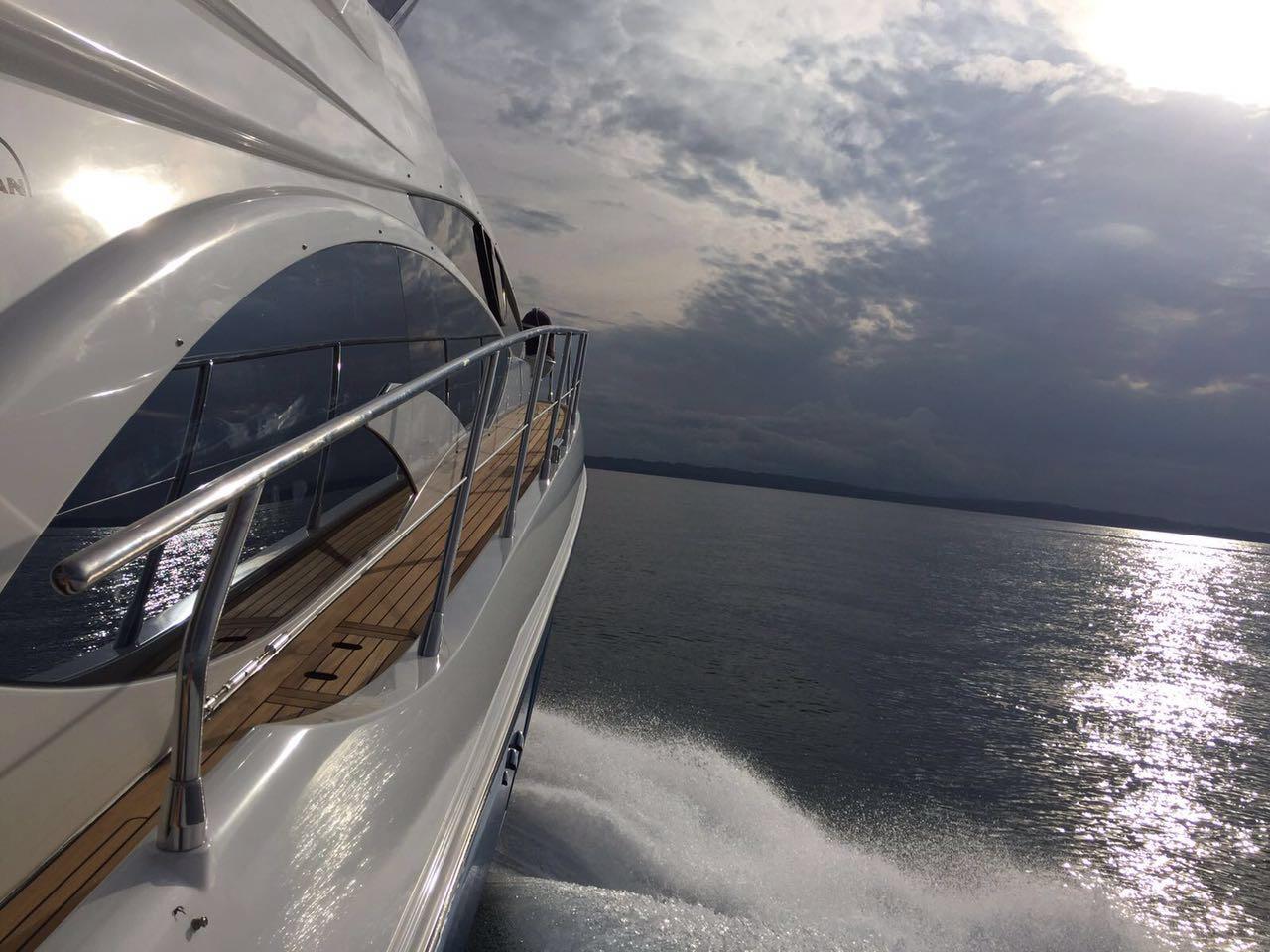 This 2014 54’Azimut FLY includes every upgraded option possibly available from the factory starting from MAN engines with 738 HP to Metallic Tenerife hull, Joystic control (Bow and Stern thrusters with dual stations, teak on flybridge teak in cockpit, teak on hydraulic platform, teak on walkways to Bow vessel includes A/B dinghy w/25 hp outboard motor.