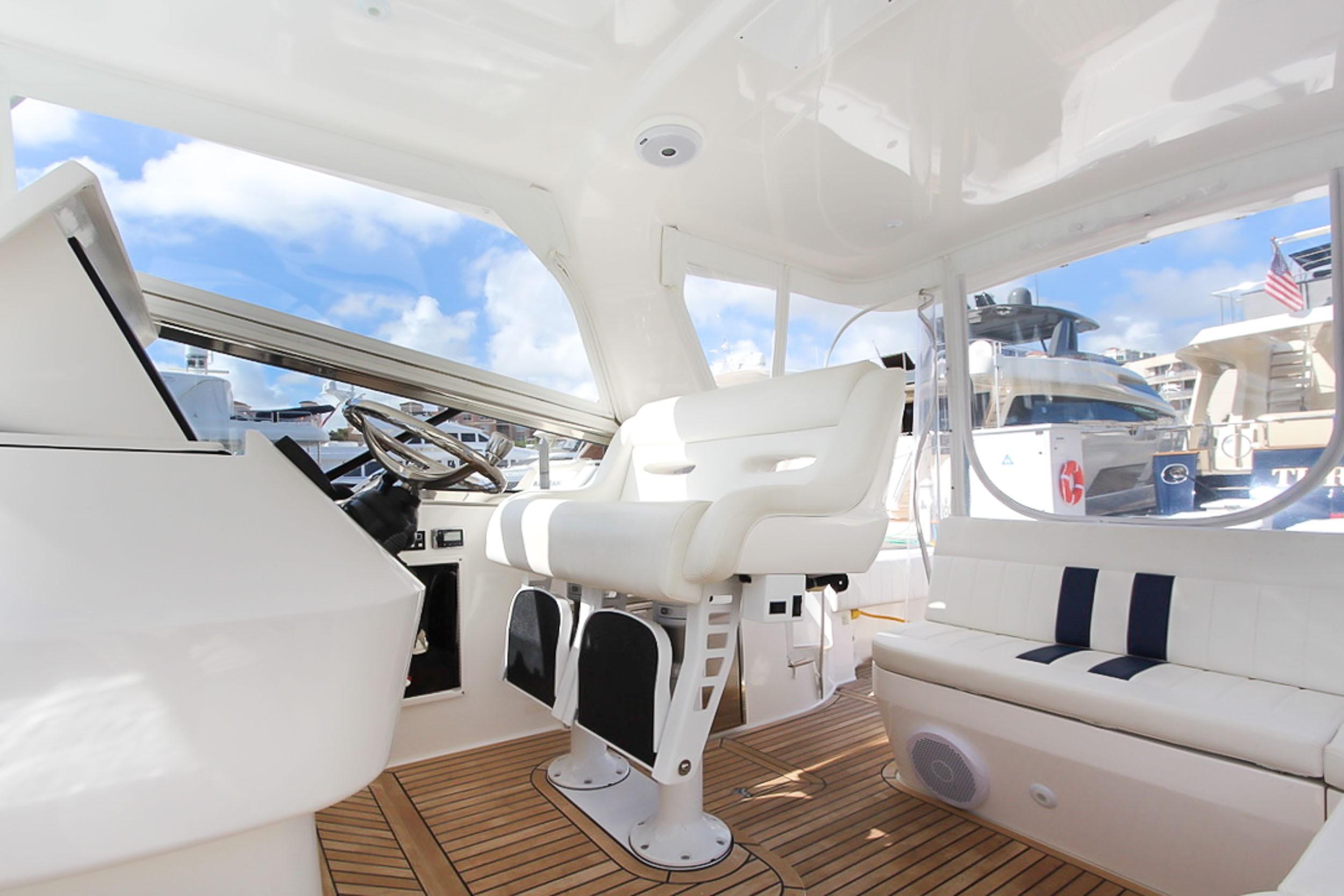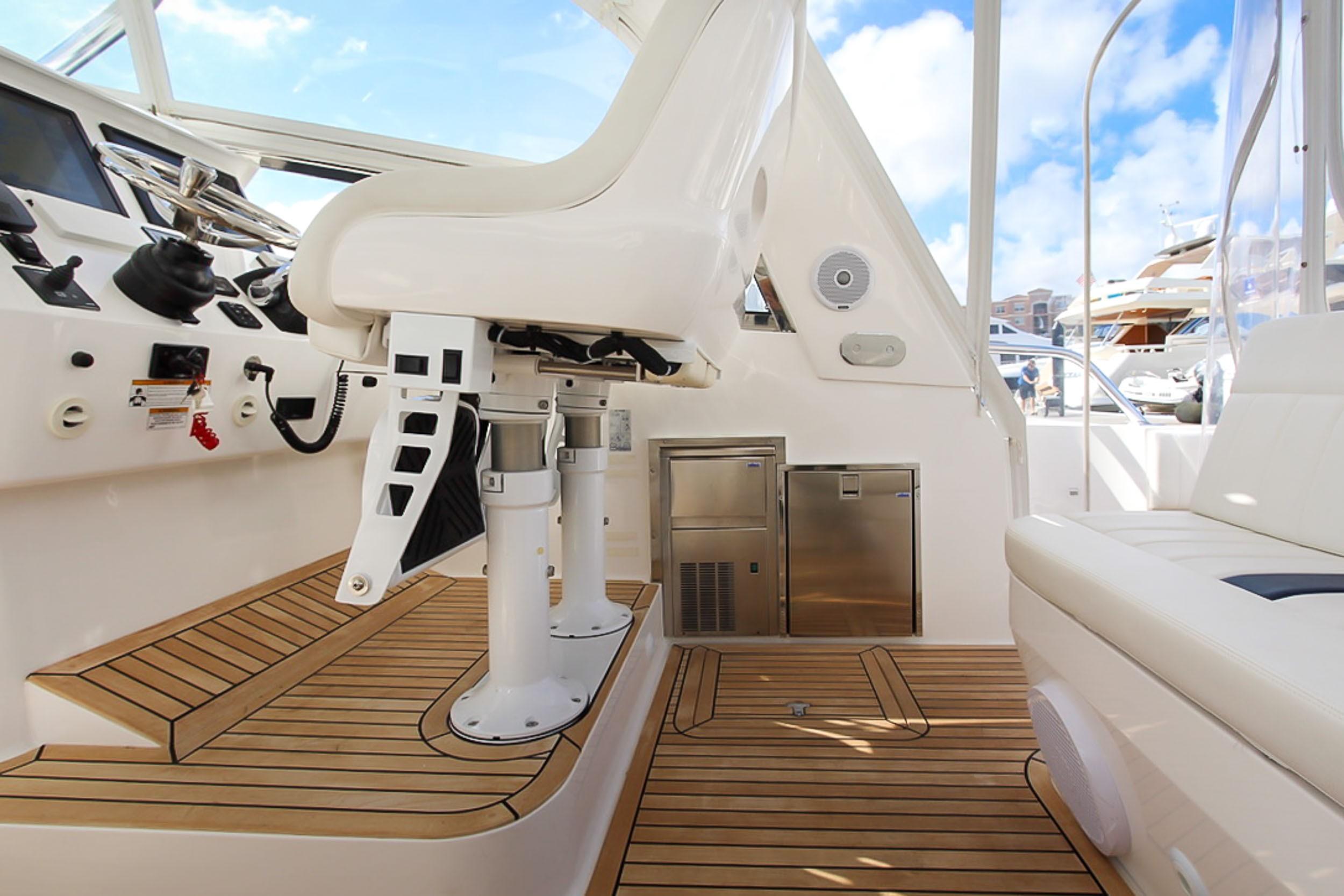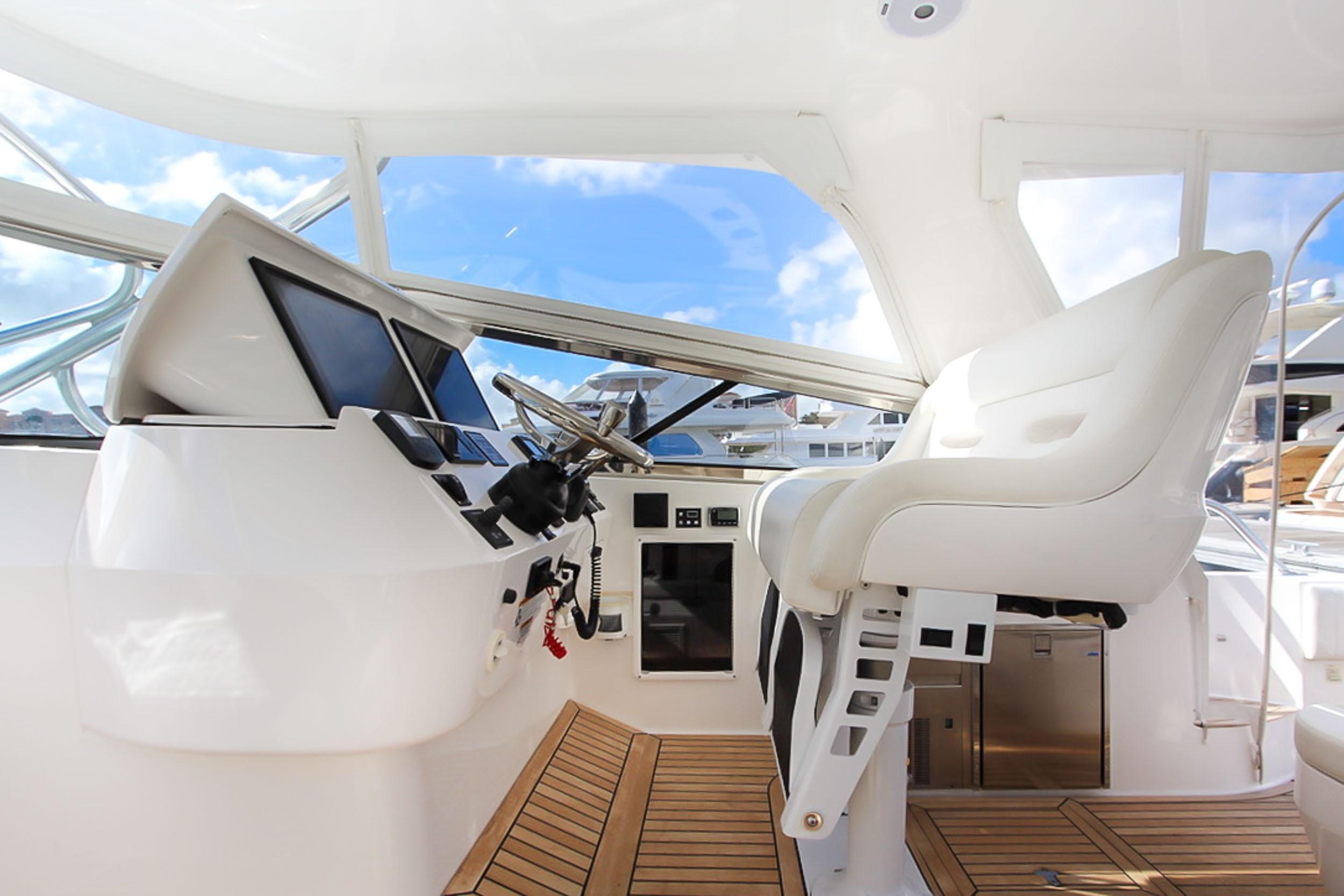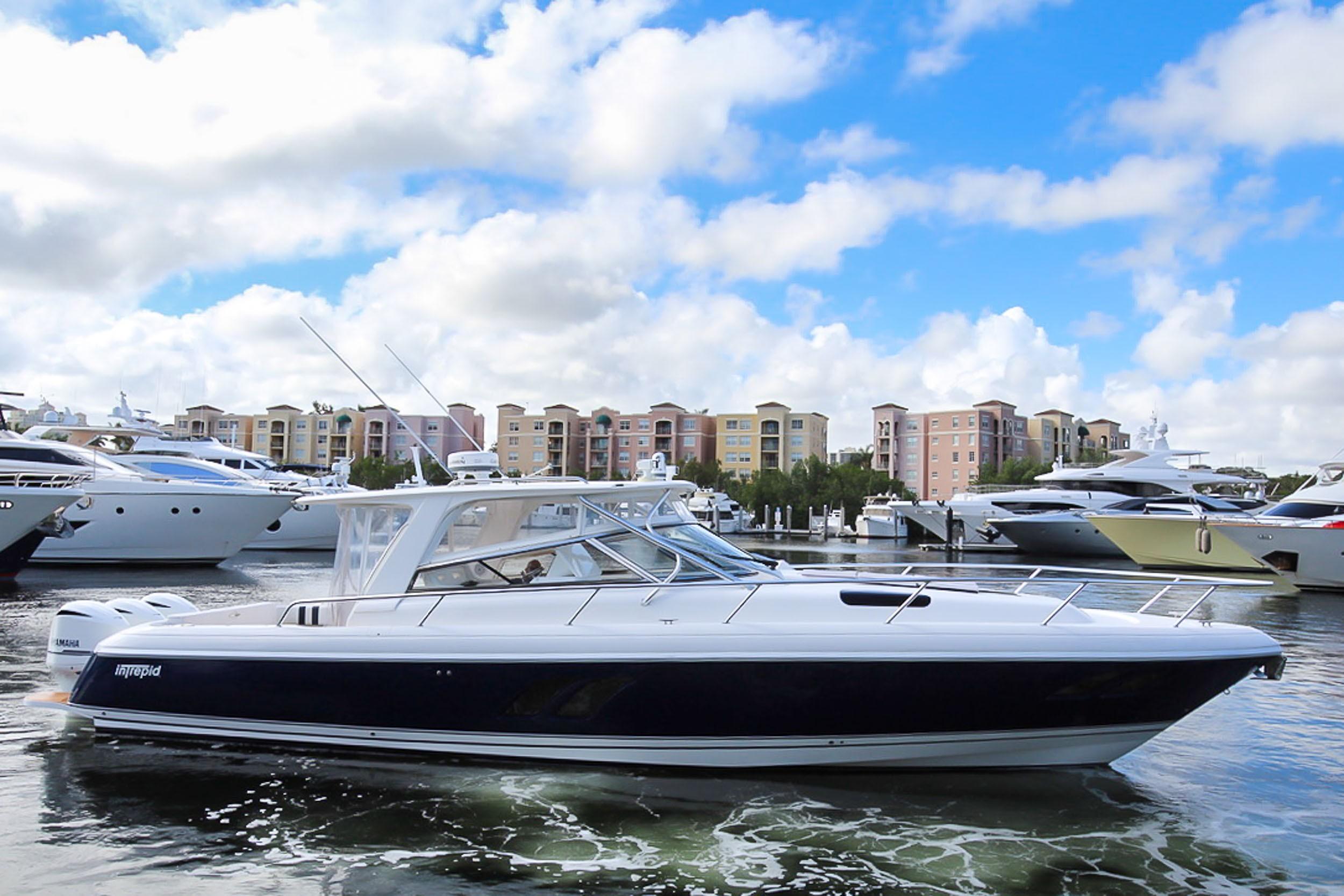 This 43′ 2014 Intrepid Sport Yacht is one of a kind. Powered with Triple 350 Yamaha with only 90 hrs. Extended warranty until August 2018.