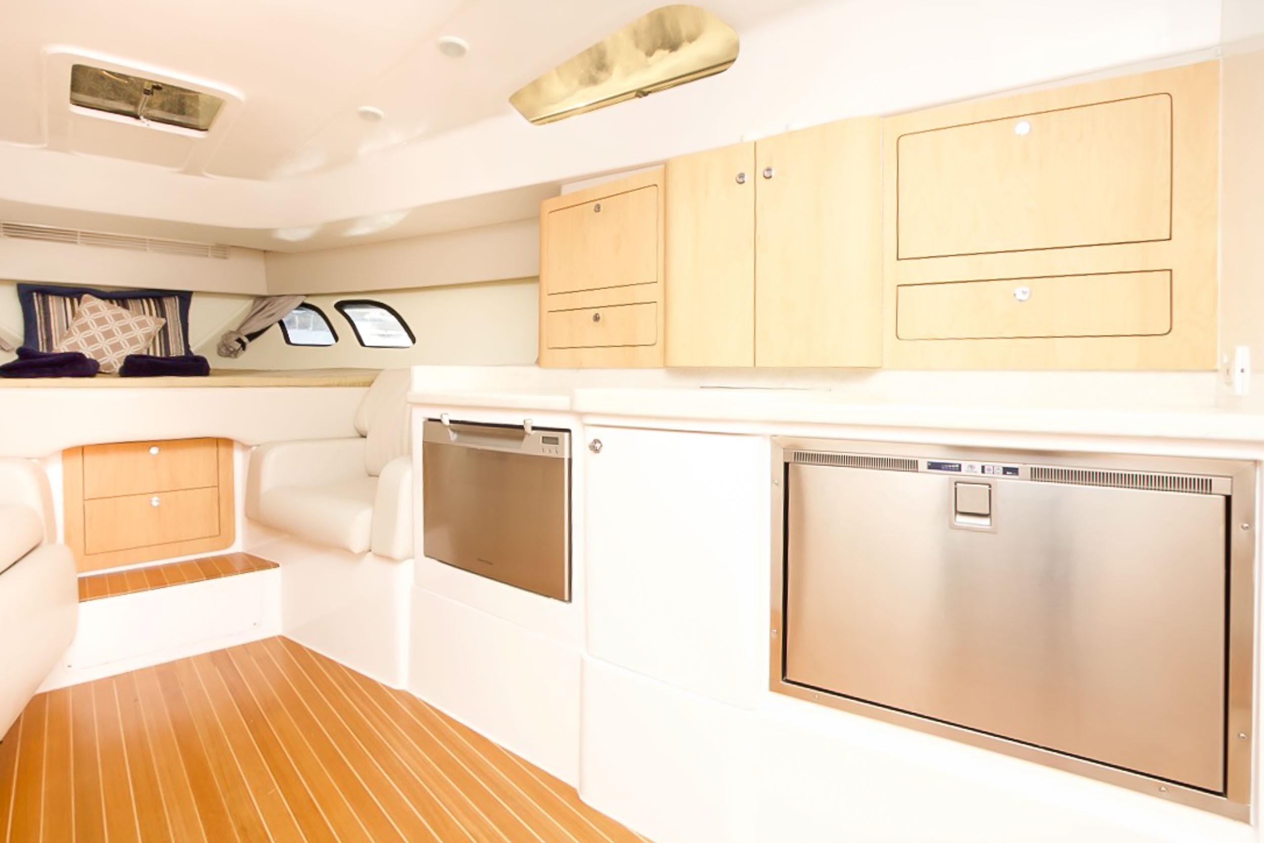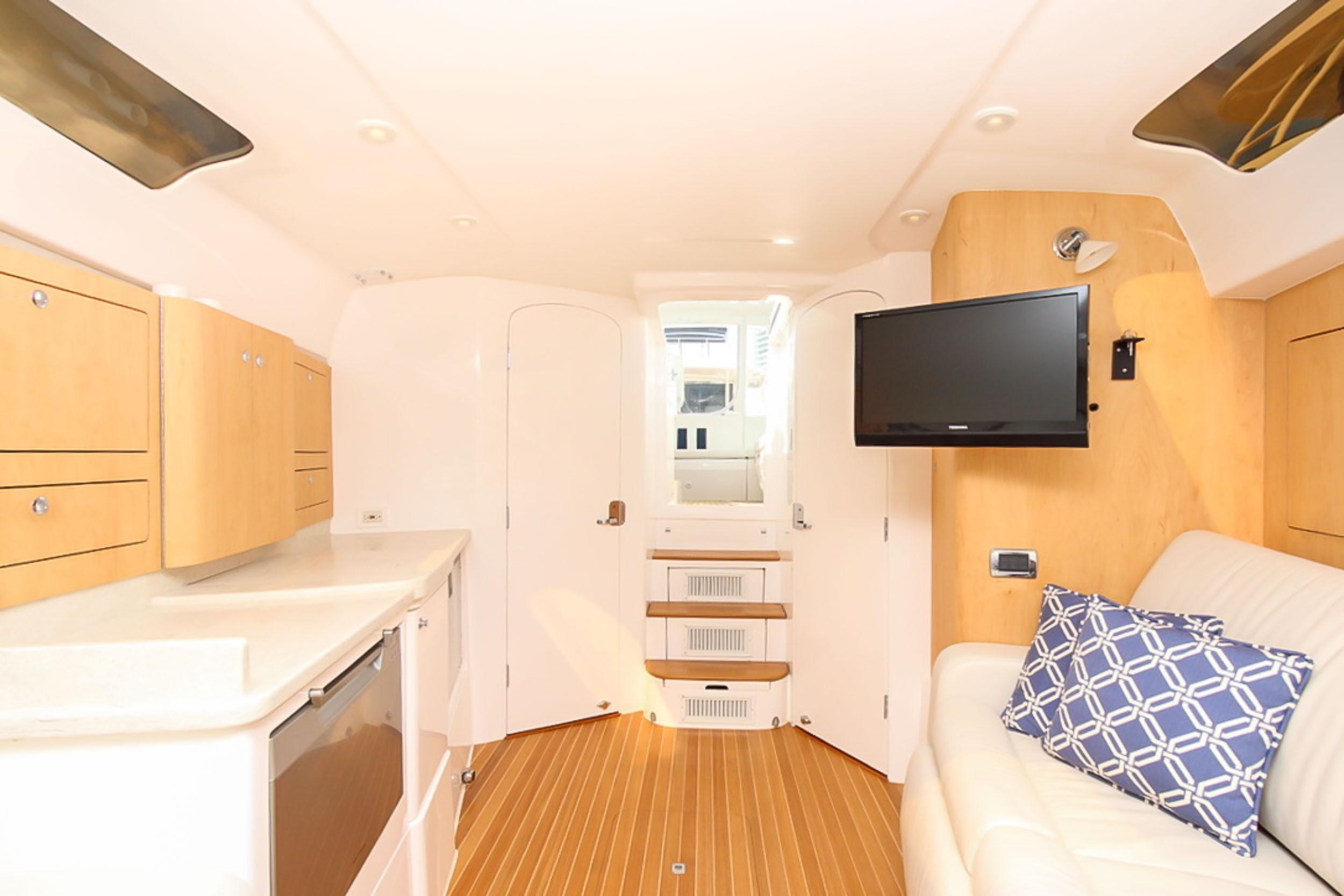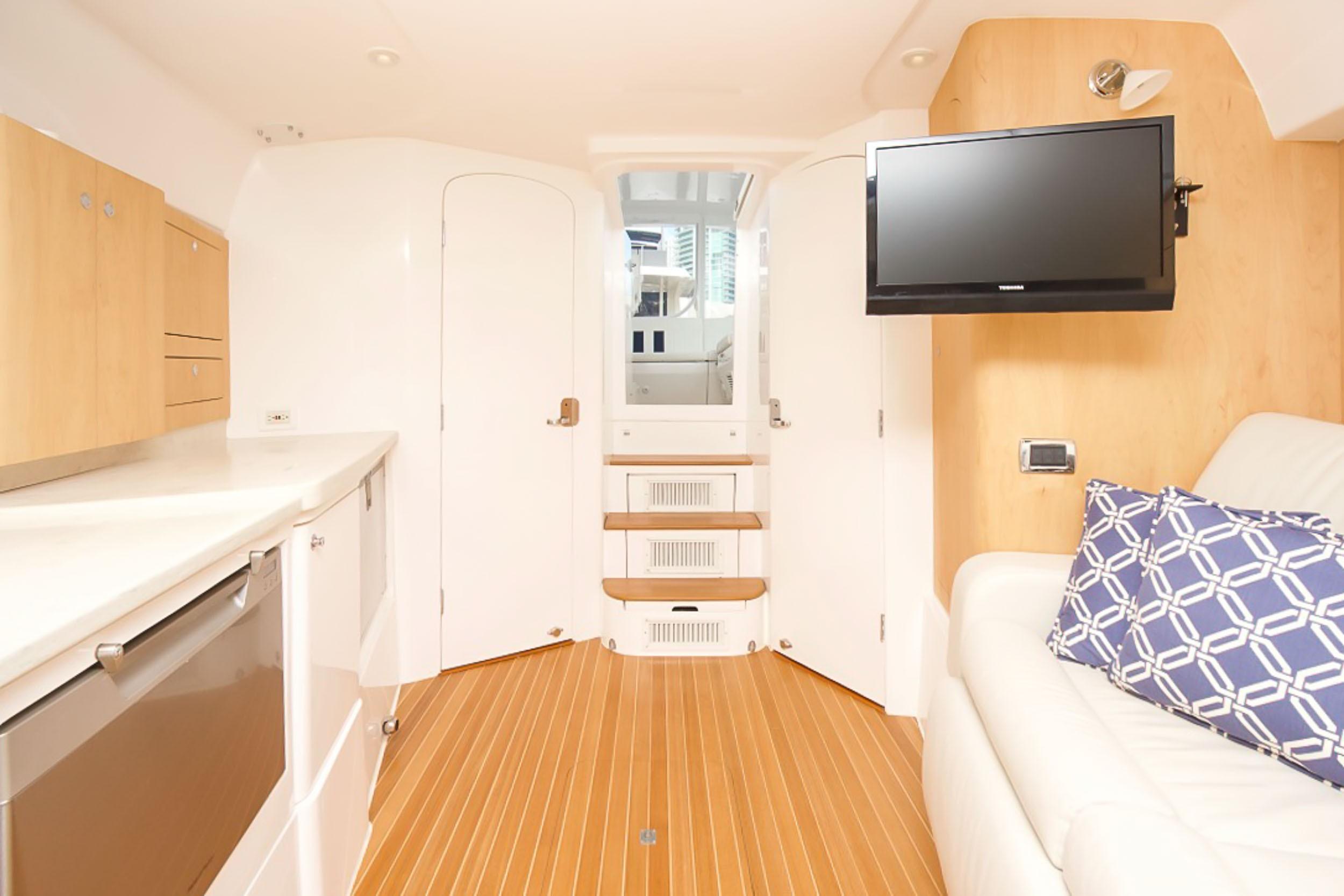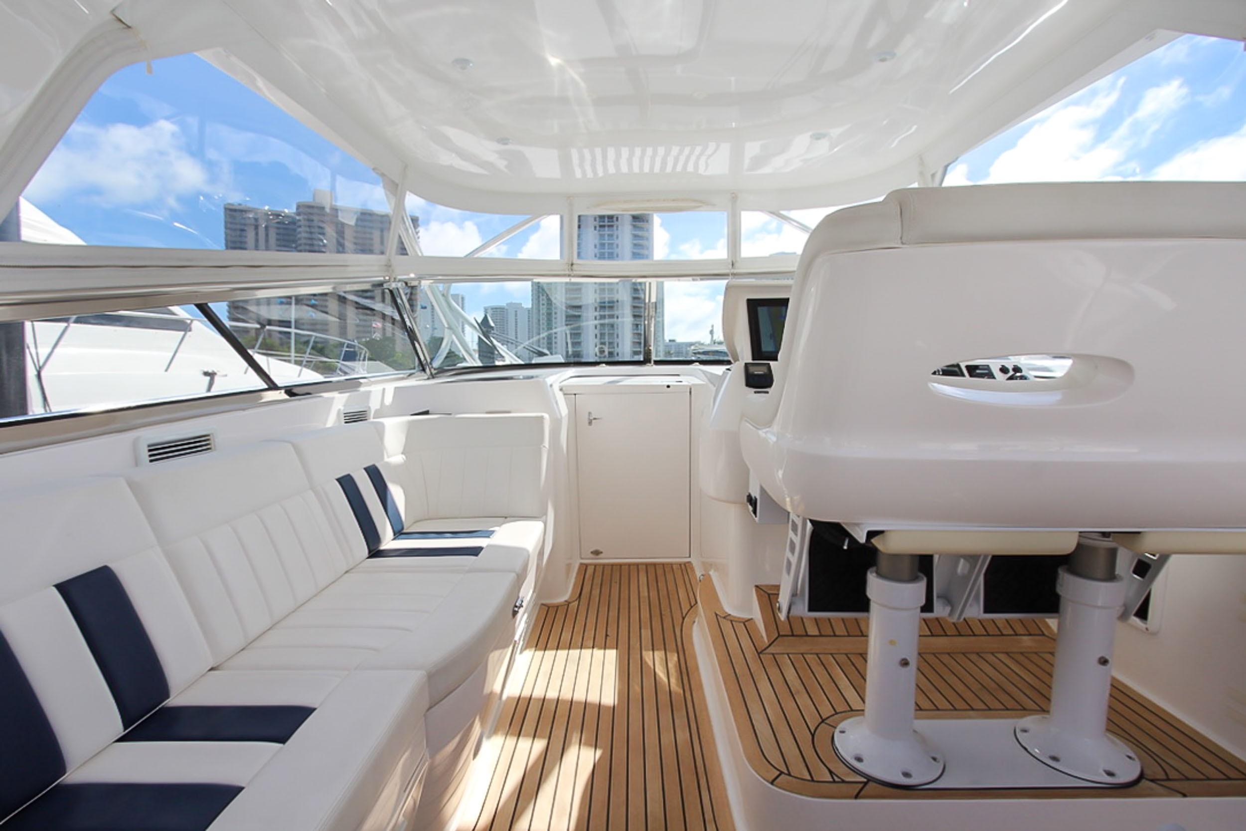 This 43′ 2014 Intrepid Sport Yacht is one of a kind. Powered with Triple 350 Yamaha with only 90 hrs. Extended warranty until August 2018.