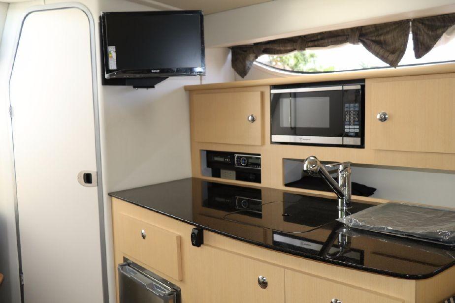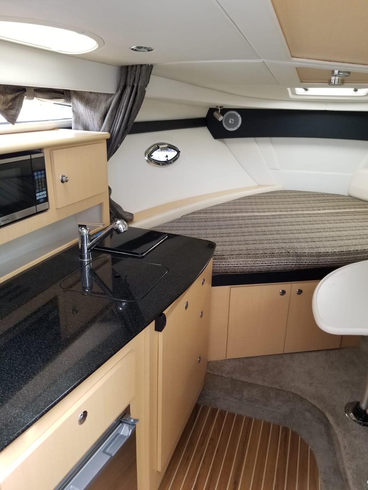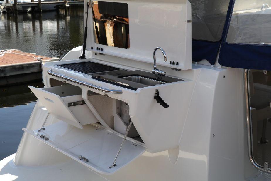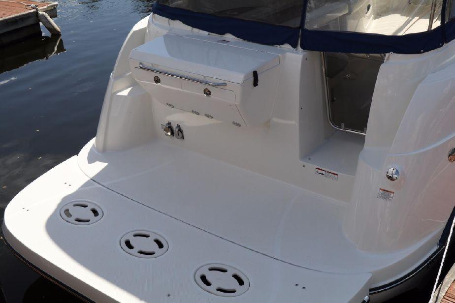Here is the perfect opportunity to own a NEW Bayliner 350 Special Edition sport cruiser for a fraction of the price. Designed with a oversized cabin typically found in larger boats equipped with a roomy berth forward that sleeps two comfortably, a full galley and a large dinette table with ample seating and storage. The fully airconditioned cabin allows for comfortable cruising and long overnight stay.