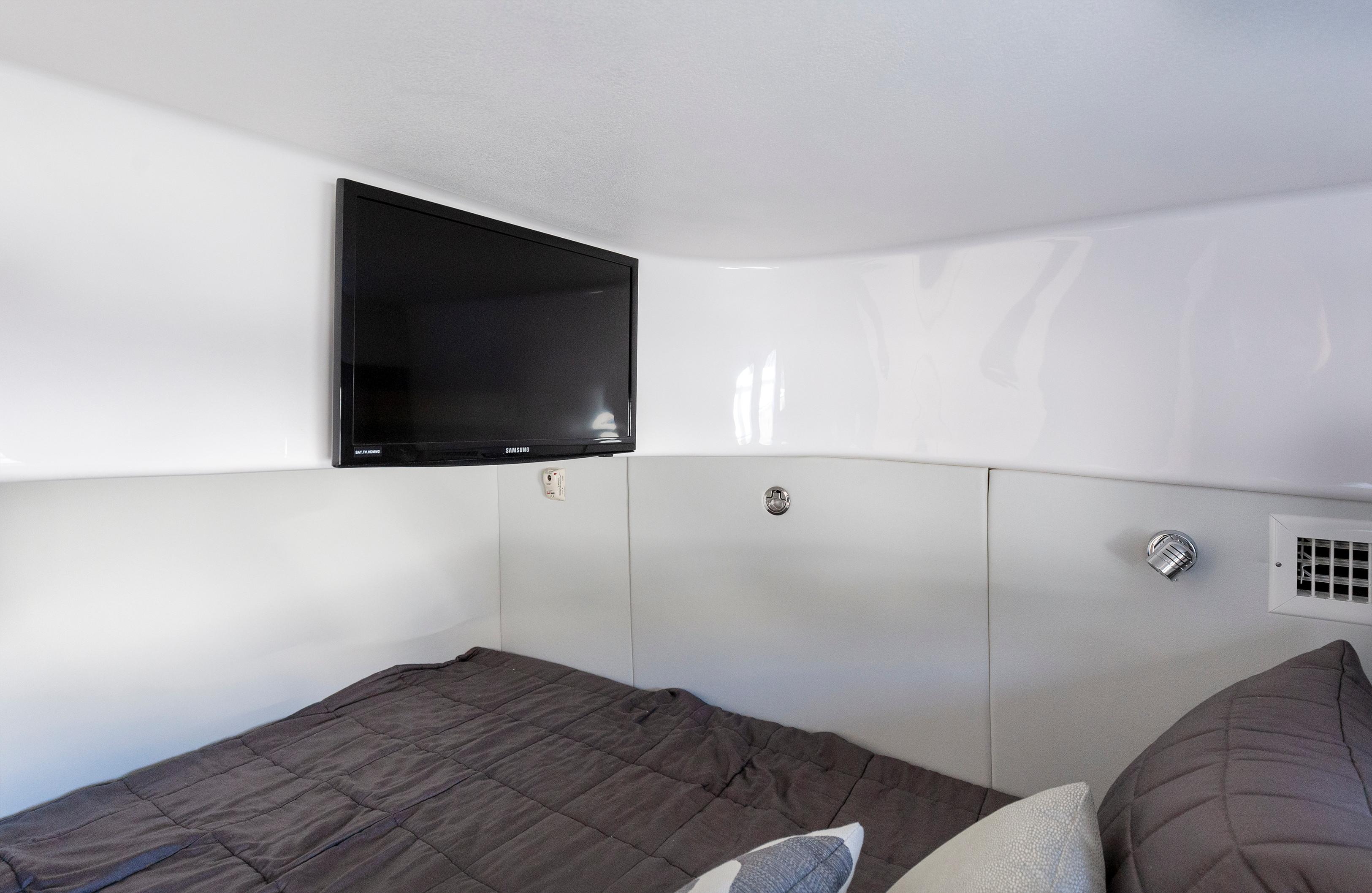 Below you’ll step into Intrepids largest and most luxurious master stateroom, the perfect blend of solid practicality and lavish amounts of space. The salon offers generous room for guests to congregate, with comfortable pass-by space. The media center accommodates the latest audio-visual systems. The head compartment boasts 6’4″ headroom and includes a separate shower room with a stall shower or optional second head. This level of luxury is unmistakably Intrepid.