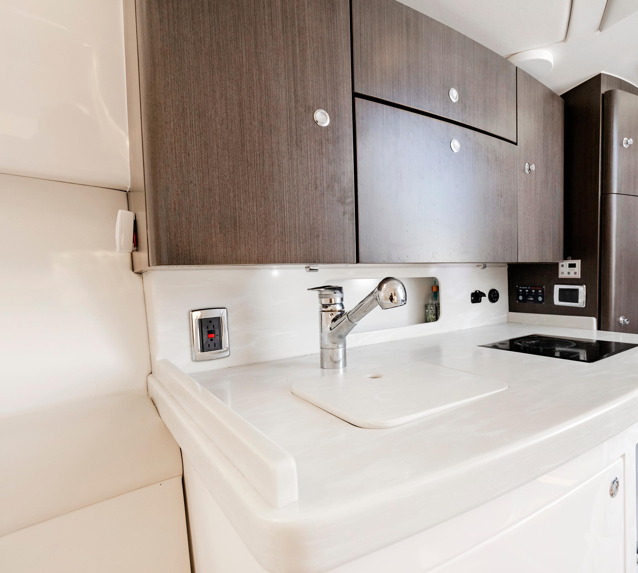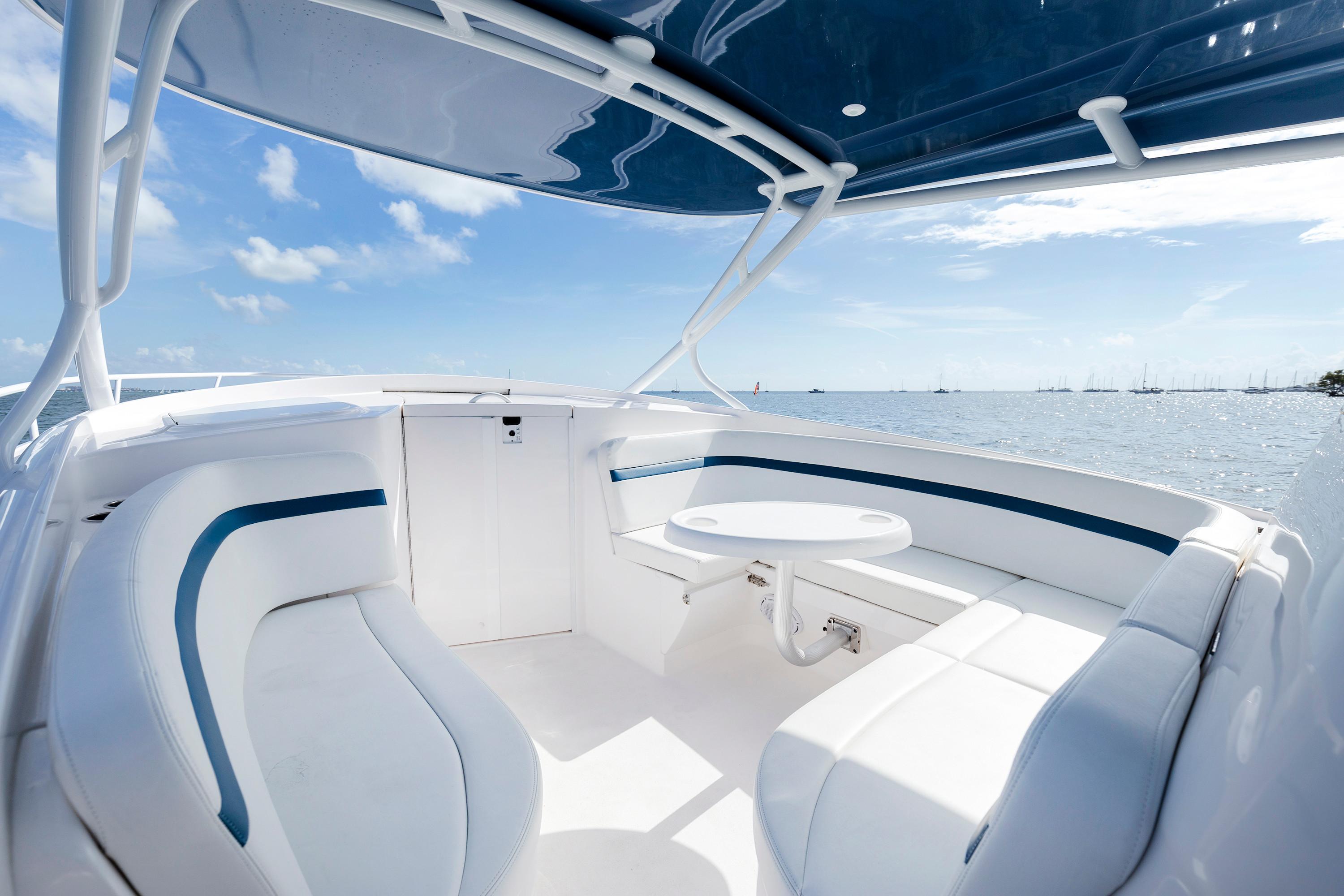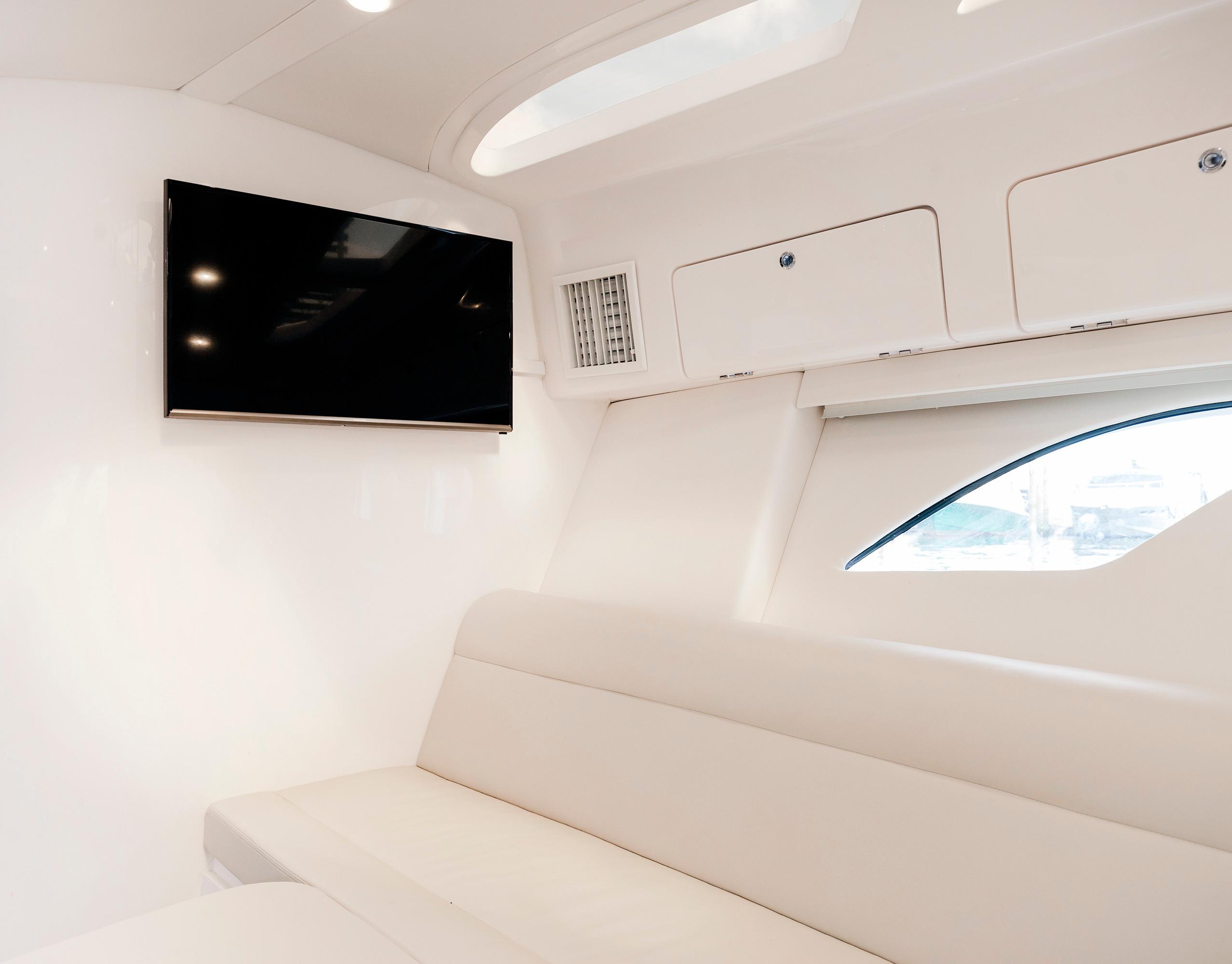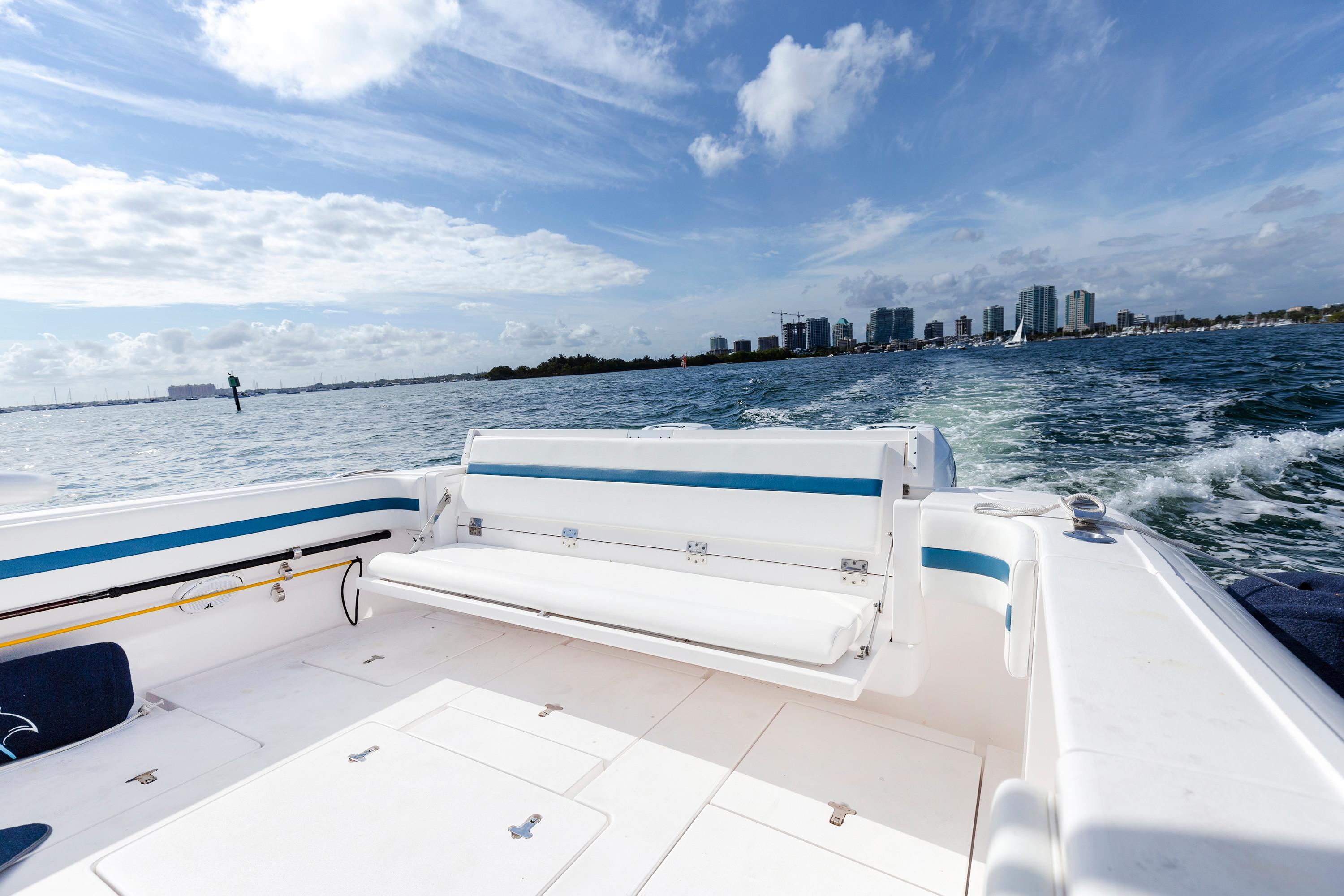 Sleek and stylish, the 407 Cuddy offers all the enhanced accommodations you would expect in a luxury performance cruiser. From a private head with shower stall and separate master berth with queen bed and hullside windows to a forward cabin section that easily converts to a large double berth. But none of it comes at the expense of the most advanced technology and fabrication techniques that deliver an incomparably smooth, dry ride with unparalleled performance. For divers and swimmers, it’s packed with thoughtful design features like a hullside dive door with step ladder and grab rails. Entertaining is elevated with cozy, custom seating and a stylish wet bar while serious sport fishermen will take note of the baitwells, rod holders, tank storage, tackle boxes and raw water washdown.