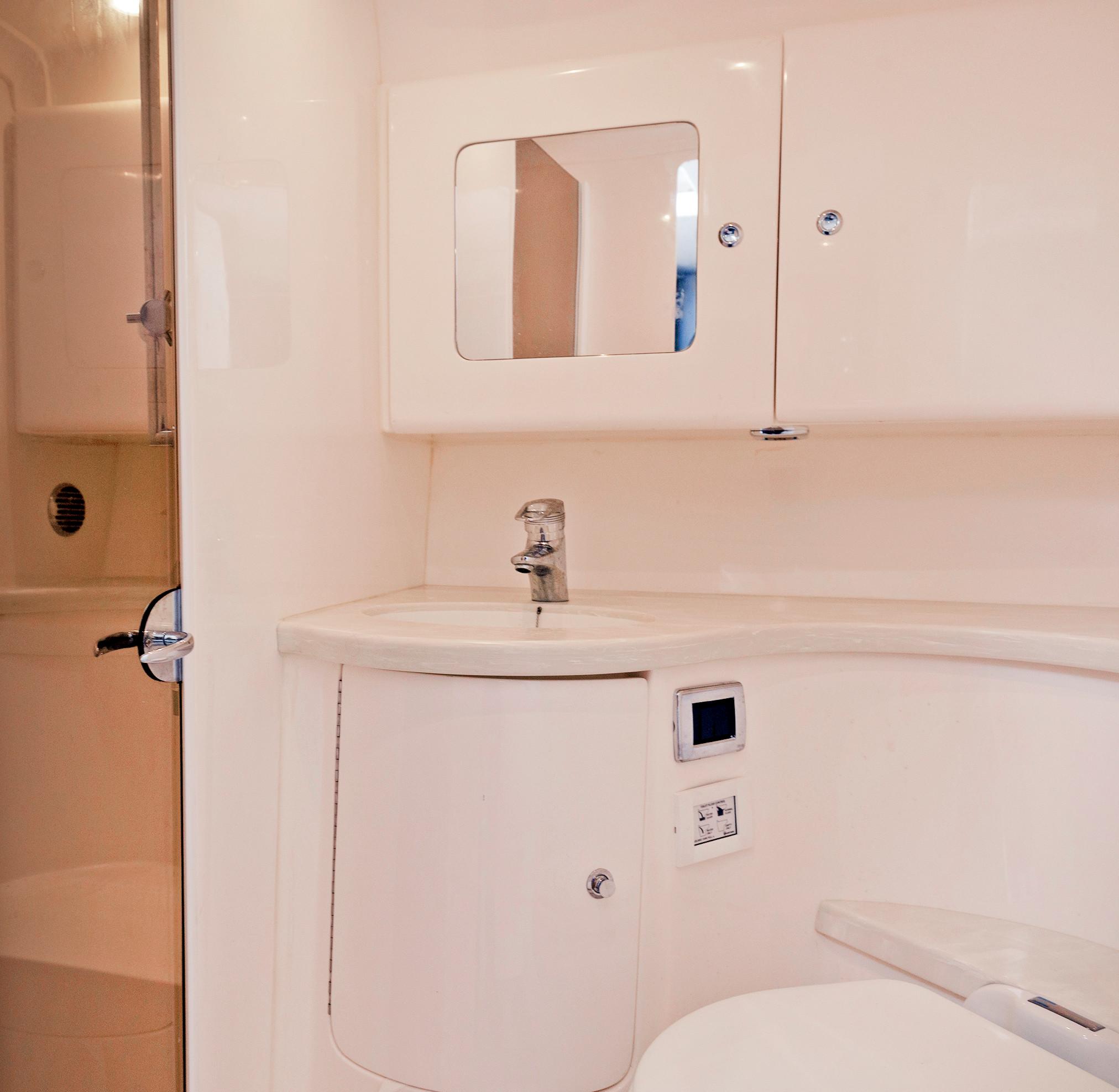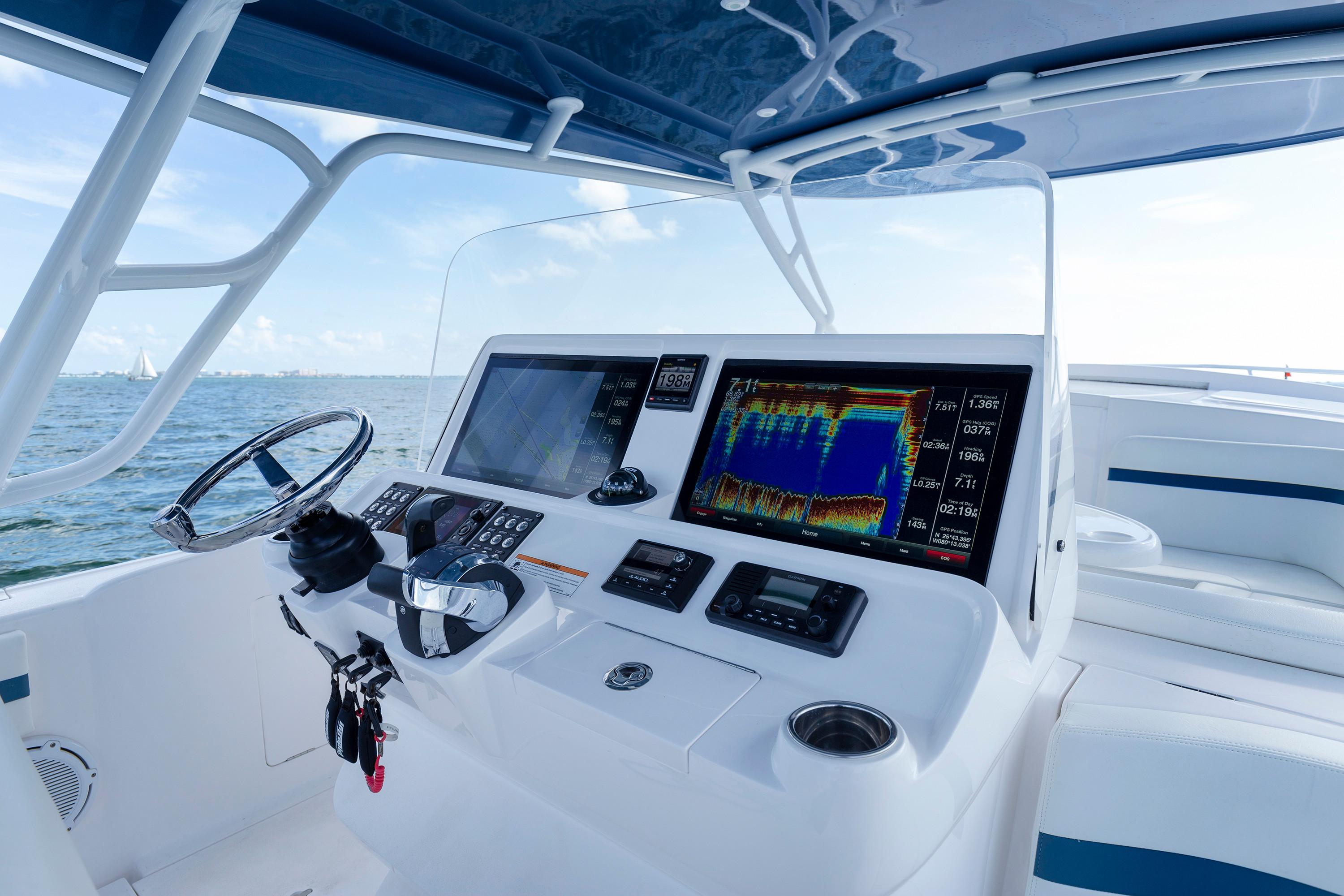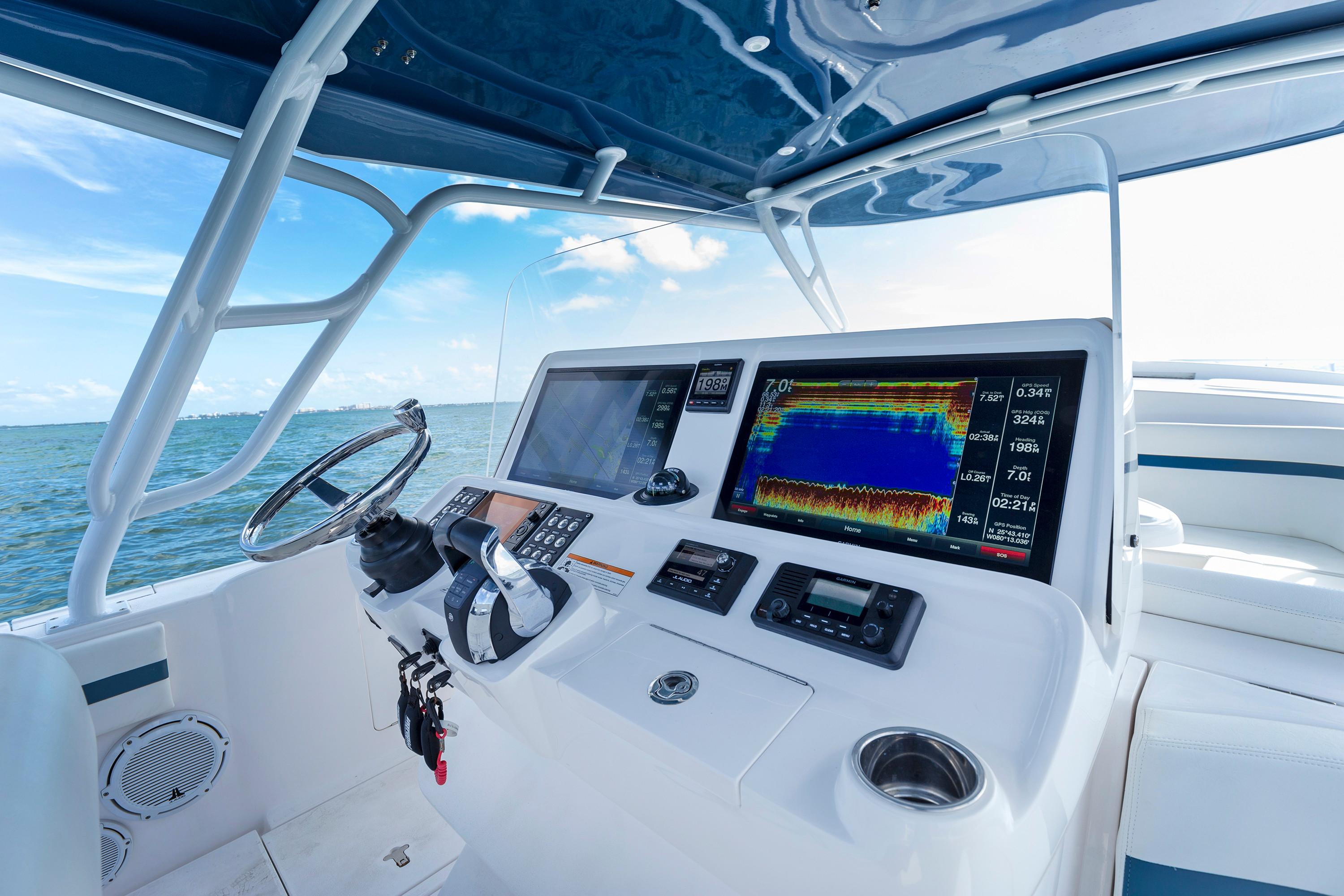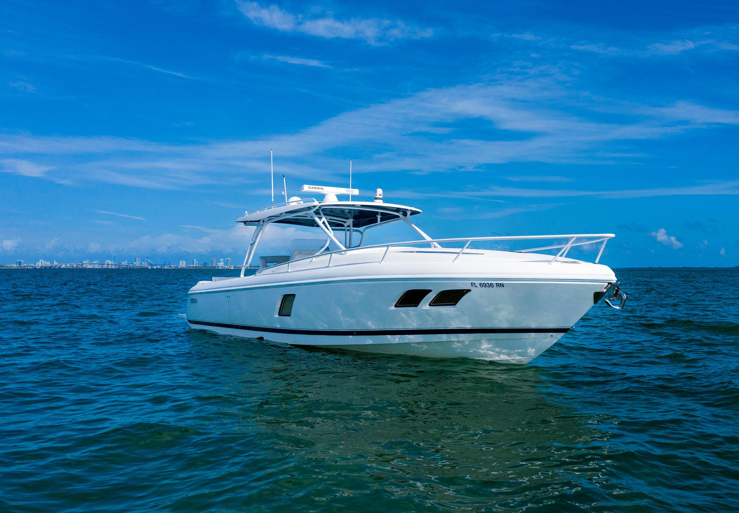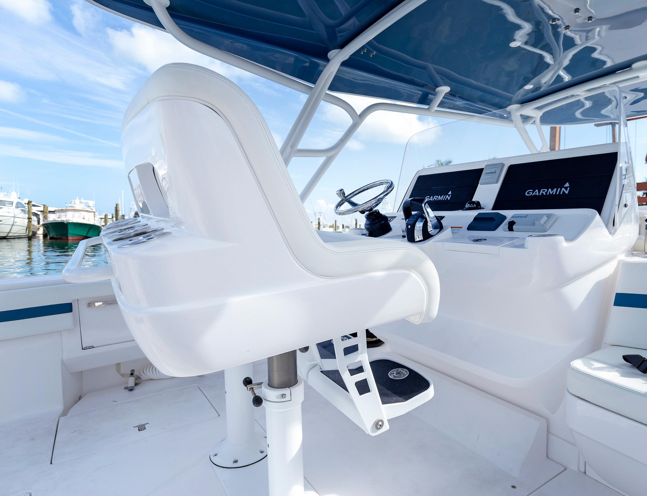 Sleek and stylish, the 407 Cuddy offers all the enhanced accommodations you would expect in a luxury performance cruiser. From a private head with shower stall and separate master berth with queen bed and hullside windows to a forward cabin section that easily converts to a large double berth. But none of it comes at the expense of the most advanced technology and fabrication techniques that deliver an incomparably smooth, dry ride with unparalleled performance. For divers and swimmers, it’s packed with thoughtful design features like a hullside dive door with step ladder and grab rails. Entertaining is elevated with cozy, custom seating and a stylish wet bar while serious sport fishermen will take note of the baitwells, rod holders, tank storage, tackle boxes and raw water washdown.