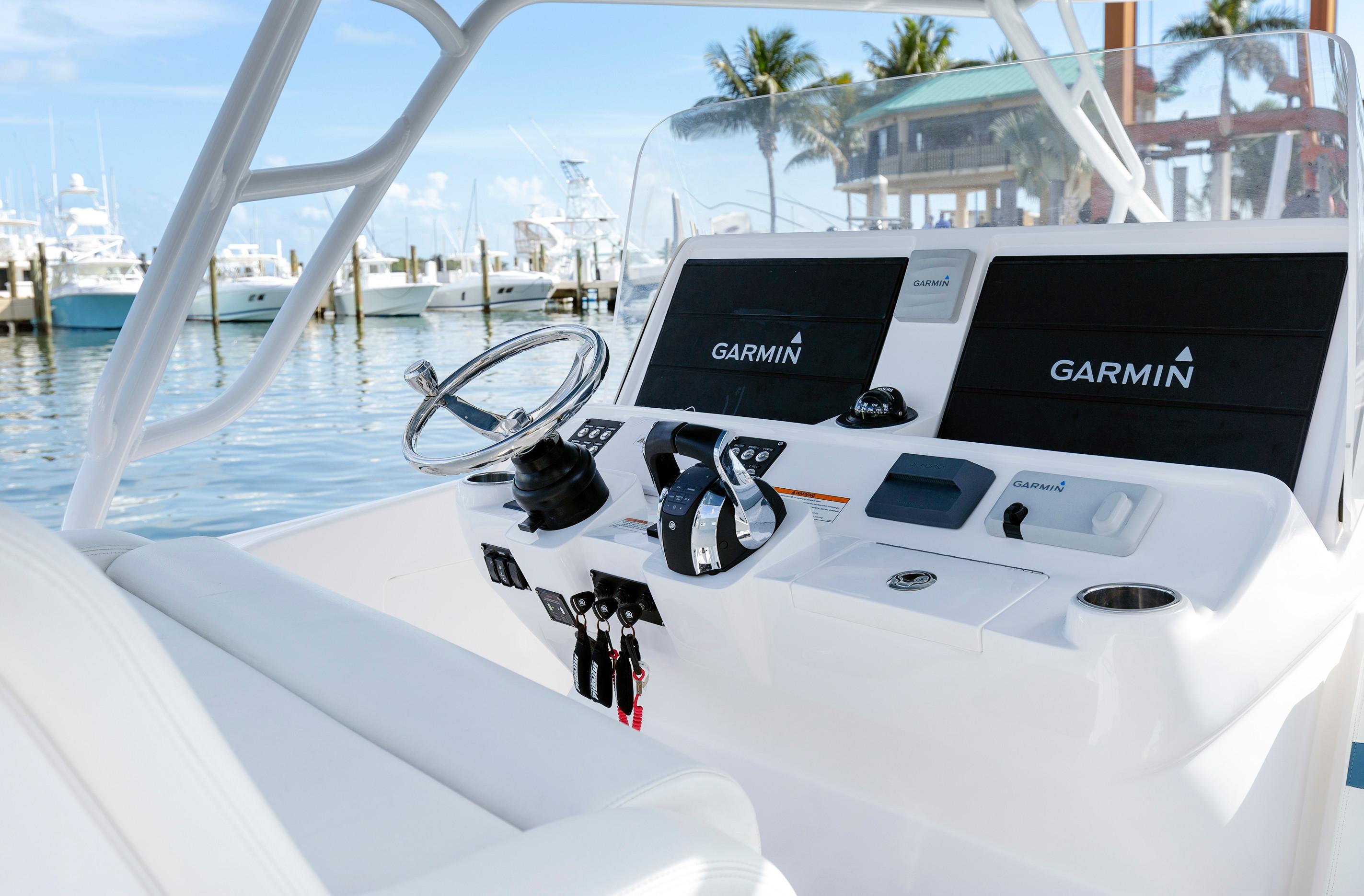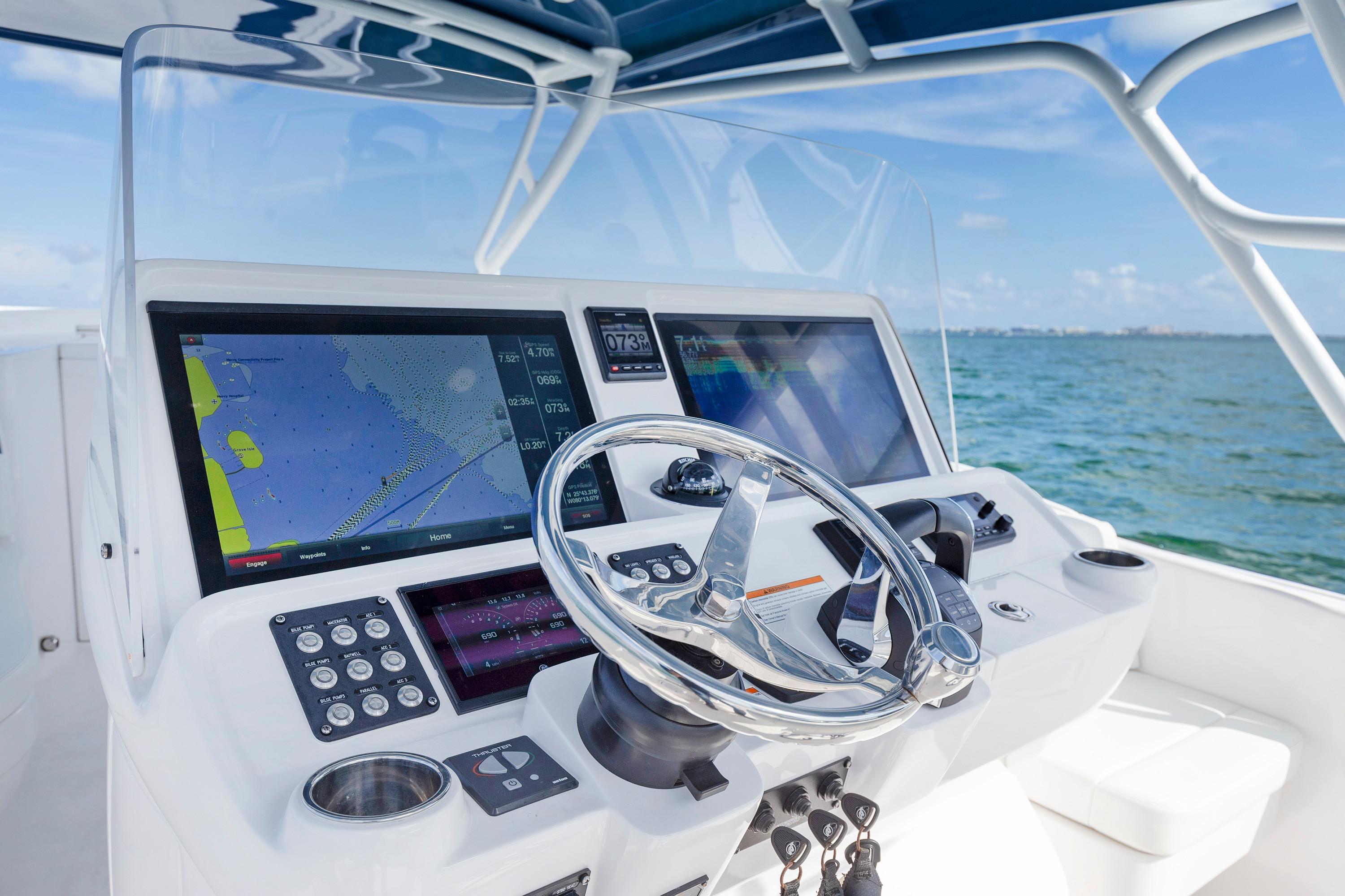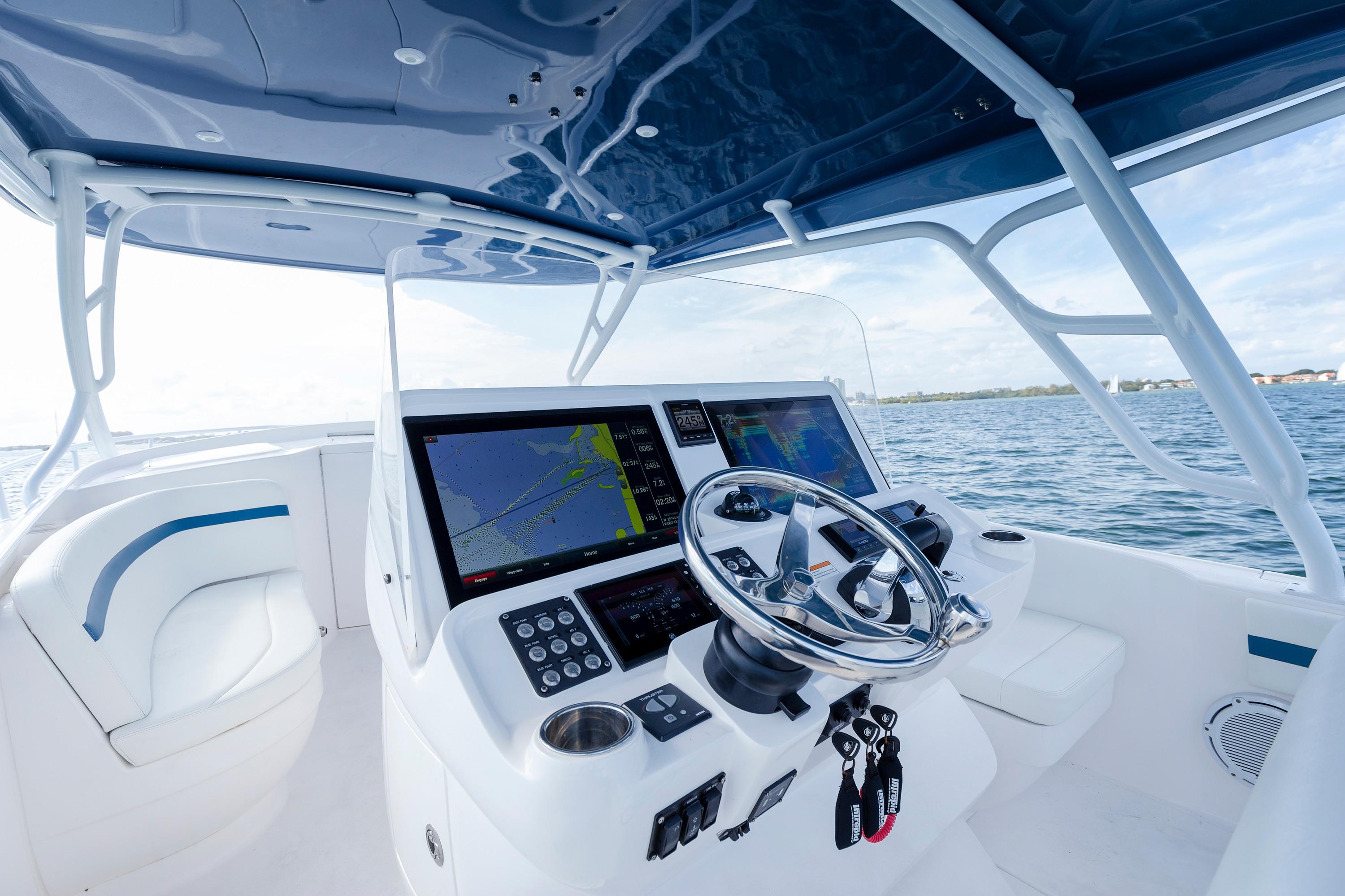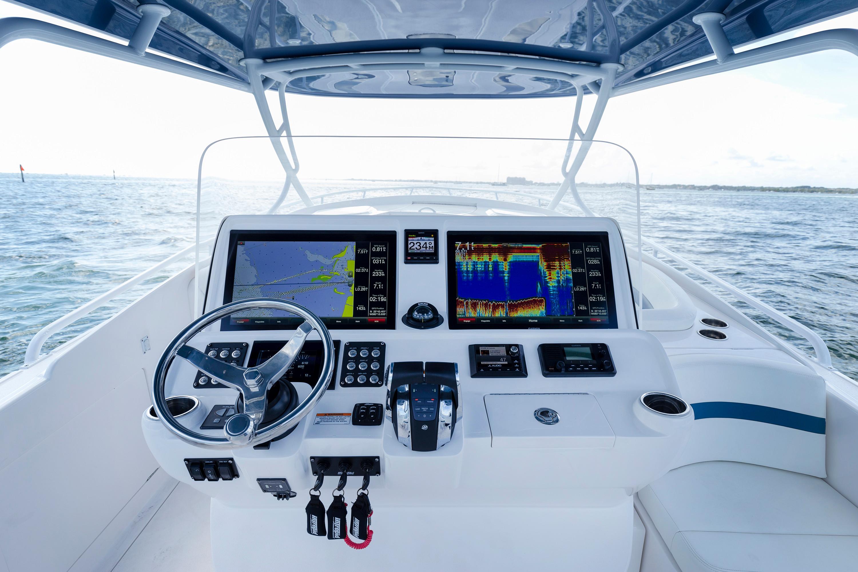 Sleek and stylish, the 407 Cuddy offers all the enhanced accommodations you would expect in a luxury performance cruiser. From a private head with shower stall and separate master berth with queen bed and hullside windows to a forward cabin section that easily converts to a large double berth. But none of it comes at the expense of the most advanced technology and fabrication techniques that deliver an incomparably smooth, dry ride with unparalleled performance. For divers and swimmers, it’s packed with thoughtful design features like a hullside dive door with step ladder and grab rails. Entertaining is elevated with cozy, custom seating and a stylish wet bar while serious sport fishermen will take note of the baitwells, rod holders, tank storage, tackle boxes and raw water washdown.