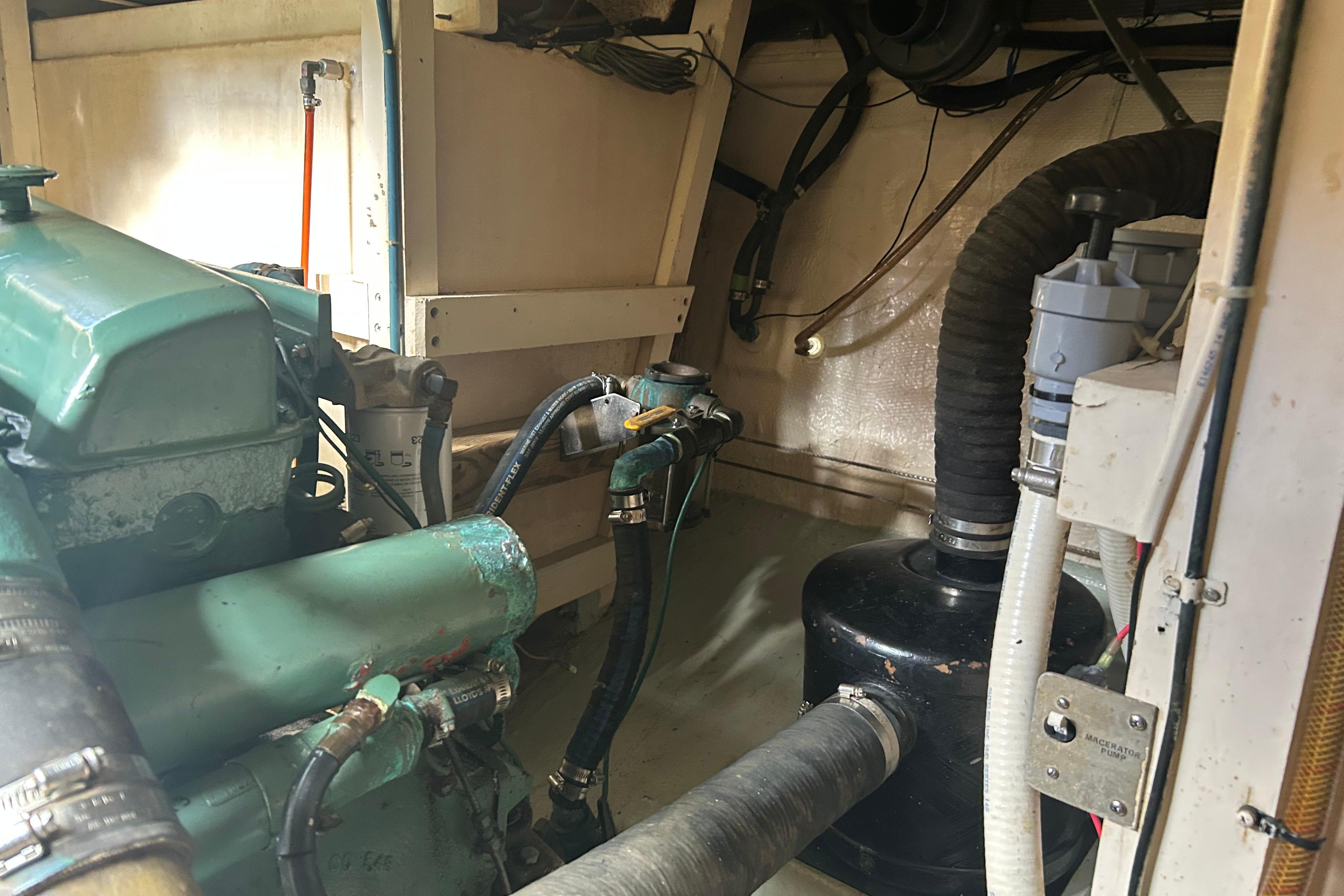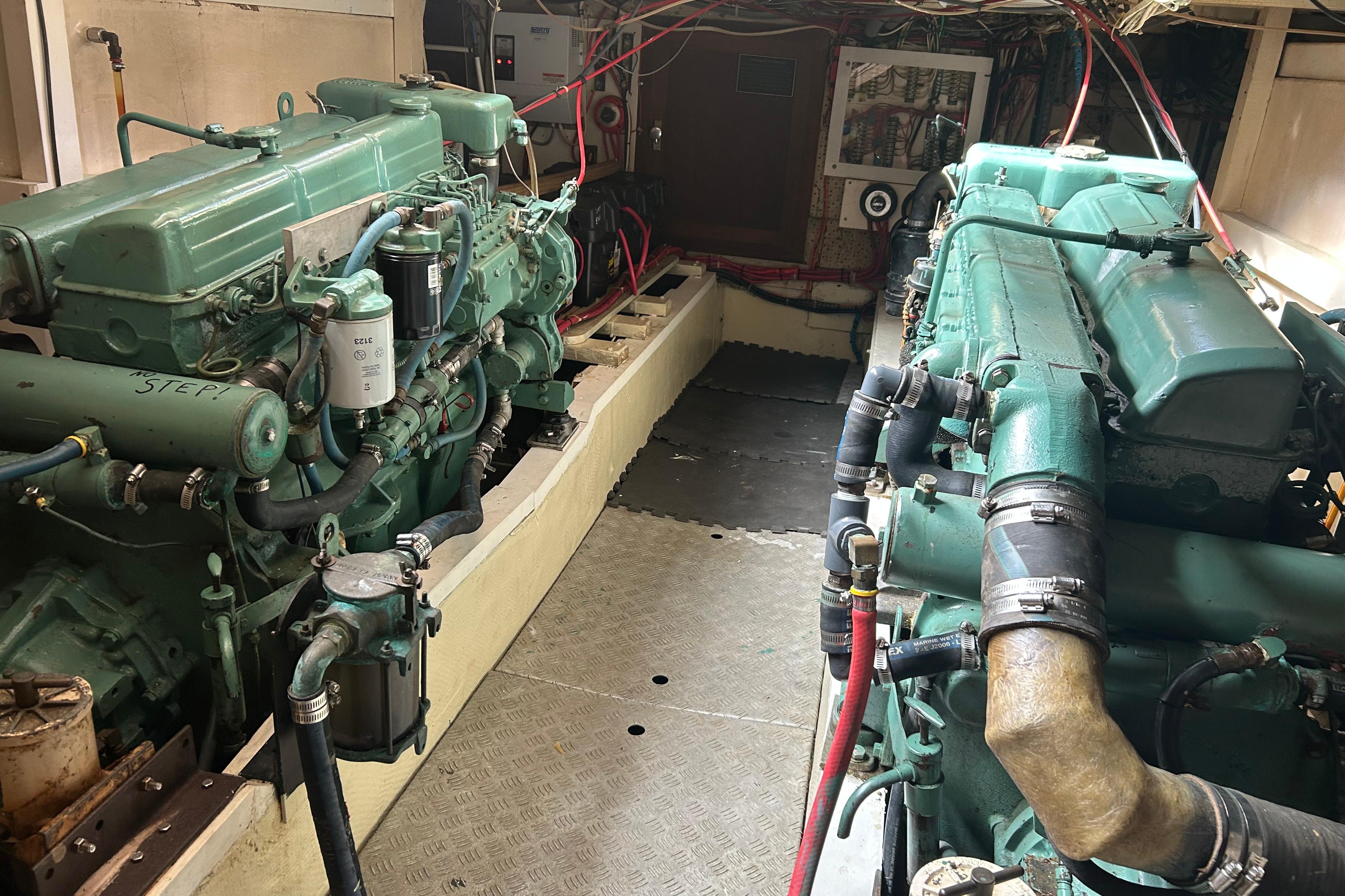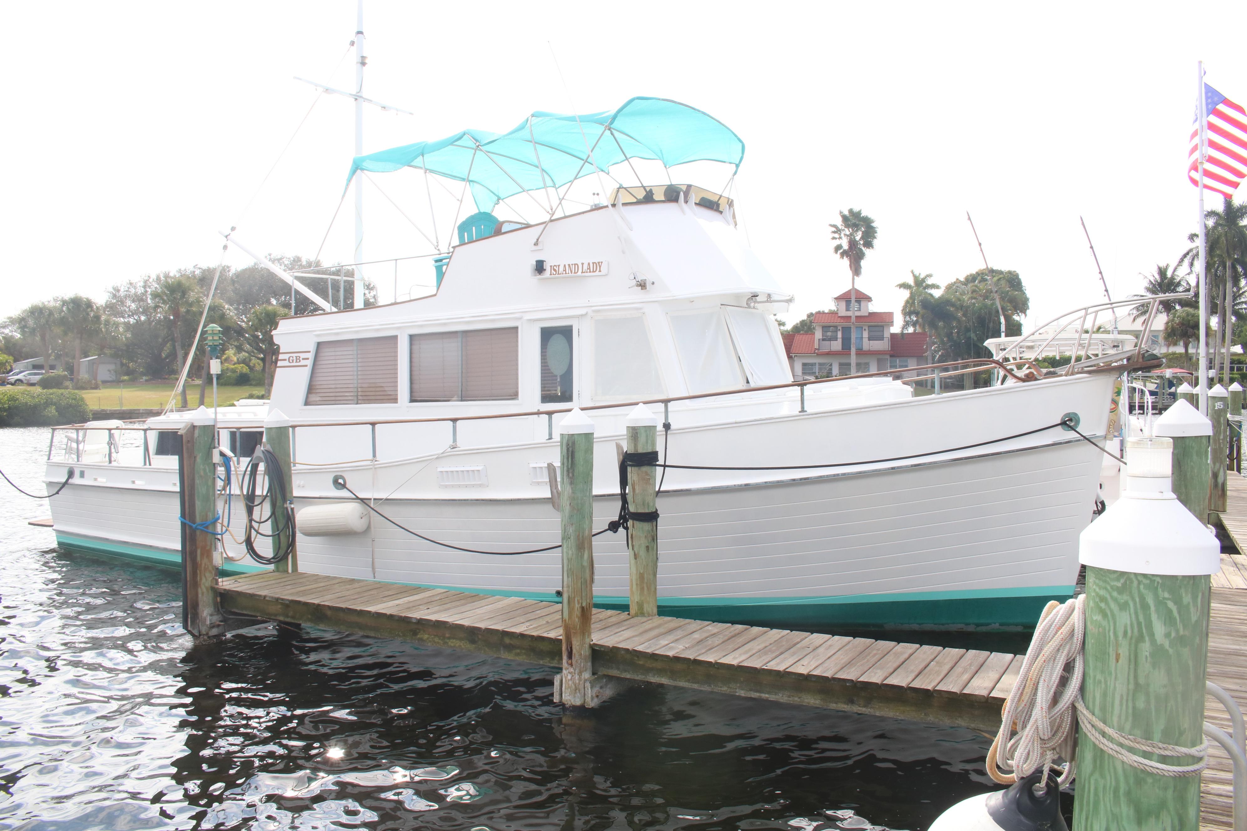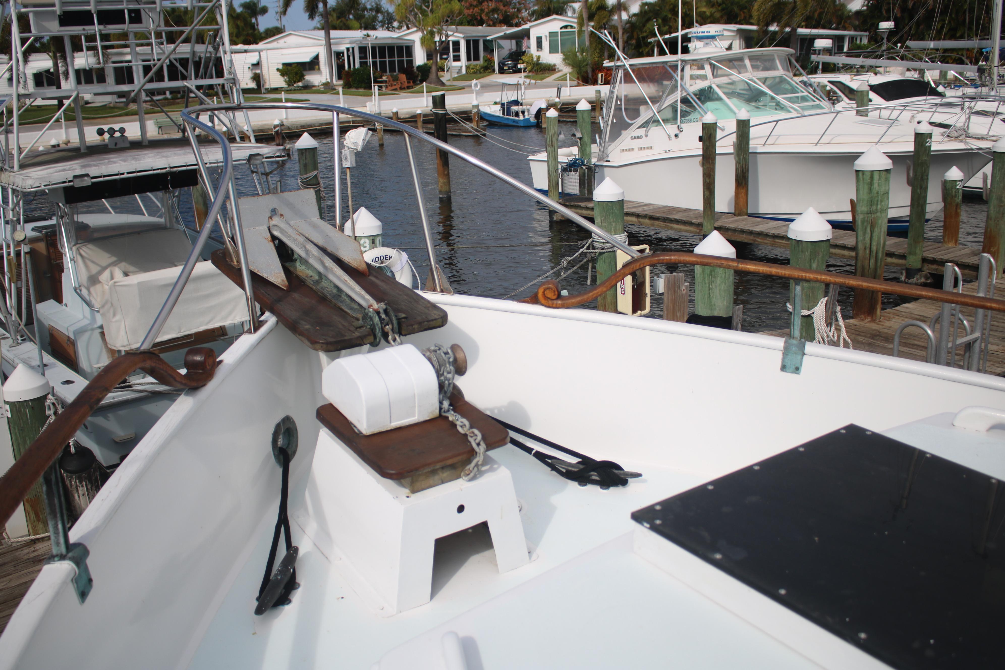 This 1978 Grand Banks 42 Classic is extremely clean, with virtually no hours on the engines. The hours are 3112 on the port and 2759 on the Starboard. 2 Staterooms he forward stateroom is the guest room with a head and the master stateroom is in the aft with a larger head with a bathtub/shower. The salon is very roomy and with all the windows very well lit. There is a lower station with the auto- pilot a GPS and VHF radio. The galley is part of the salon. There is also a nice built in bar. There is a doorway to get from the master stateroom too the back deck. There is a ladder to get from the deck to the full swim platform, The deck is a nice size there steps to get from the deck to the bridge which is huge. There is an additional radio a Garmin GPS and a digital depth sounder. The engine room is very clean and roomy Ford Lehman’s model 2714E . There is a 10 Kw Generator, as well as a 1000 watt inverter. There are 4 fuel tanks that holds a total of612 Gal giving the boat a 1000 Miles range With the Bimini down and the mast lowered the boat =s minimum bridge clearance is 13 feet