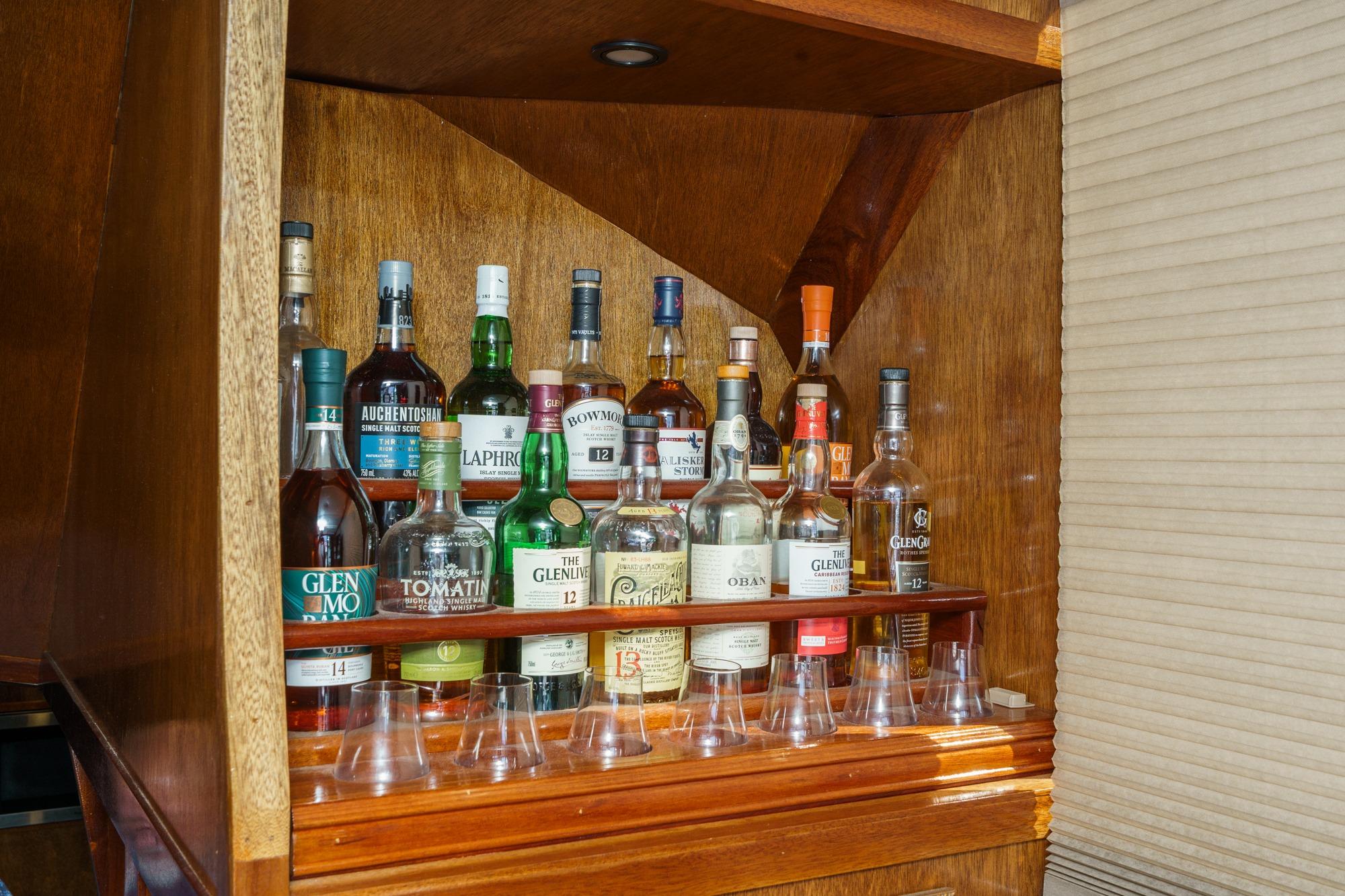 o Custom mahogany Scotch bar with under-bottle and down lighting (2019)