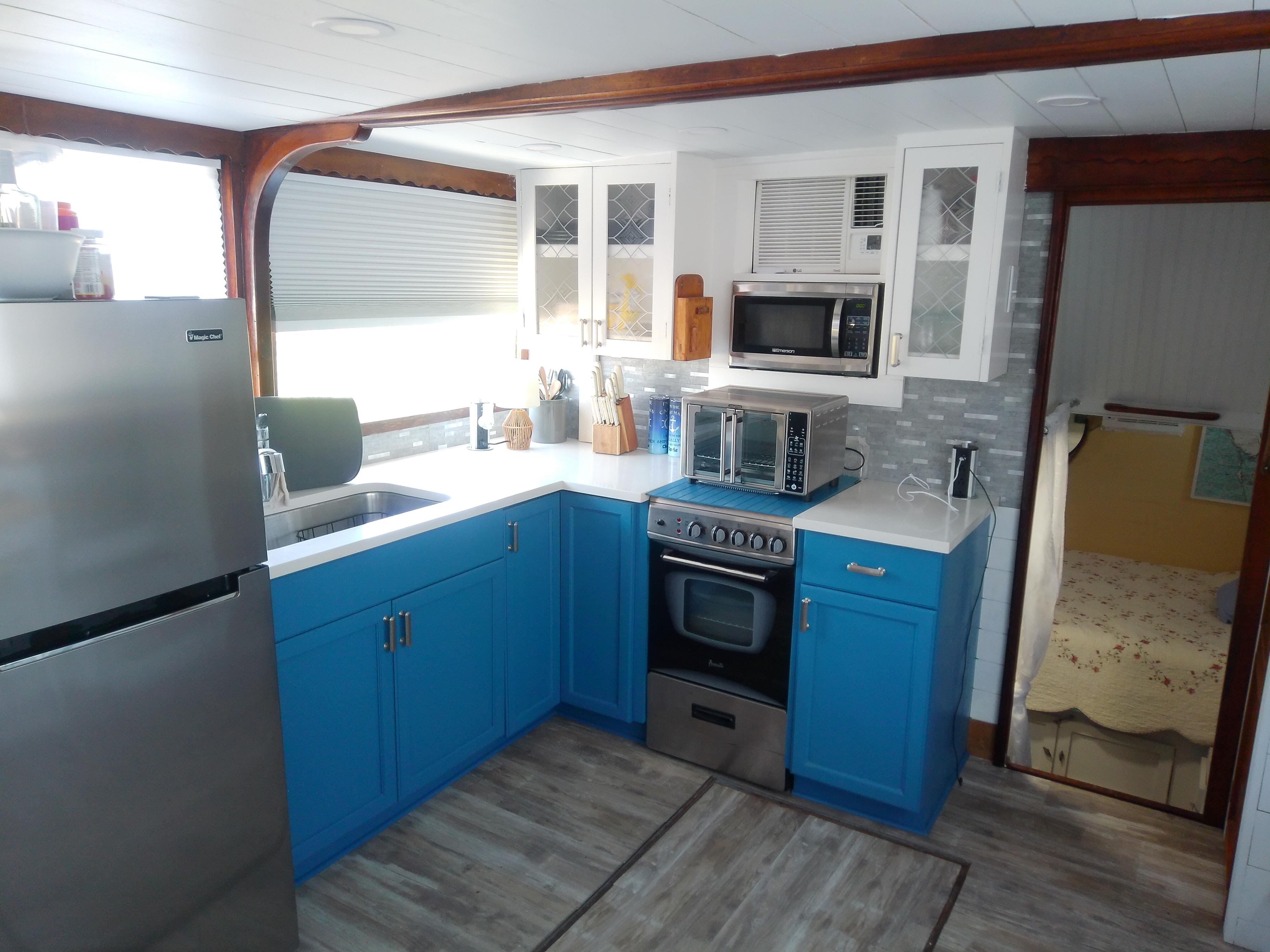 - Full Galley w A/C Refrigerator, Electric Stove and Oven, New Plumbing