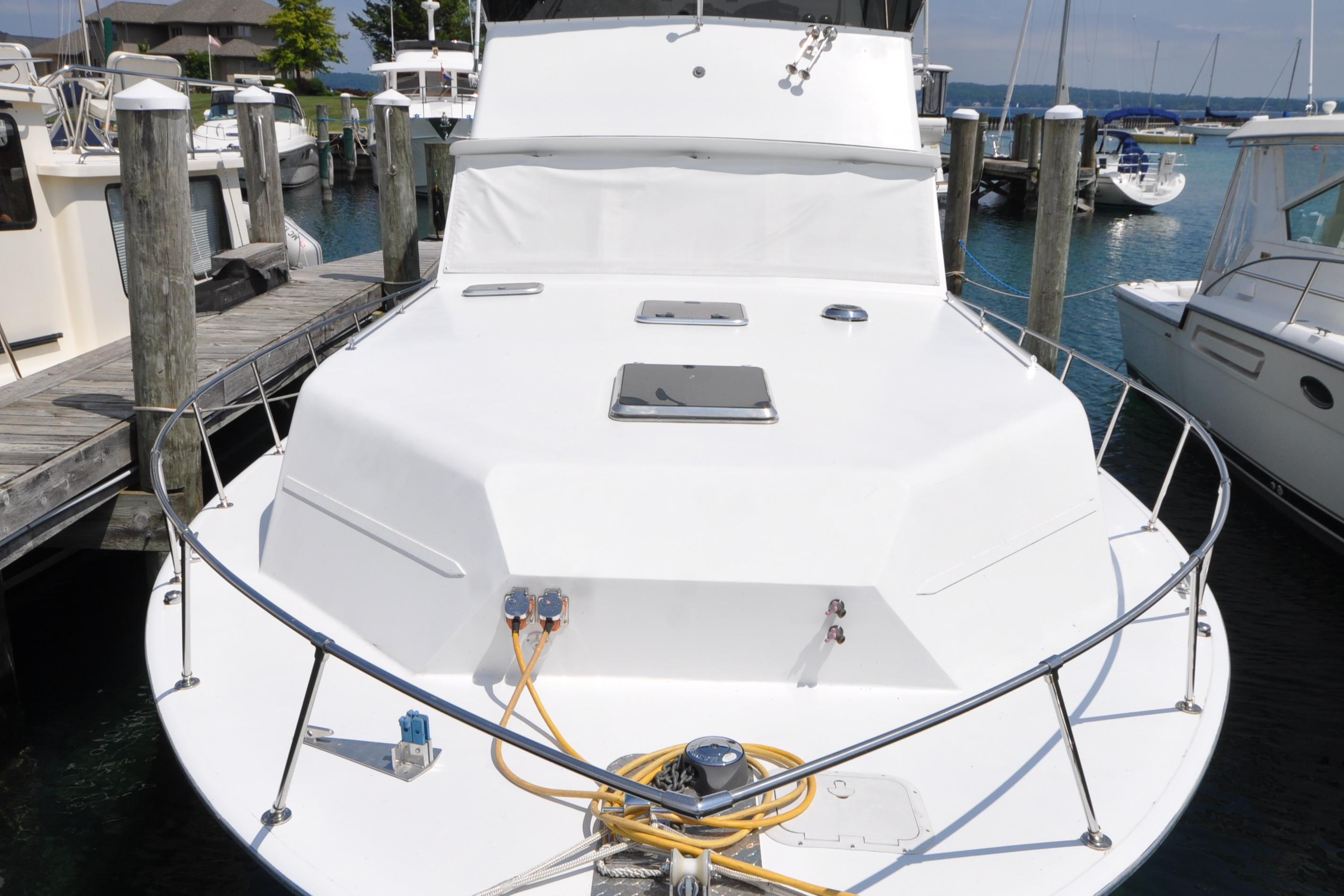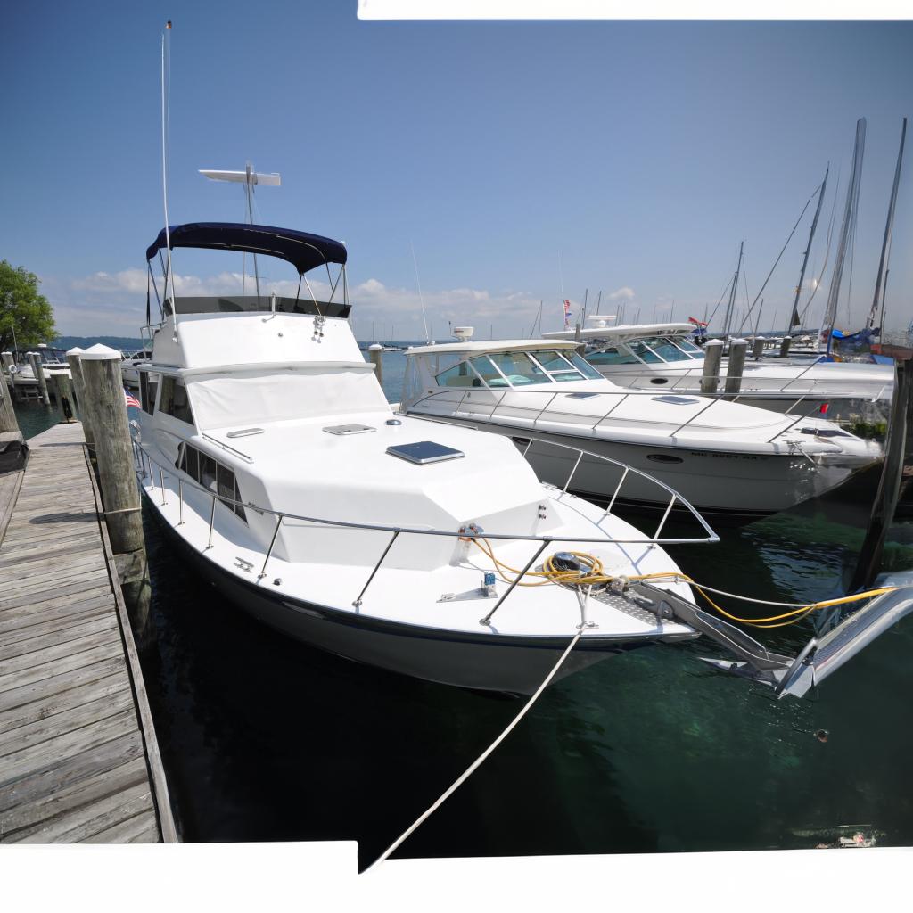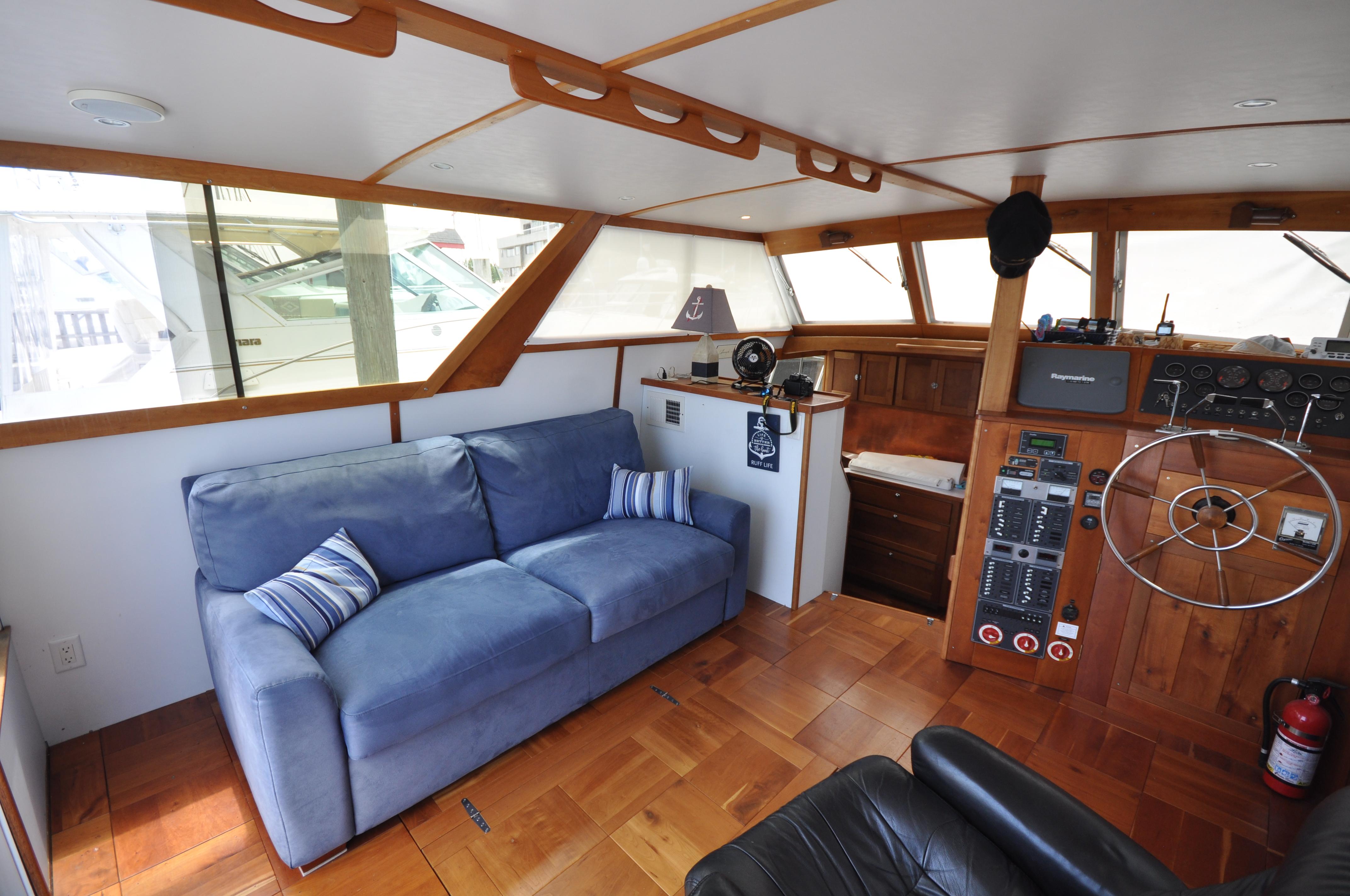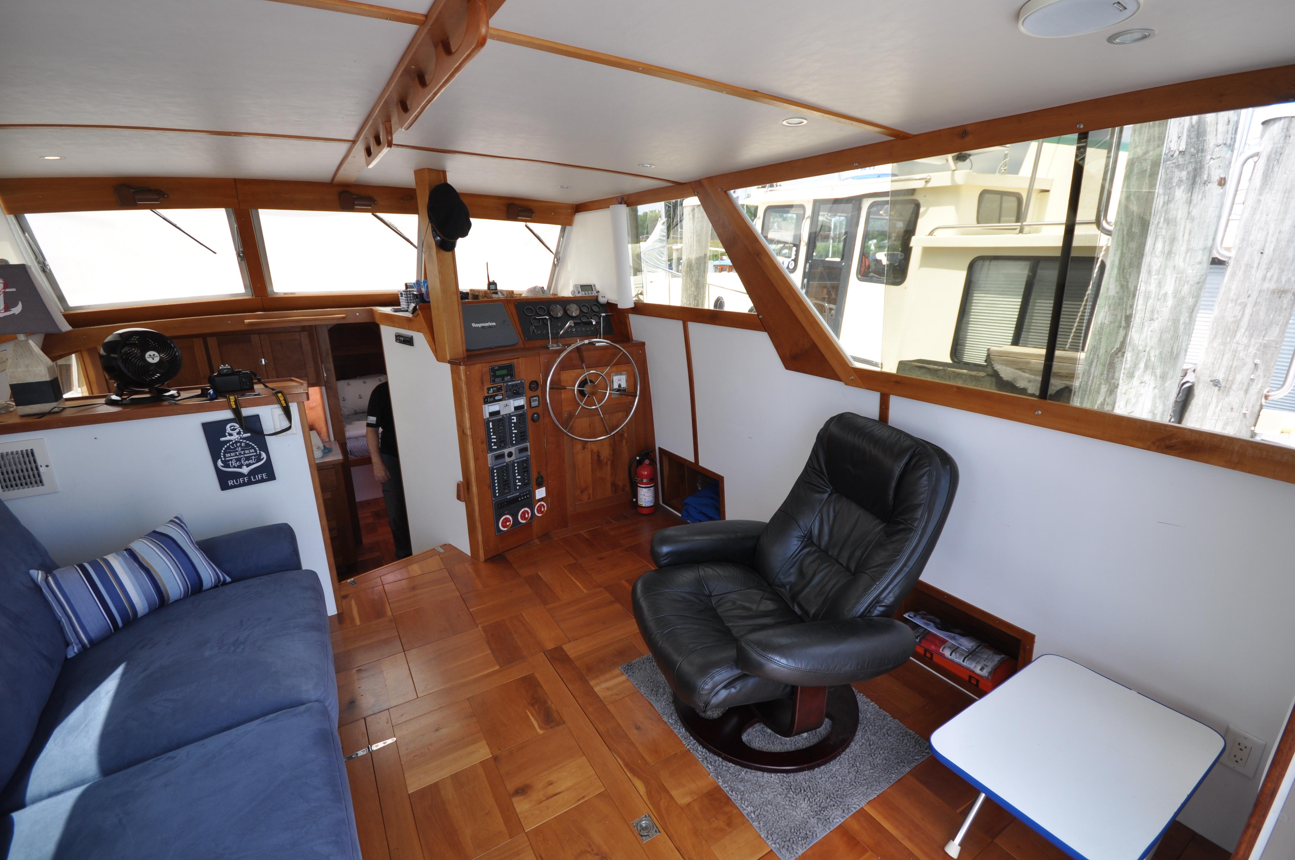 A rare and most updated Marinette 37 Sedan Bridge to be found. A painstaking process to bring the aluminum classic to its current state. A multi-year full restoration process has elevated “Ruff Life” to the next level of comfort. New AC units, tanks and rebuilt engines are a few of the large projects undertaken. The foredeck sitting bench has been bumped out to create more head room space in the forward stateroom. Milled cherrywood locally has been used for the cabinetry, flooring and trim.