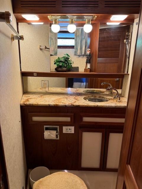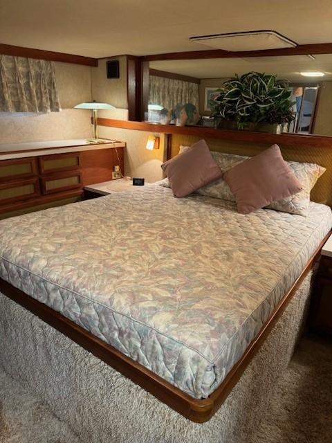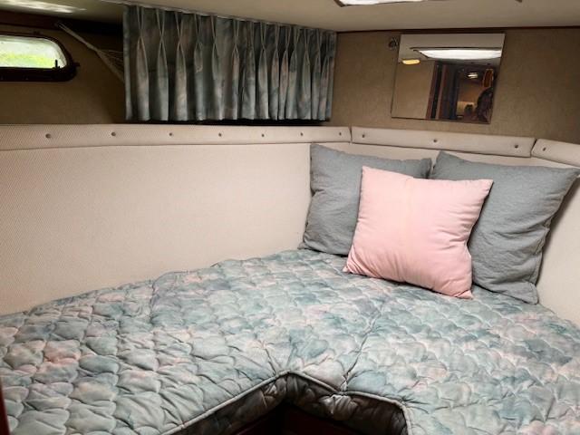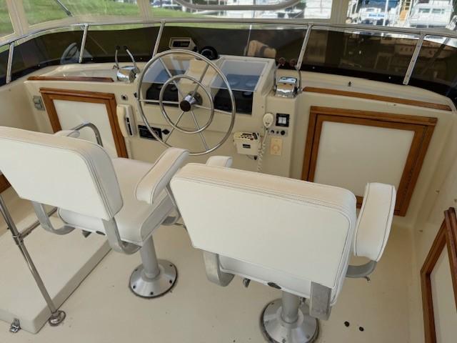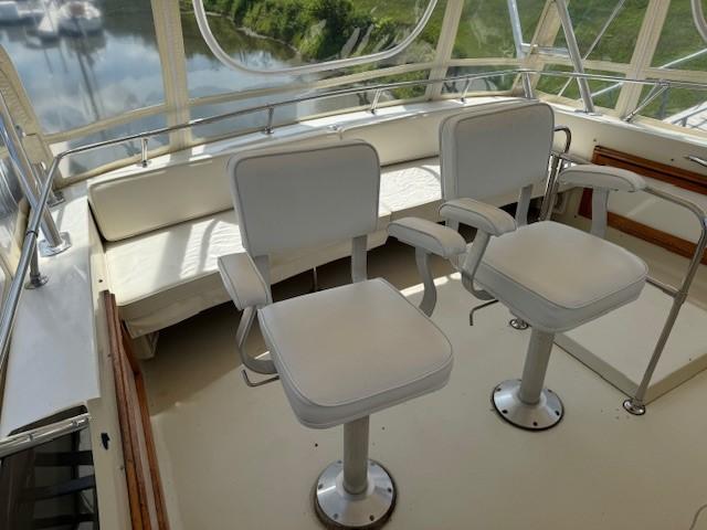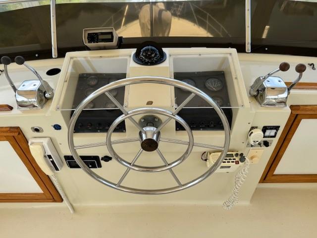Trojan really got it right when they brought out the 44 Motoryacht. Nice lines with a flybridge steering station, with a bimini top an isinglass enclosure, and an aft main deck with a fully equipped lower station that is also isinglass enclosed which provides excellent lines of site and plenty of room to entertain guests. Going forward is safe and easy with forward seating on the main deck. Below decks is the salon, a fully equipped galley. and two state rooms, The forward stateroom sleeps two is very convenient complete with a head and enclosed shower. The master state room is aft and has a walk around queen size bed and also an ensuite head with a separate shower. The Windward is truly in top shape has had the same owner for 26 years and who is devoted to keeping his boat in top condition mechanically and cosmetically. You really have to see the Windward to appreciate her appearance and her mechanical condition.