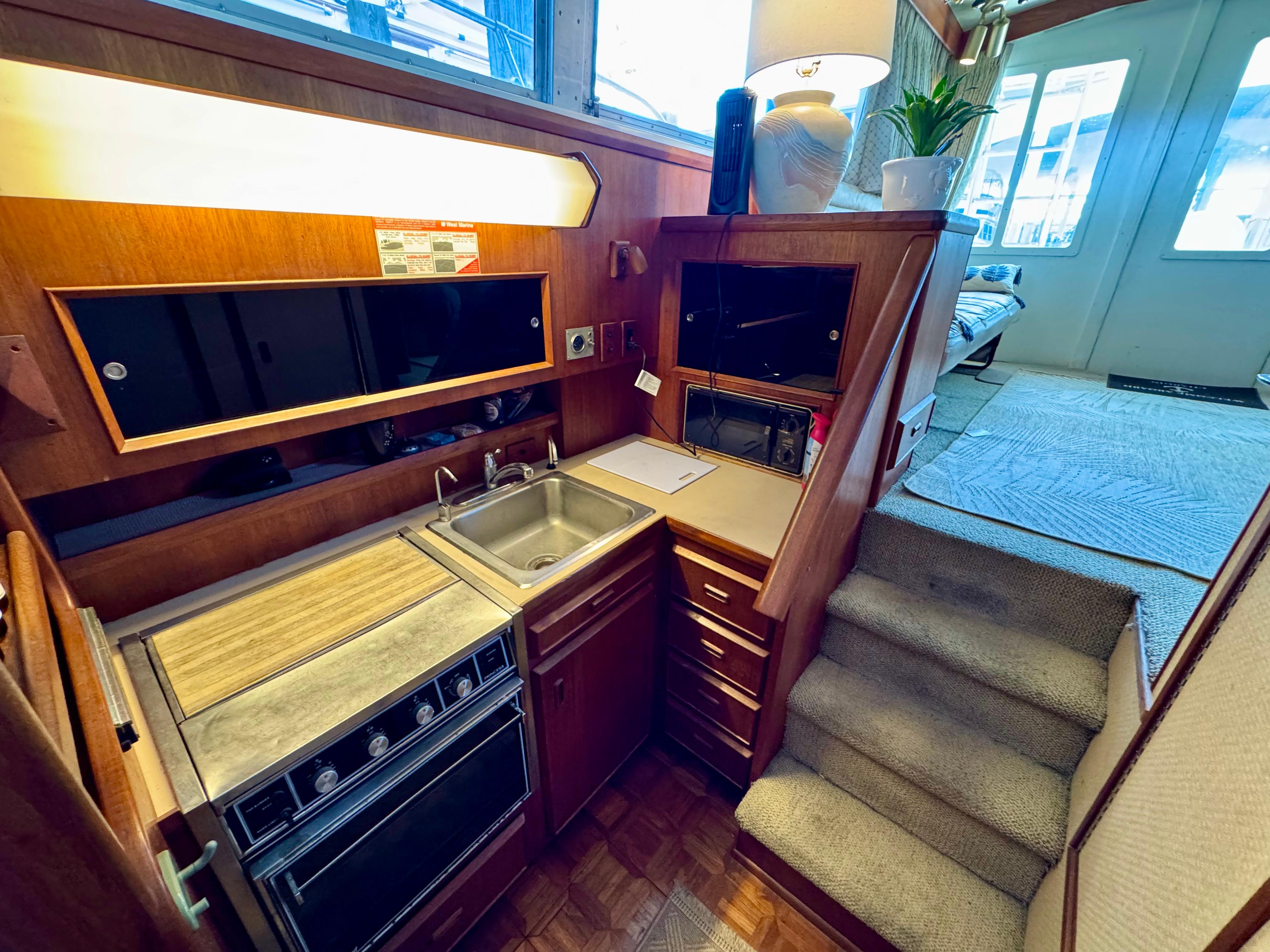 Step into a salon that invites relaxation and entertainment, paired with a fully equipped galley designed for real cooking: