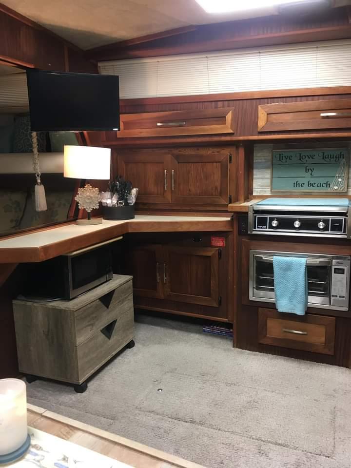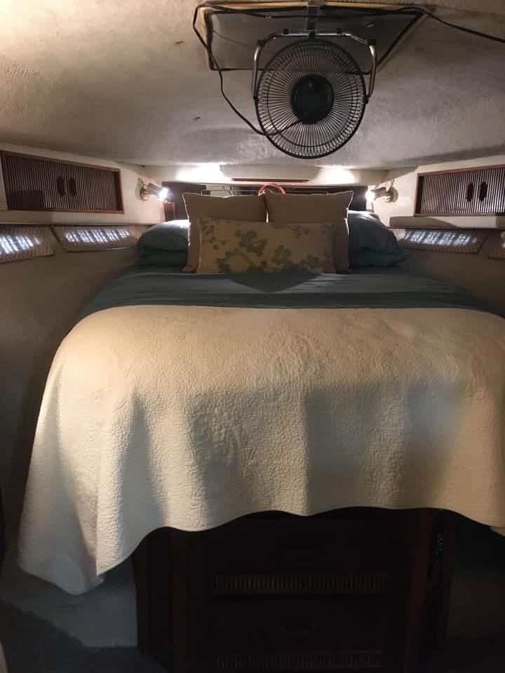 The 390 Express Cruiser turned out to be one of the most popular models ever built by Sea Ray. Her sleek lines and European styling made a lasting impression on the sport cruiser market. Below is an expansive two-stateroom layout with a queen berth forward and a bunk room to starboard that can be converted to a sofa seating dropping the mirrored glass patrion allows this stateroom to become part of the salon entertainment space. Top side the cockpit seating is massive easily with enough room for a small crowd. The near 14ft beam gives this Sea Ray the feel of a much larger boat and added stability for rougher conditions.