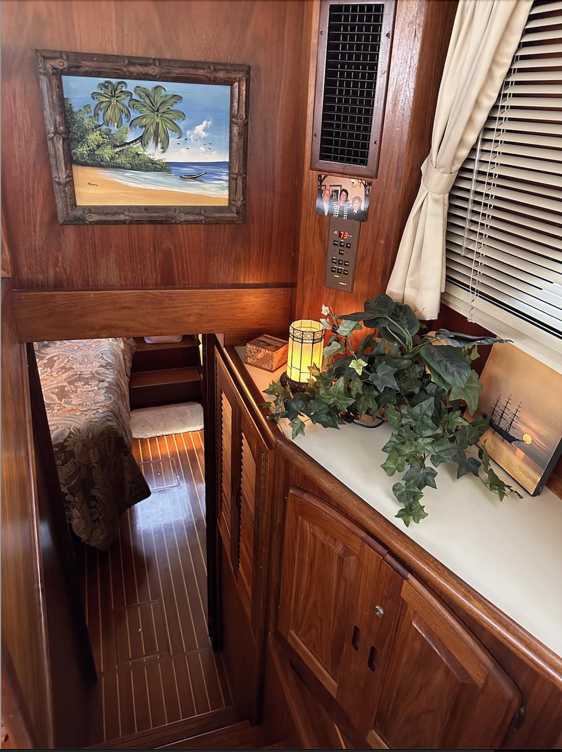 Introducing the stunning 1987 Californian 48 Cockpit Motor Yacht, a remarkable vessel that combines elegance and performance. With an overall length of 48.4 feet, this motor yacht is crafted from durable fiberglass, ensuring both strength and aesthetic appeal. Powered by twin Caterpillar 3208 engines, each delivering an impressive 375 horsepower, it offers a robust and reliable cruising experience. With only 1,293 and 1,265 hours on the engines, this yacht is ready for new adventures on the water. The accommodation features two well-appointed cabins and two heads, providing ample space for relaxation and comfort. Whether you’re entertaining guests or enjoying a peaceful getaway, the Californian 48 is designed to enhance your boating experience. With its classic design and modern amenities, the “Fat N Sassy” is a true gem for those seeking a luxurious escape on the water.