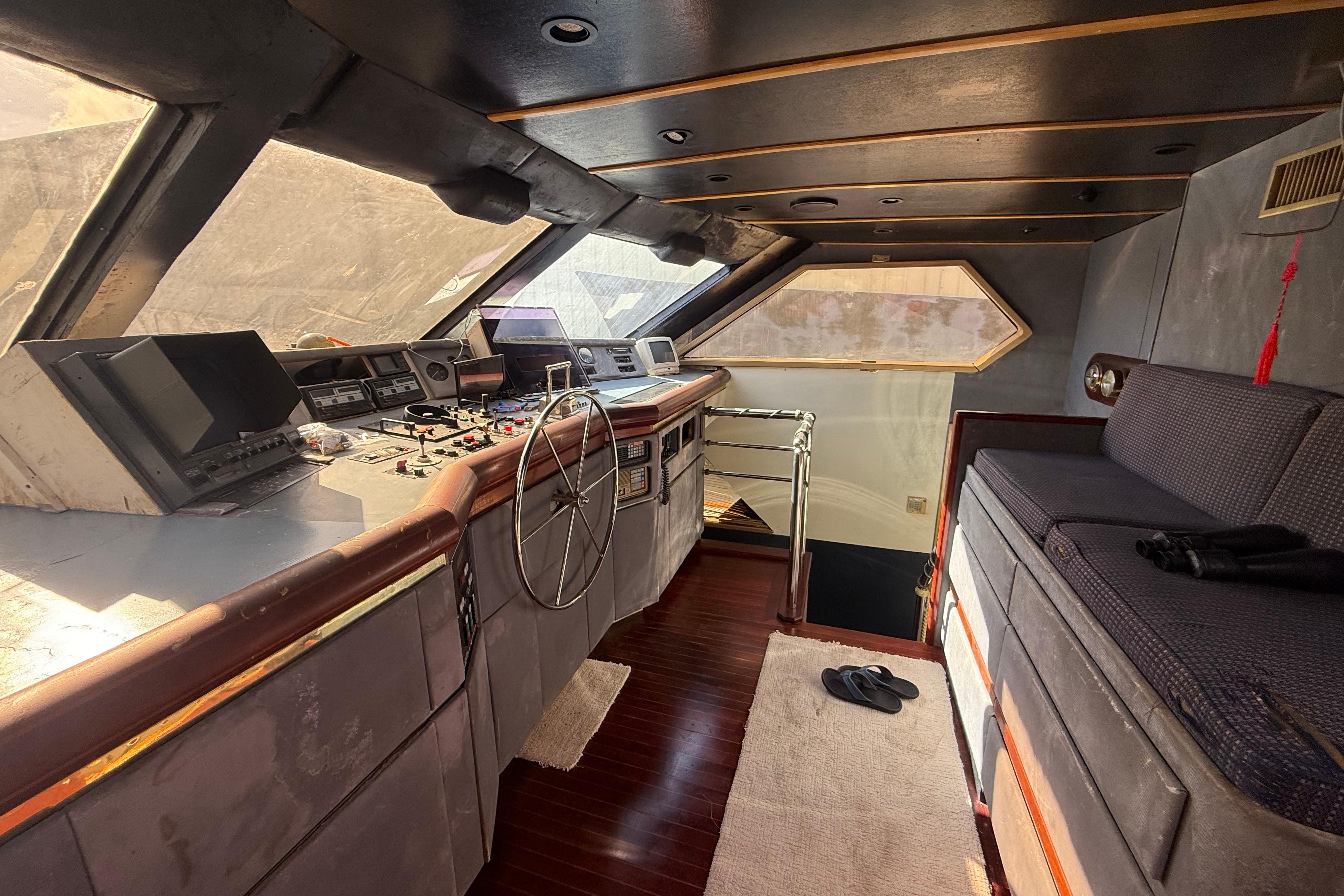 The yacht’s aft engine room with cockpit access, oversized tankage, stabilized platform, and redundant systems were all specified to support extended cruising and professional operation. This original build philosophy is reflected in her generous machinery spaces, service access, and robust systems layout.