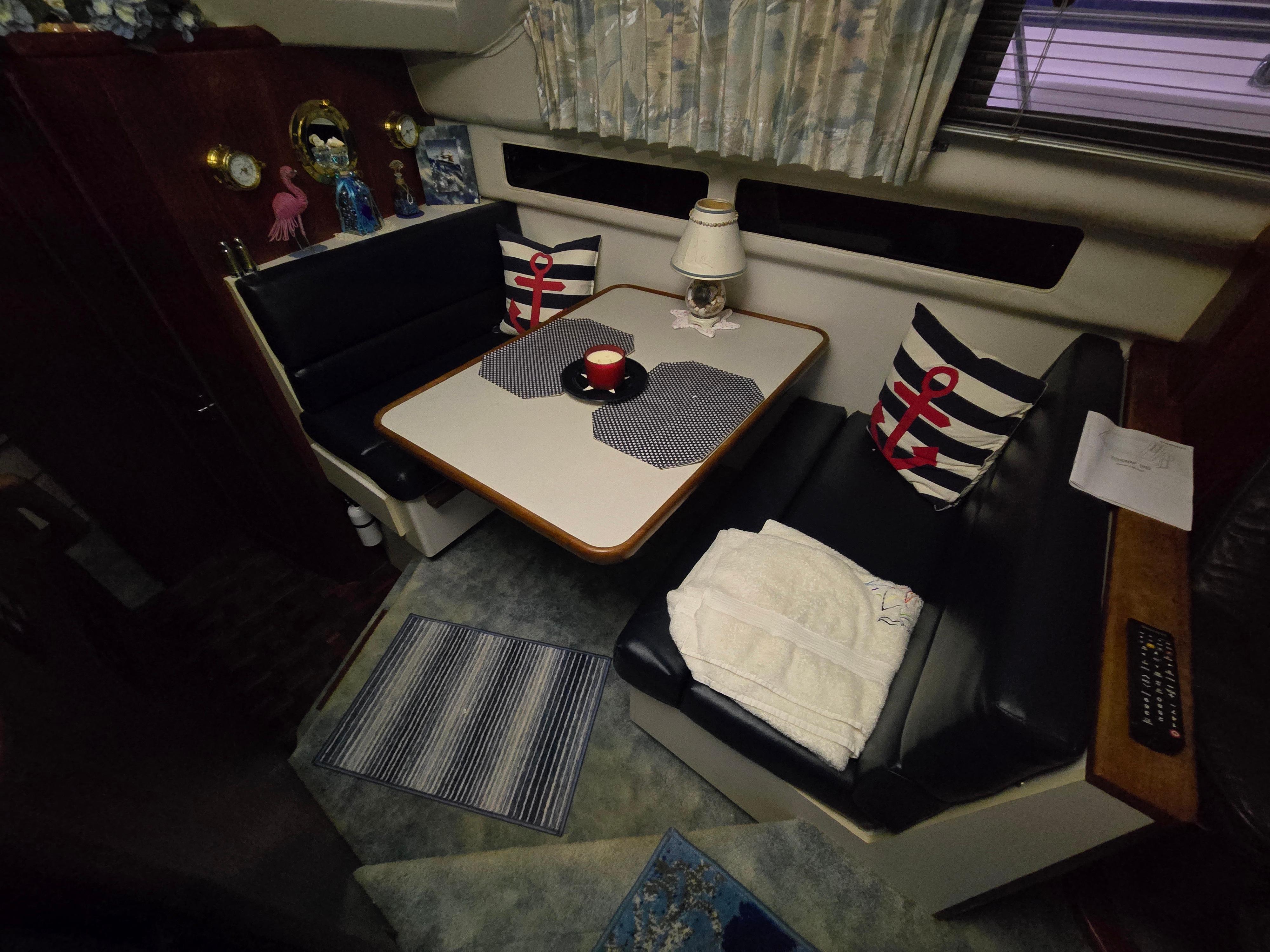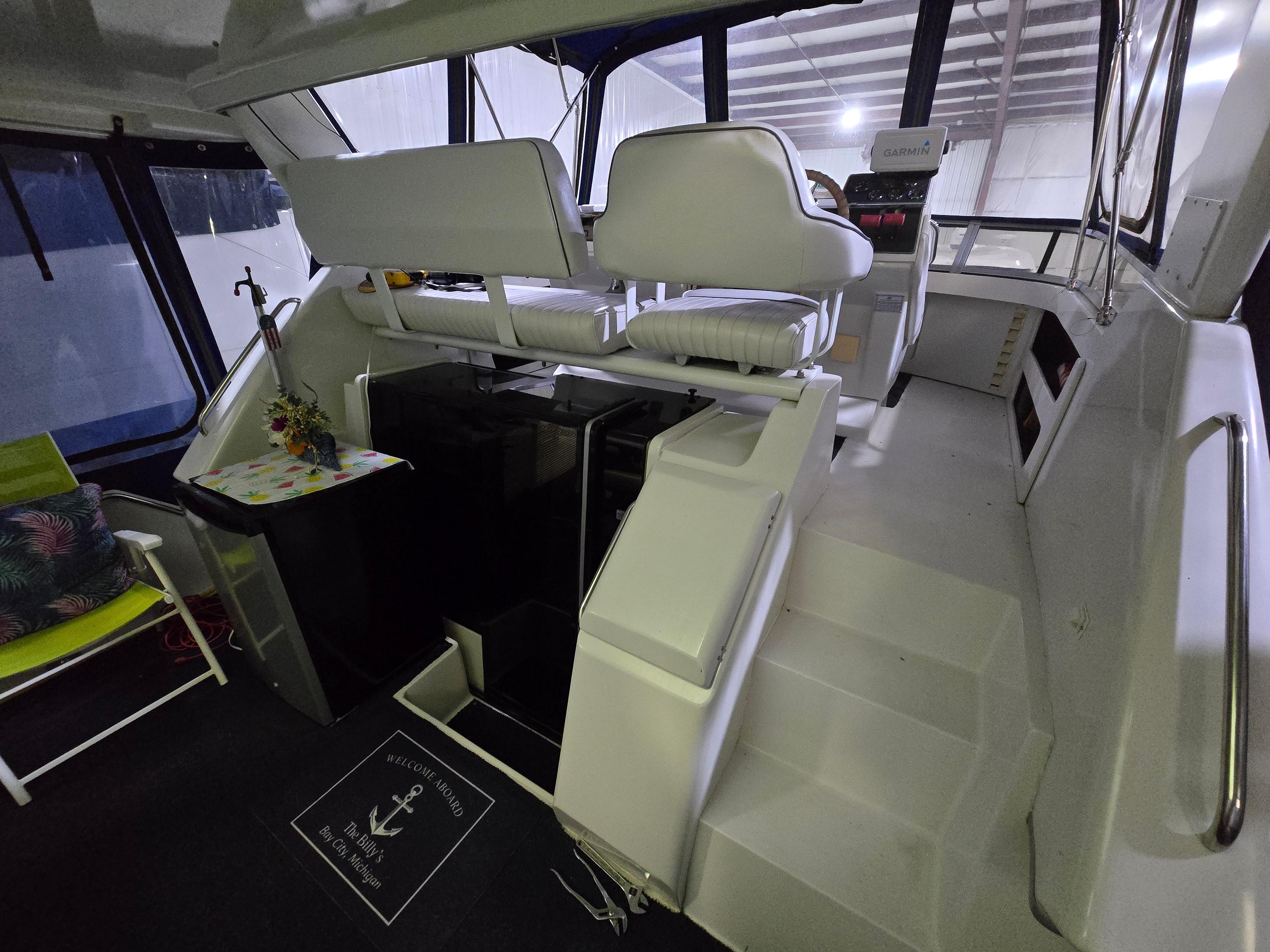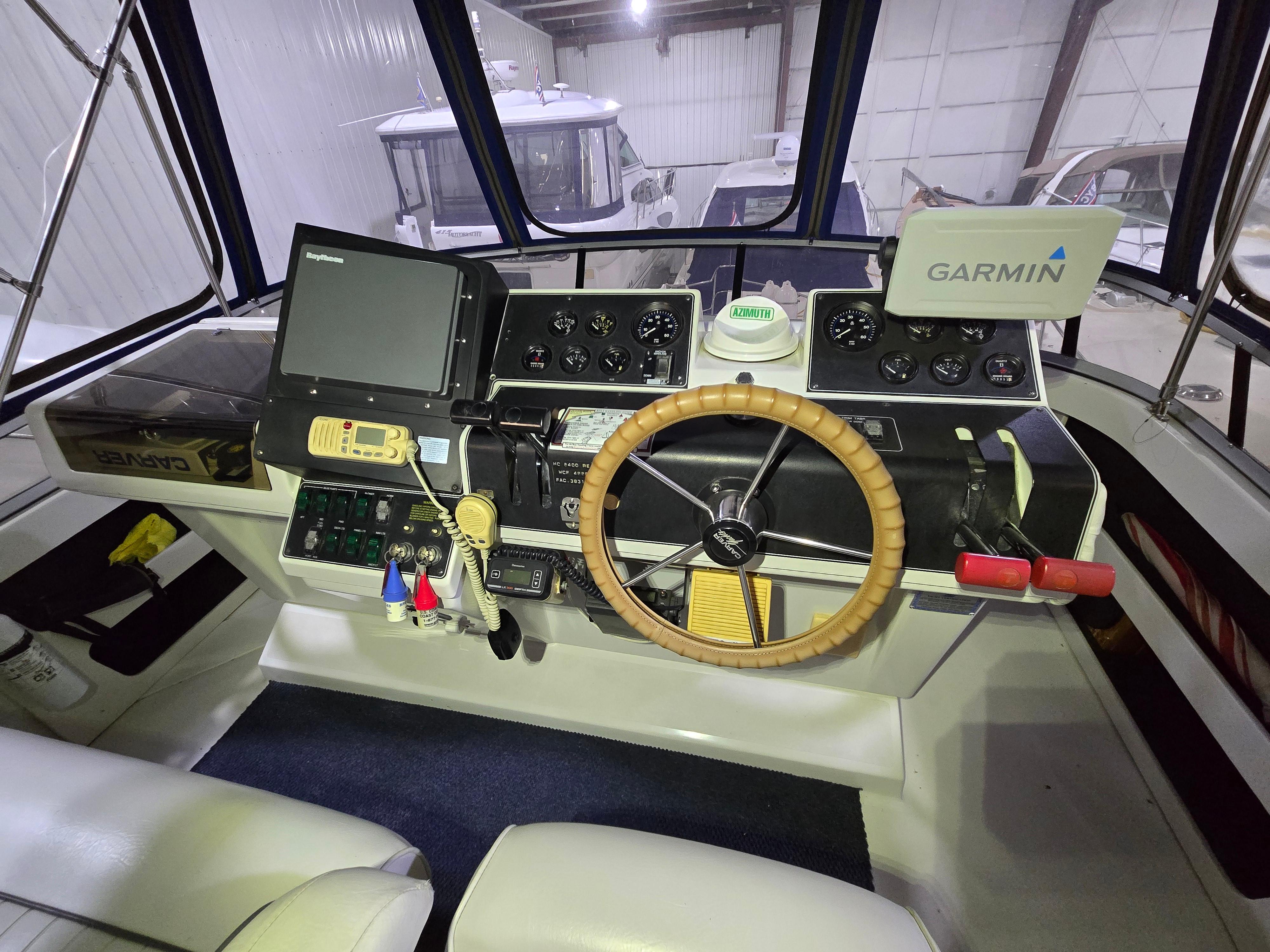The 1994 Carver 390 Aft Cabin is a popular motor yacht known for its spacious design, comfortable accommodations, and solid construction—making it a favorite among liveaboard cruisers and weekend boaters alike. Measuring approximately 41 feet overall, the Carver 390 features a distinctive aft cabin layout that maximizes interior living space without sacrificing deck accessibility or style. The boat boasts a wide 13’1″ beam, which provides an open and airy feel inside the salon and staterooms. The interior is well-appointed, outfitted with warm wood cabinetry, plush seating, and a full galley equipped with essentials like a refrigerator, stove, microwave, and plenty of storage. A key highlight of this model is the two private staterooms—each with its own head and shower—providing exceptional comfort for both owners and guests. The master aft stateroom often includes a queen berth, vanity, and ample closet space, while the forward guest cabin is slightly smaller but still roomy and functional. On deck, the Carver 390 features a roomy aft deck ideal for lounging or entertaining, along with a flybridge that offers great visibility and seating for several passengers. Powered typically by twin Crusader or Cummins engines, the boat delivers reliable cruising performance with a comfortable, stable ride. With its blend of residential-style comfort, seaworthy performance, and timeless styling, the 1994 Carver 390 Aft Cabin remains a highly regarded option in the pre-owned yacht market.