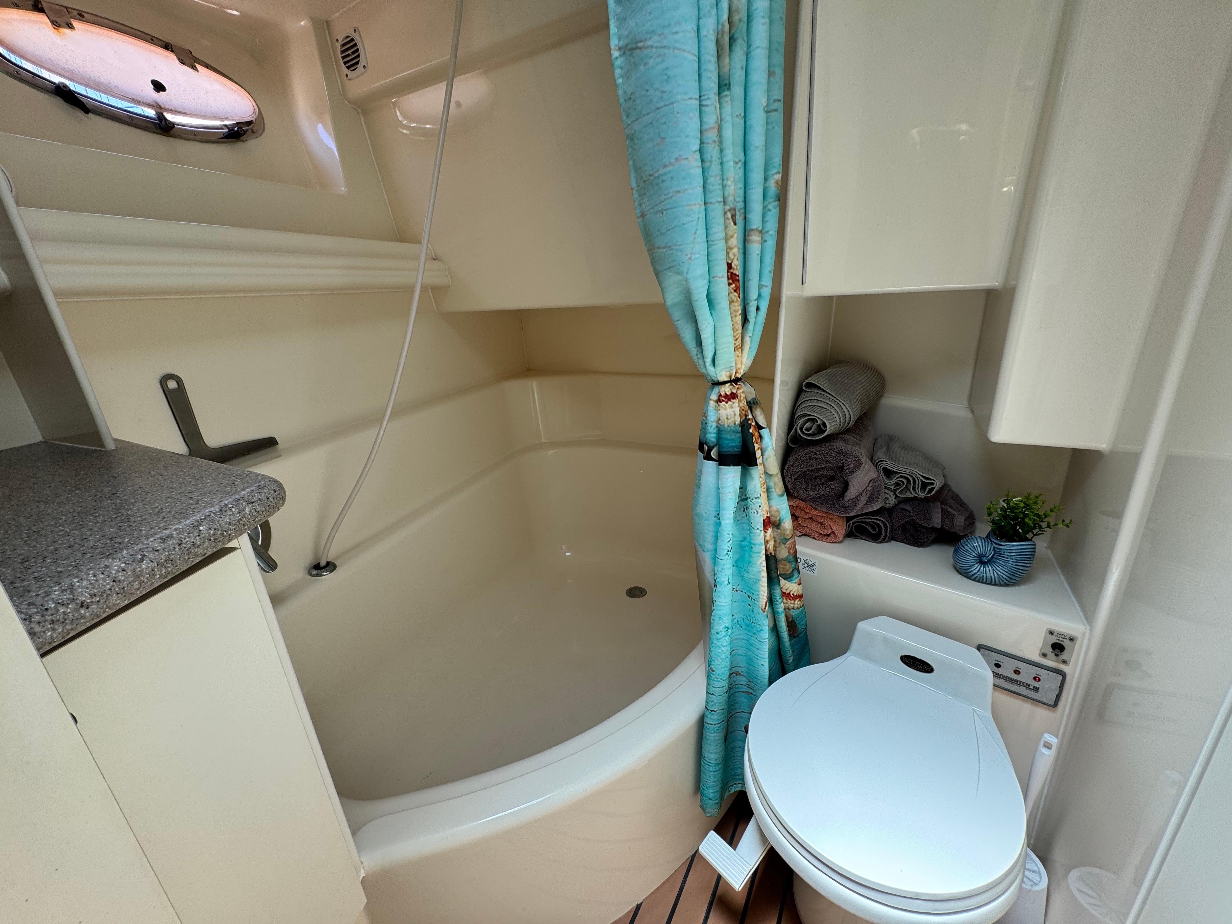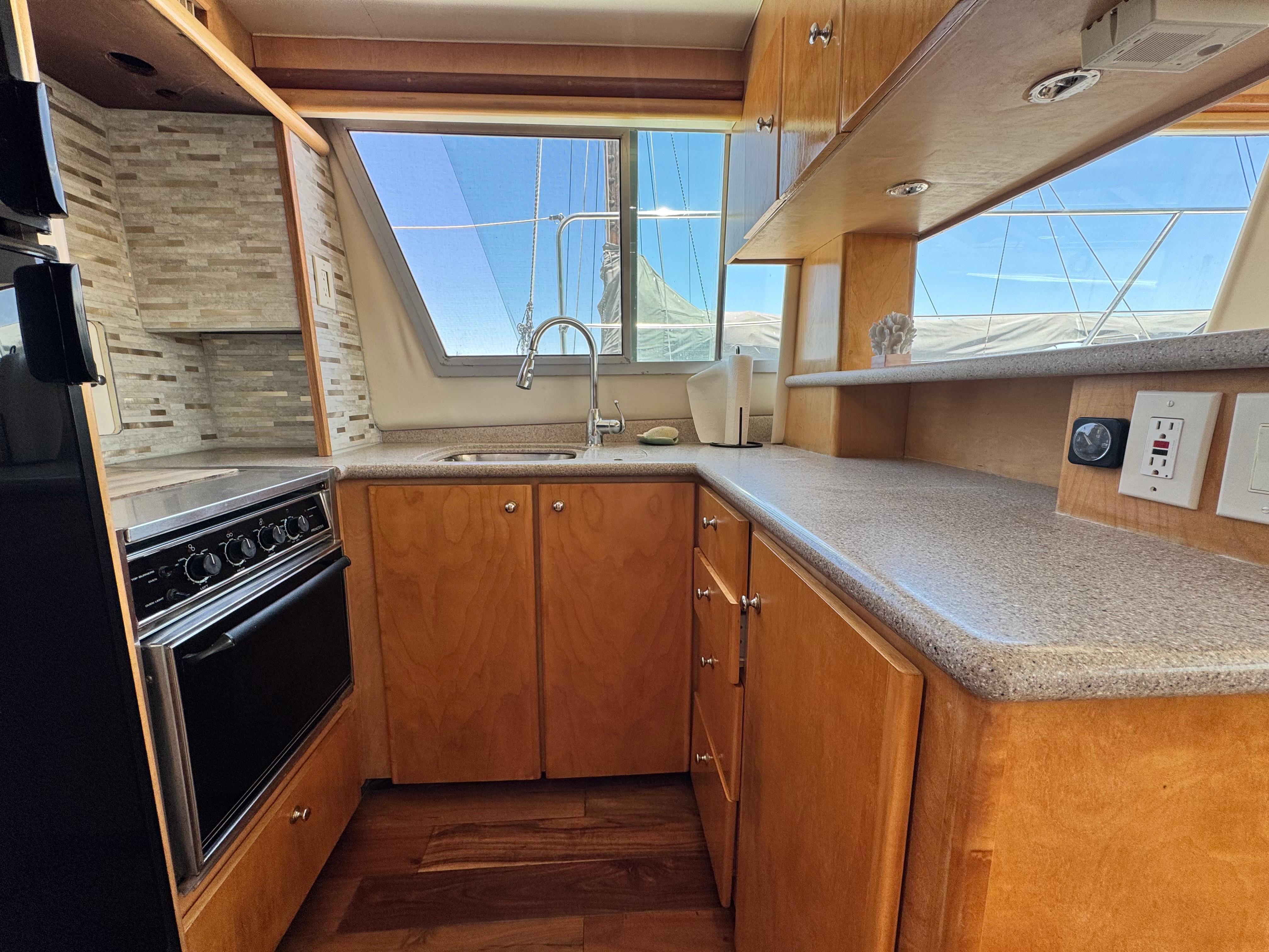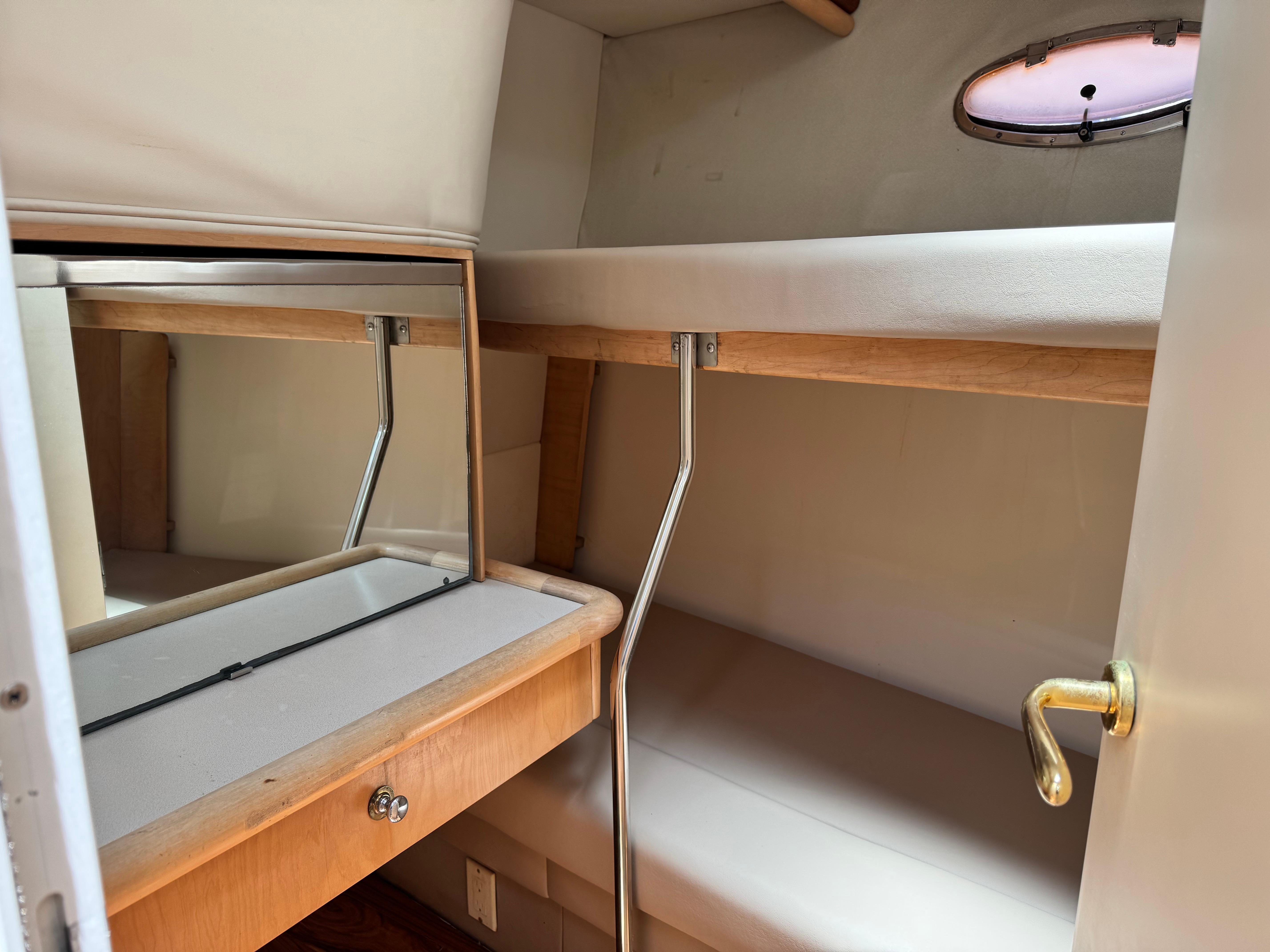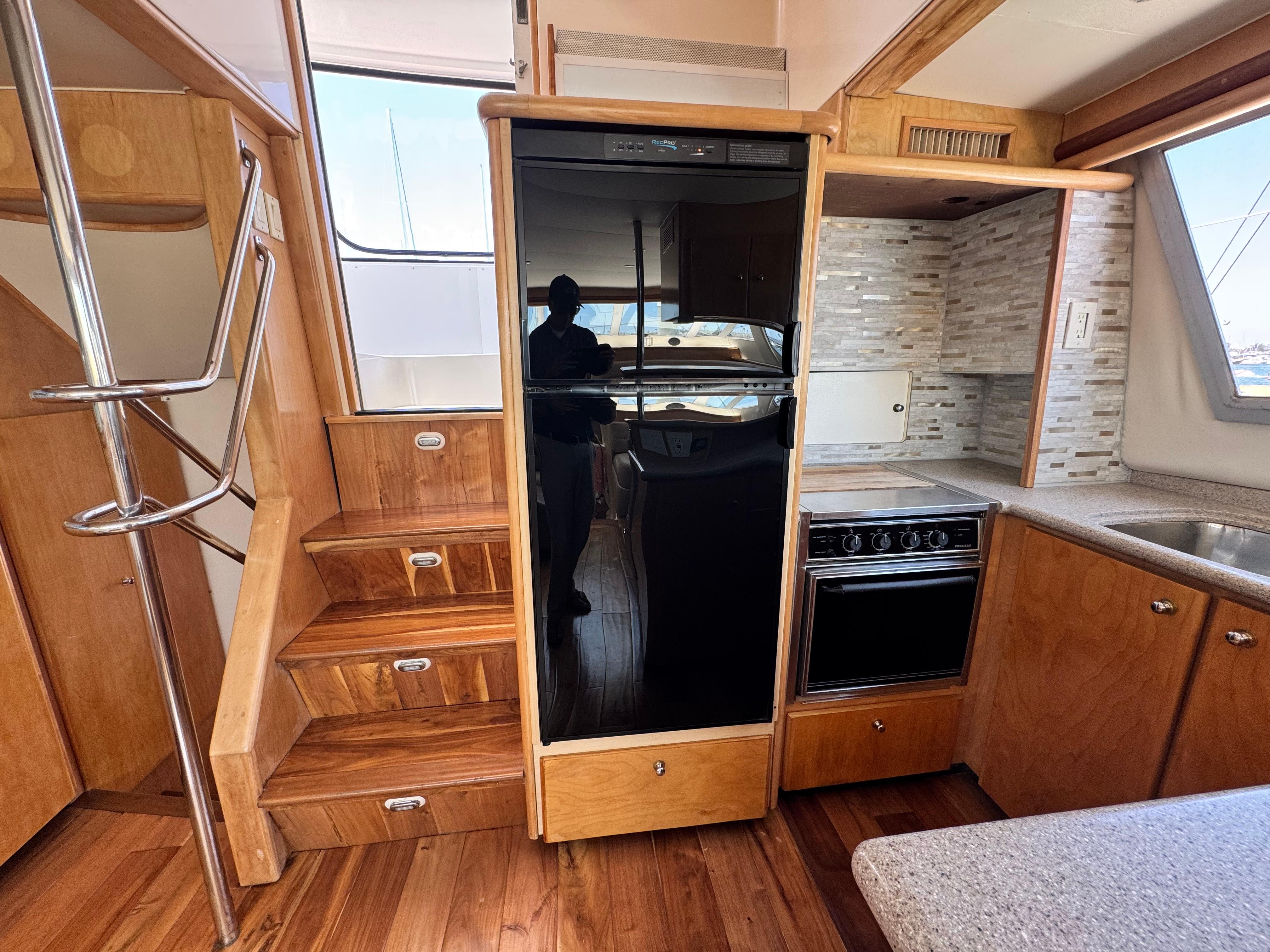 Extensive work has been completed on the boat in recent months, including a remodeled interior with all-new leather upholstery. The interior wood has been sanded and varnished. Additional upgrades include a new refrigerator and new kitchen tiling.