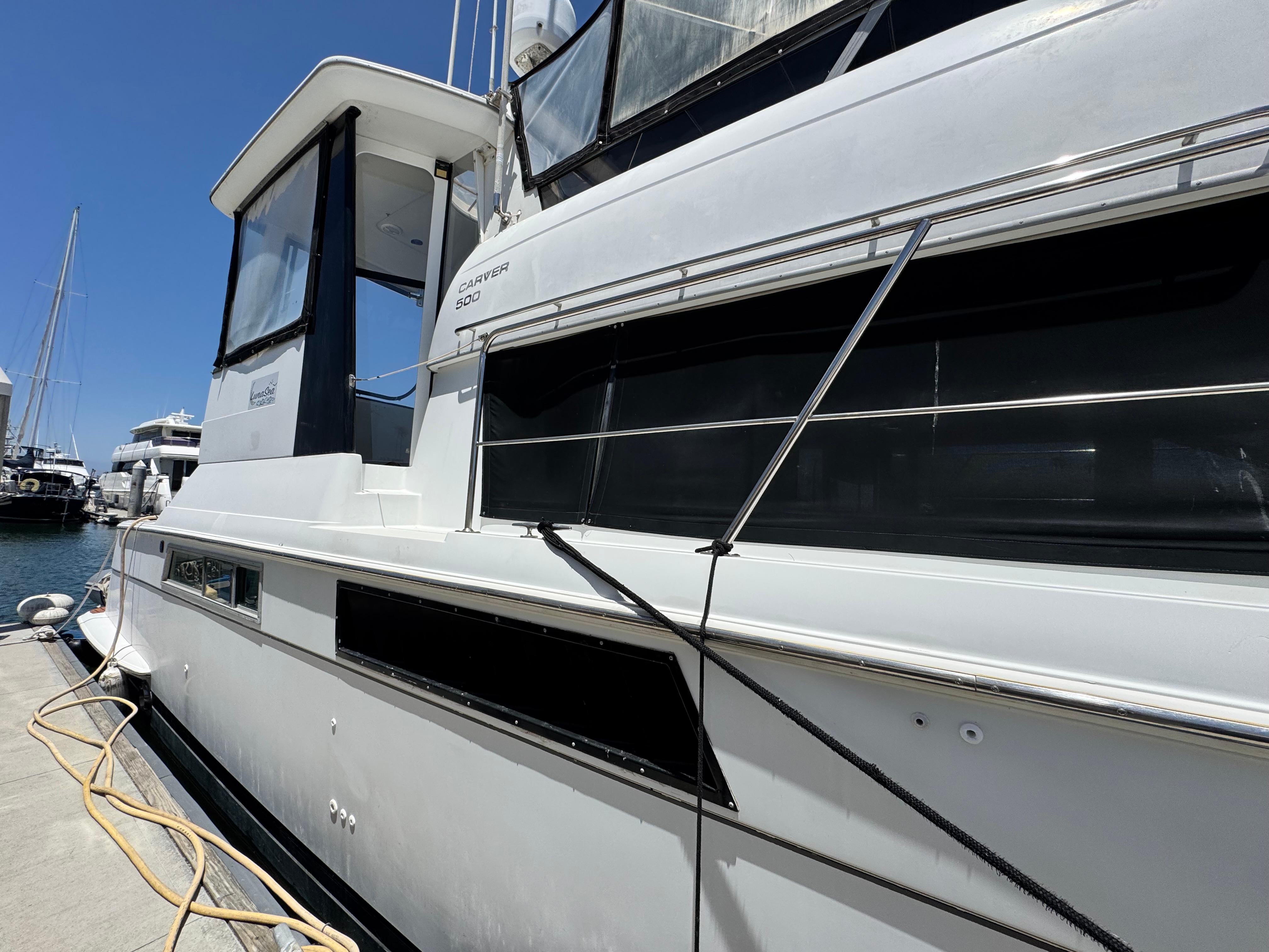 Introducing the elegant 1996 Carver 500 Cockpit Motor Yacht, a stunning example of aft cabin design. With an impressive overall length of 52 feet, this yacht boasts a robust fiberglass hull, ensuring durability and a smooth ride on the water. The spacious layout is perfect for entertaining or relaxing, providing ample room for guests to enjoy the journey. This used motor yacht combines classic style with modern amenities, making it an ideal choice for both seasoned sailors and newcomers alike. Its thoughtful design allows for comfortable accommodations, ensuring a pleasant experience on board. The Carver 500 is equipped with essential features that enhance its functionality, making it a reliable vessel for your nautical adventures. Embrace the freedom of the open water with this beautiful yacht, perfect for creating unforgettable memories.