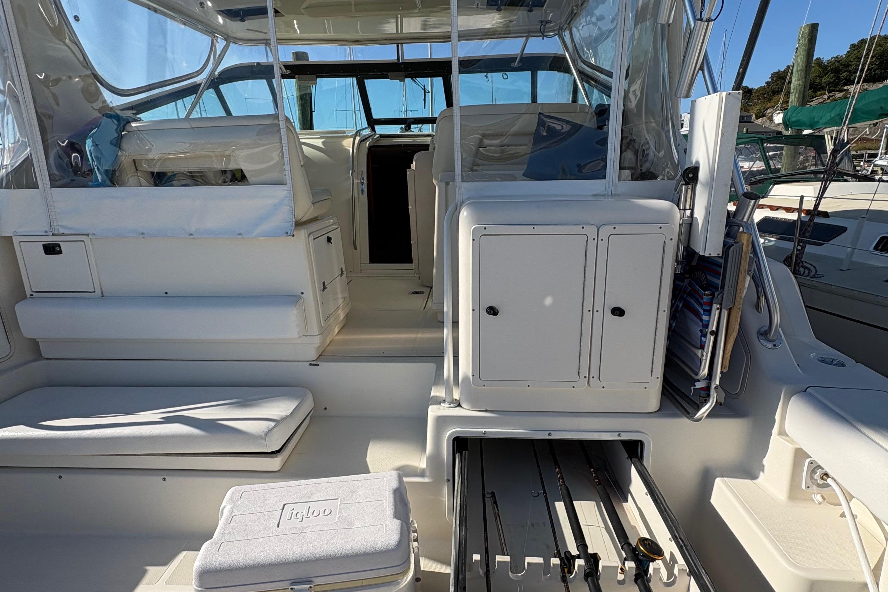 Introducing the 1996 Tiara 4300 Open, a stunning express cruiser that combines elegance with performance. With an overall length of 43 feet this vessel is a prime example of well maintained classic Tiara ready for family cruising or fishing adventures. Powered by two robust Detroit 6V92’s (2000 hours), each delivering 625 hp, it offers impressive cruising speeds of 20 knots and a maximum hull speed of 27 knots, making it perfect for exhilarating outings. The interior features a cozy cabin with large dinette,galley and seating area with a master forward. This boat has been owned and updated by its knowledgeable owner and is turn key ready to go. The Tiara 4300 Open is not just a boat; it’s a gateway to unforgettable experiences on the sea. Experience the thrill of cruising on Mokai, where luxury meets performance in perfect harmony.