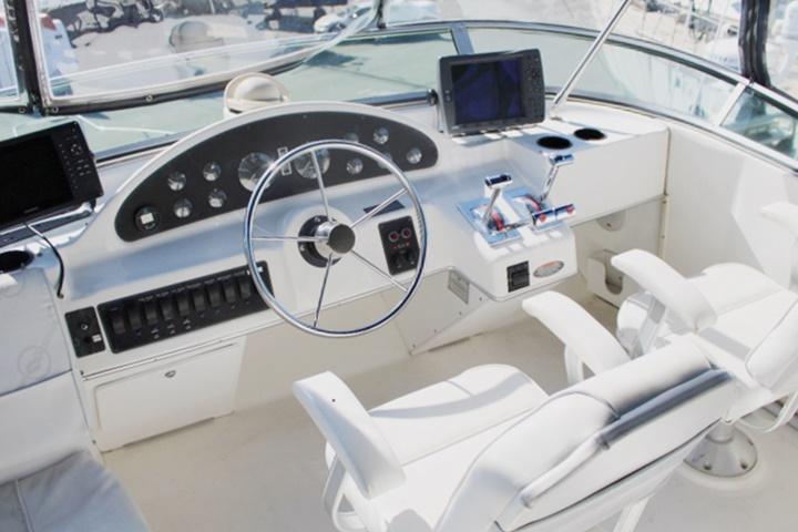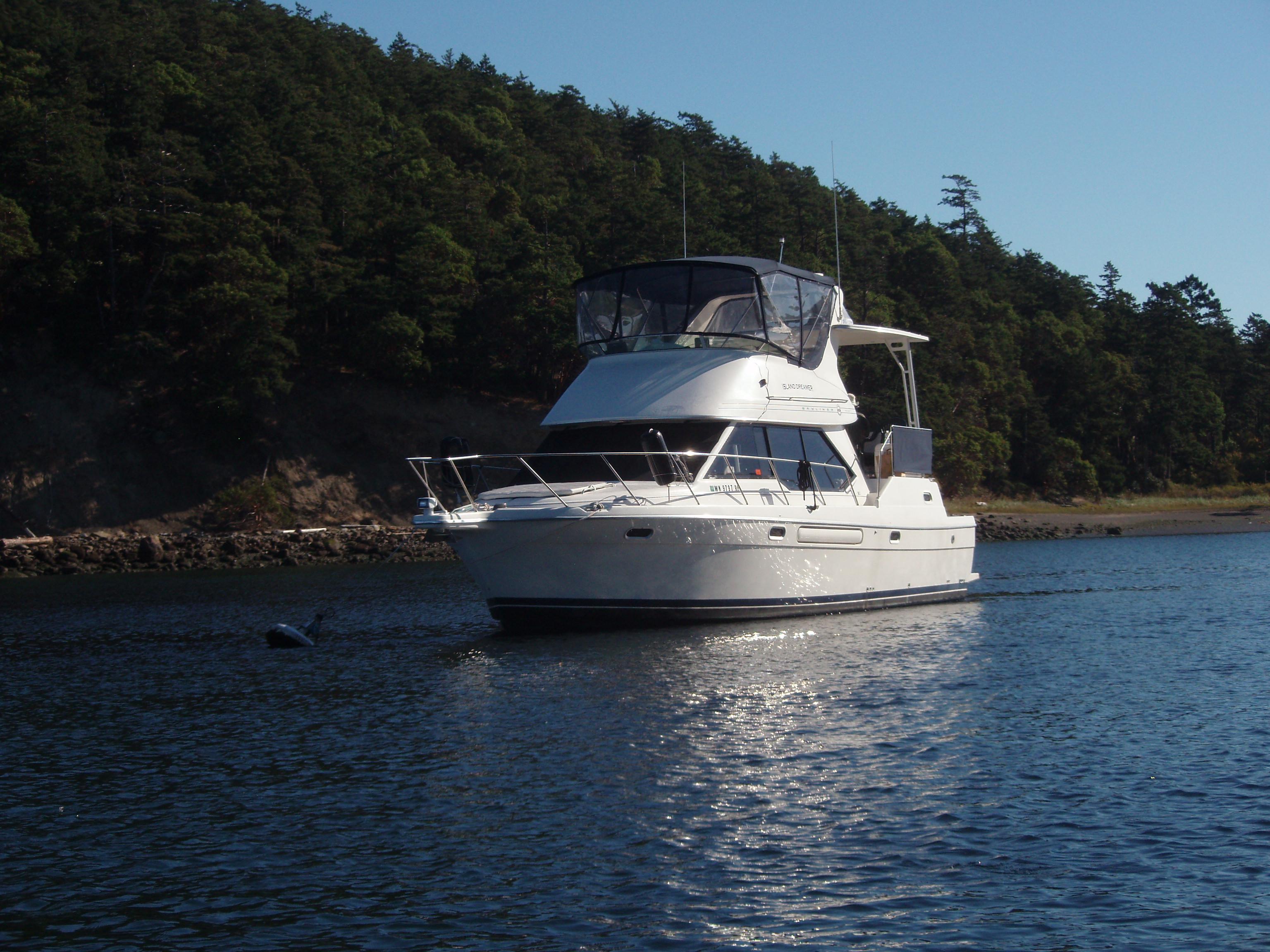 The 4087 Bayliner is widely regarded as one of the best-performing models in the Bayliner lineup—known for its exceptional ride and well-balanced hull. This one is powered by reliable twin Cummins 6BTA diesel engines with just 2,500 hours, offering an impressive cruise at 17 knots and a top speed of 20 knots.